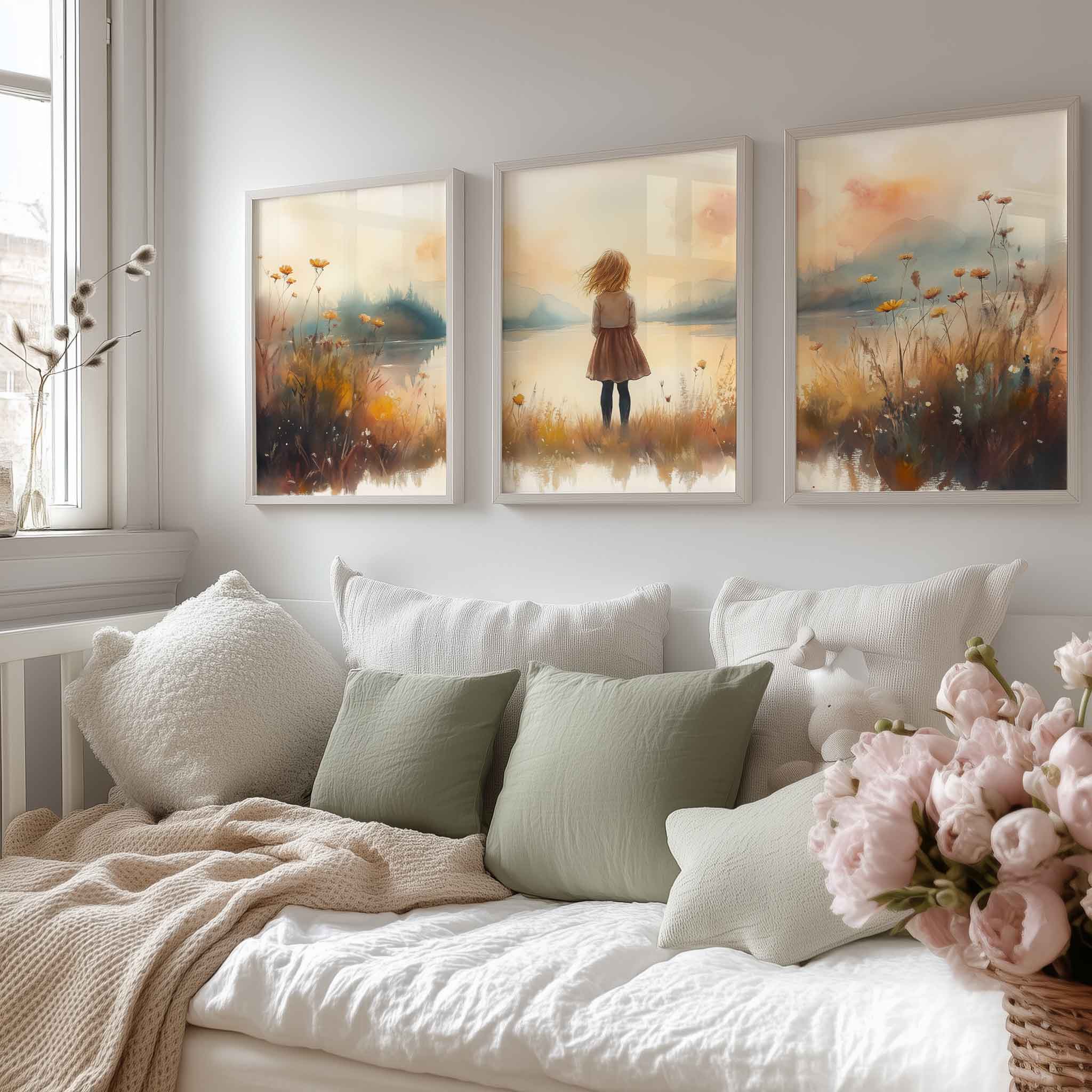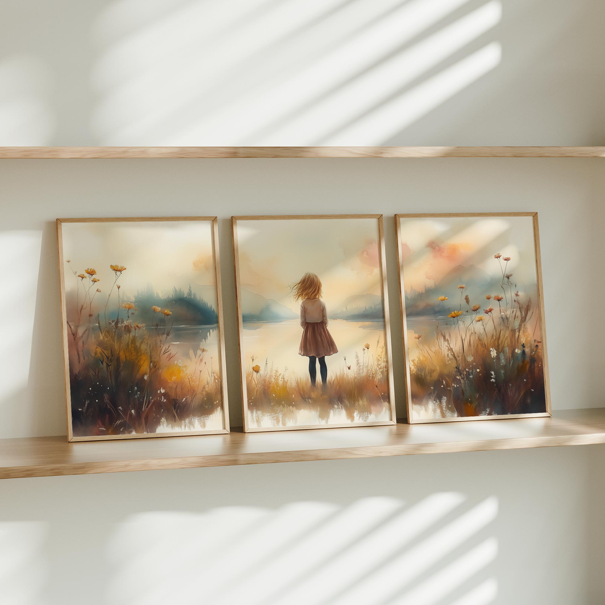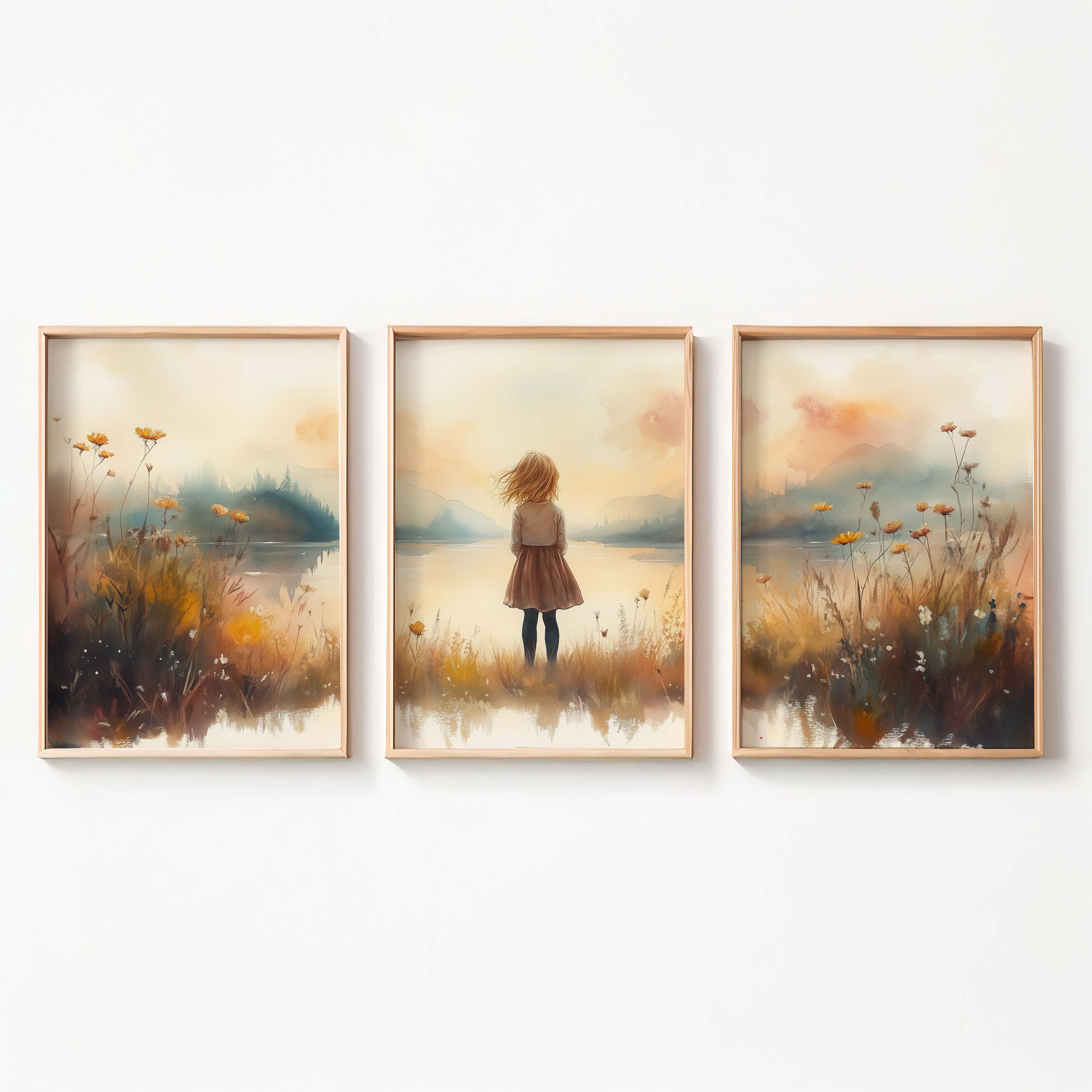 Terug naar collectie Posters Zonnig Meisje bij het Meer – Speels Landschap