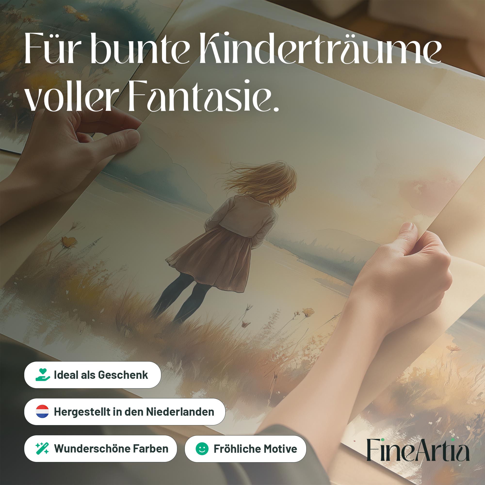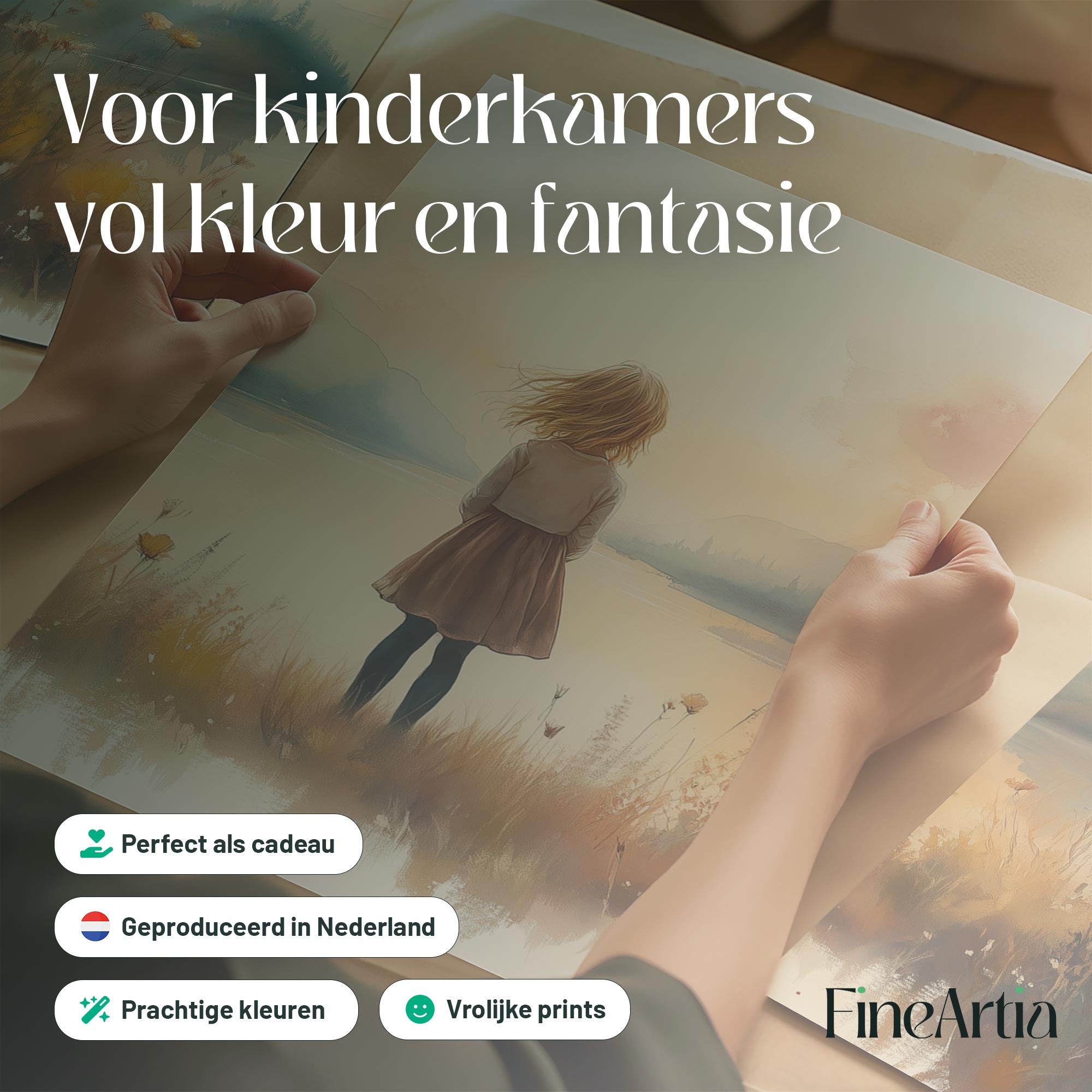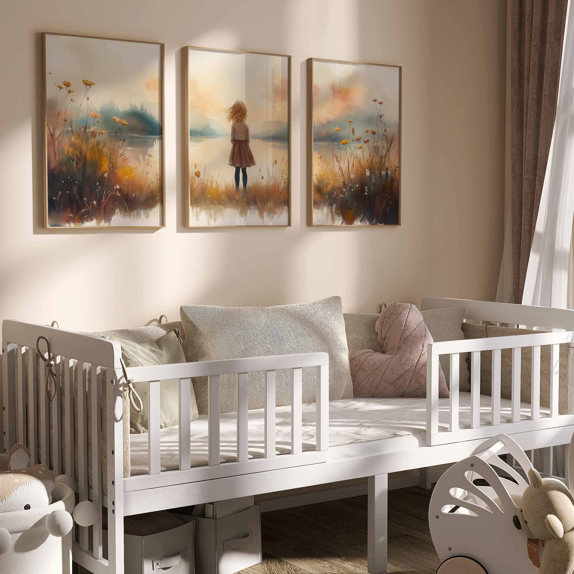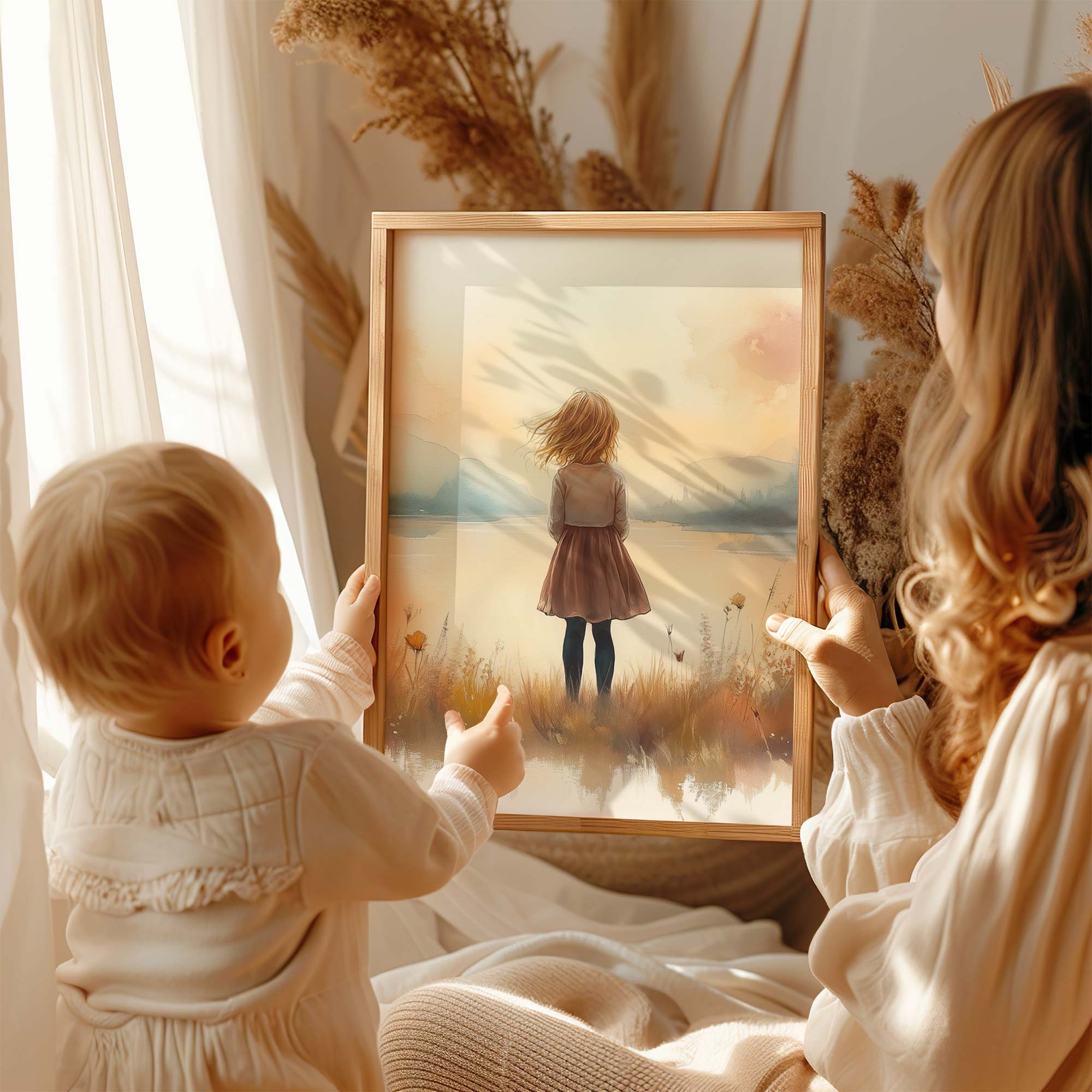 Terug naar collectie Posters Zonnig Meisje bij het Meer – Speels Landschap
