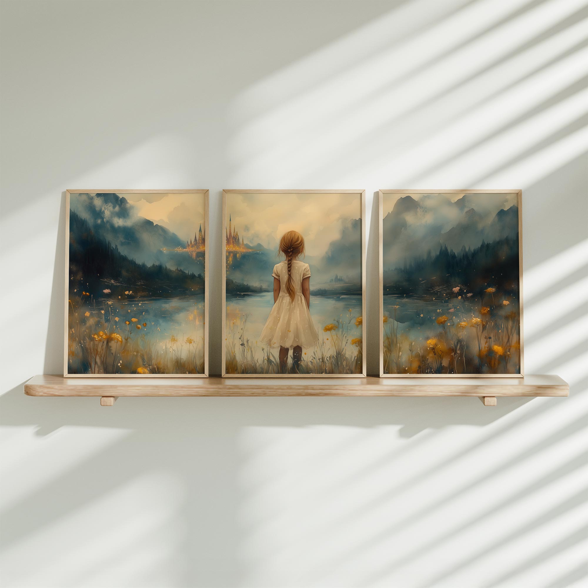 Terug naar collectie Posters Zonnig Meisje en Paard in Bloemenveld