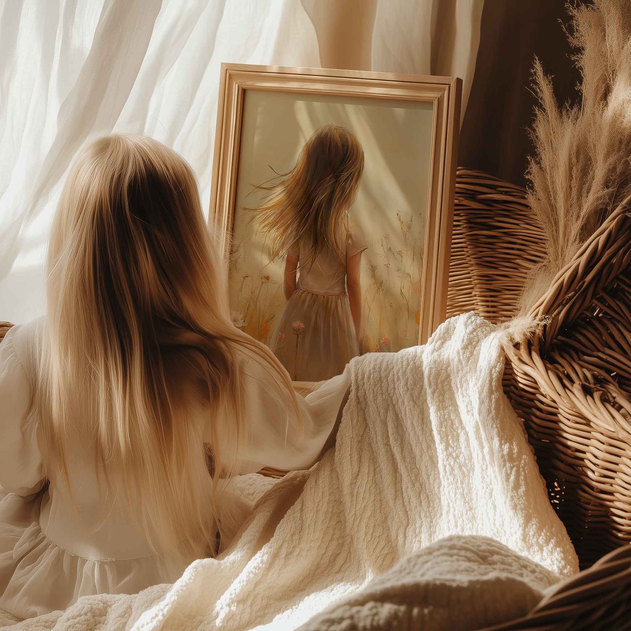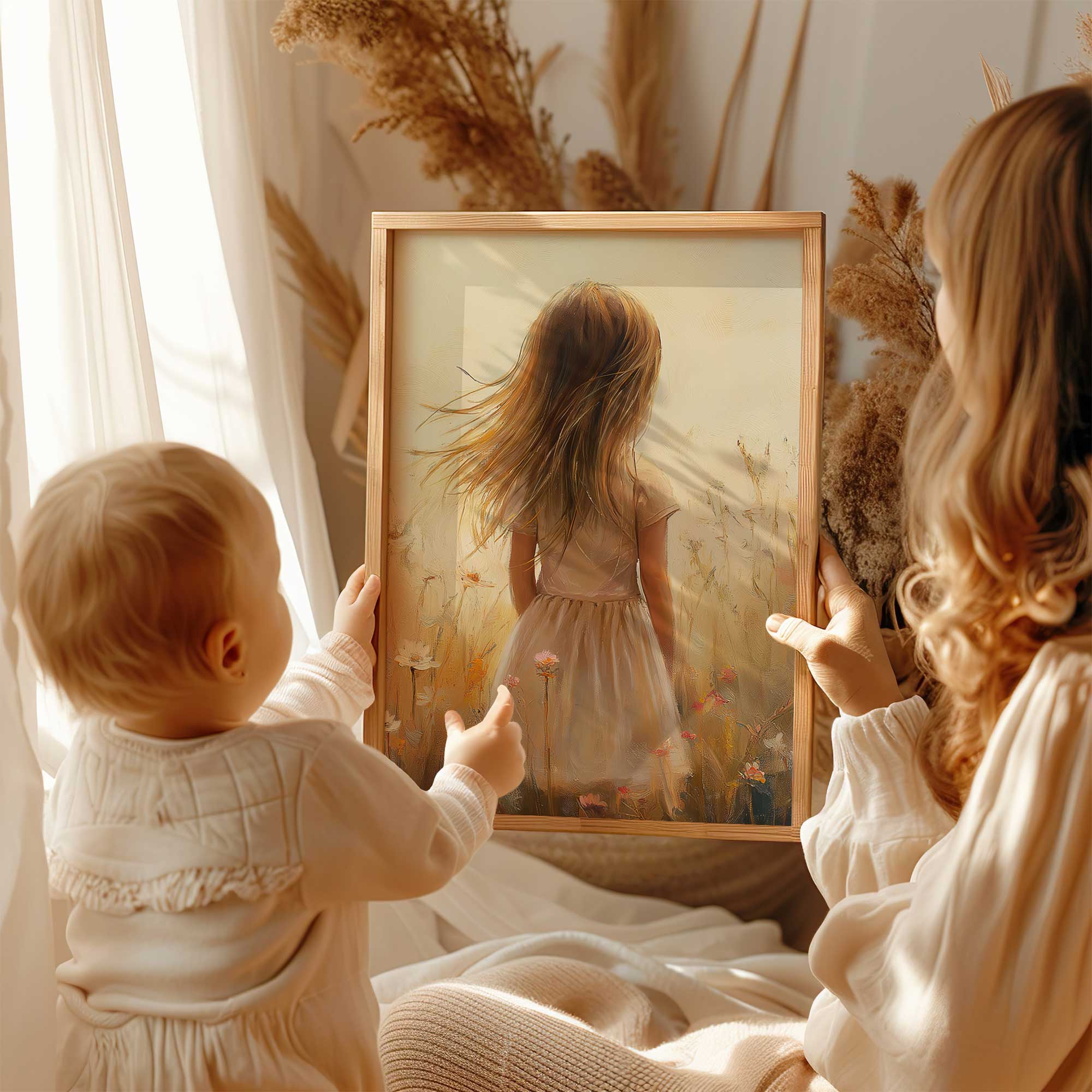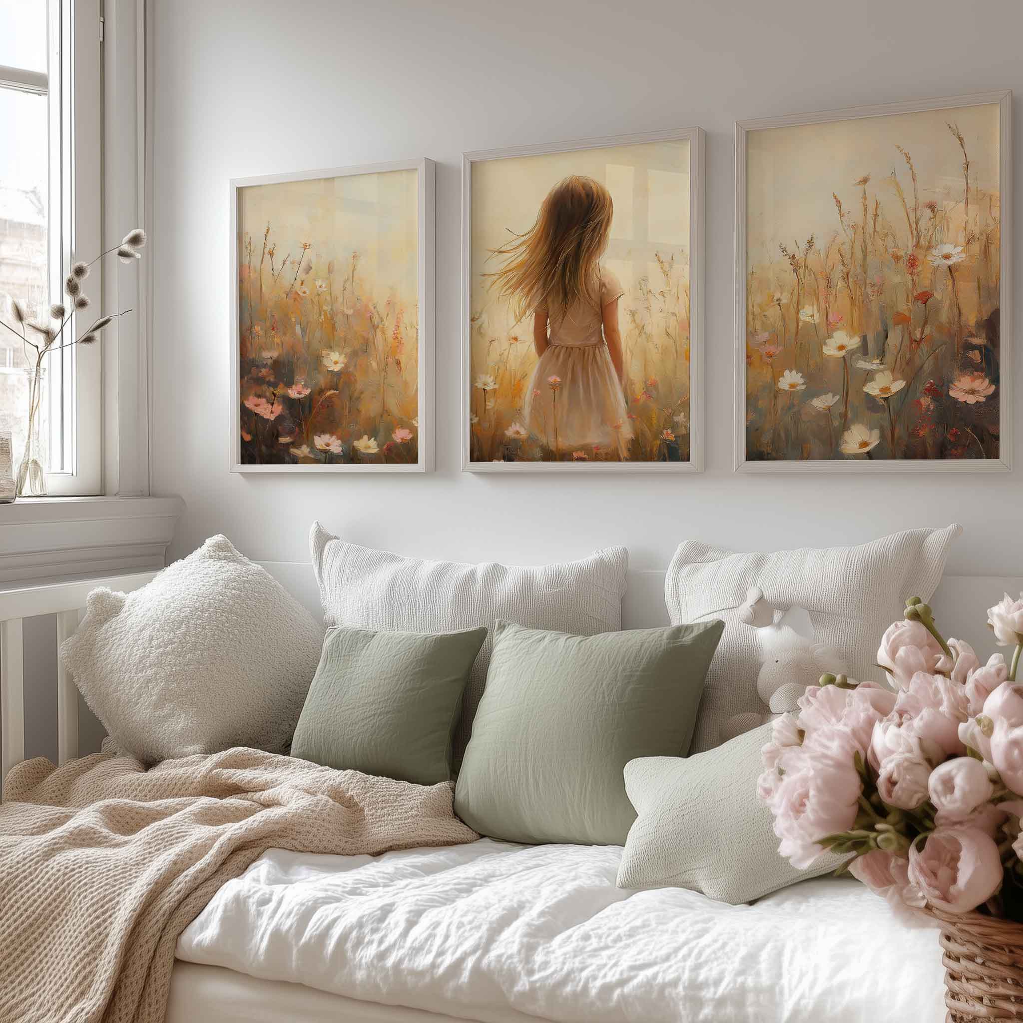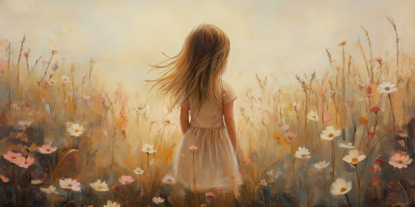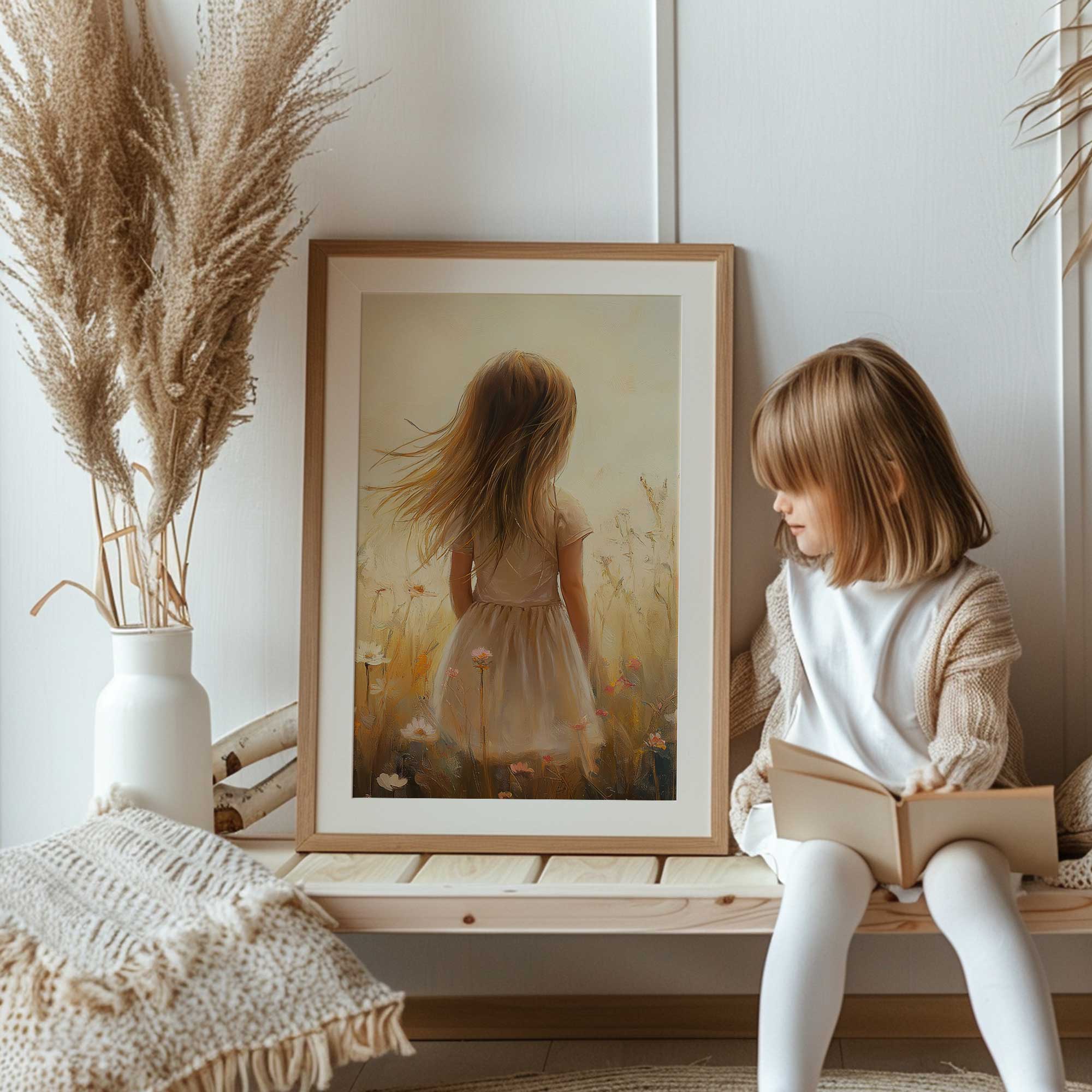 Terug naar collectie Posters Zonnig Meisje in Bloeiend Bloemenveld