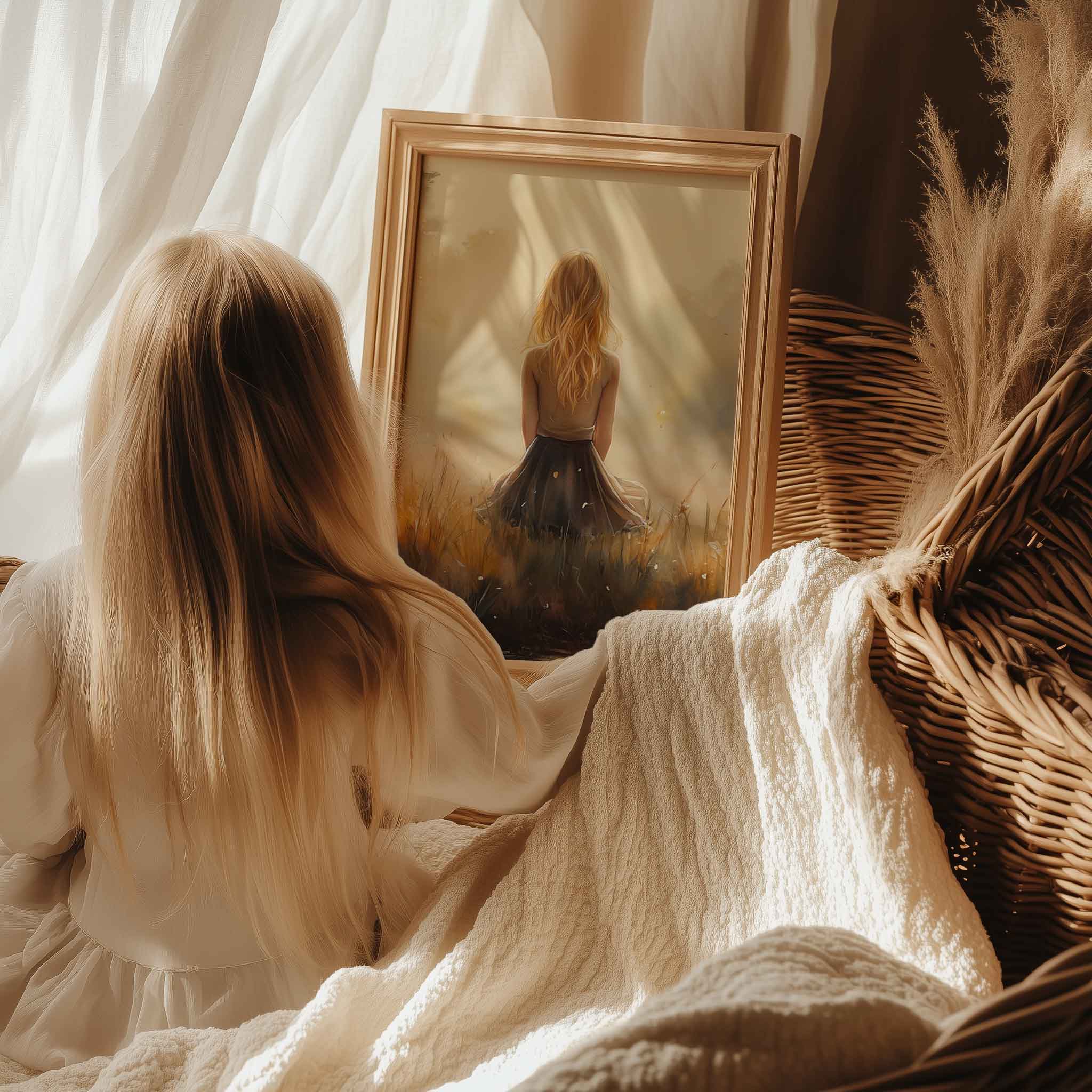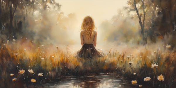 Zonnig Meisje in Bloeiend Bloemenveld