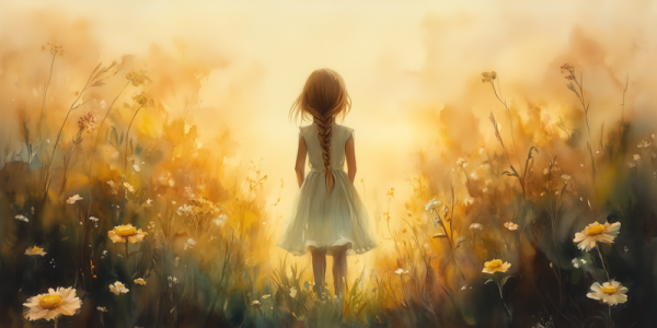 Zonnig Meisje in Bloeiend Bloemenveld
