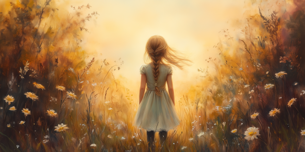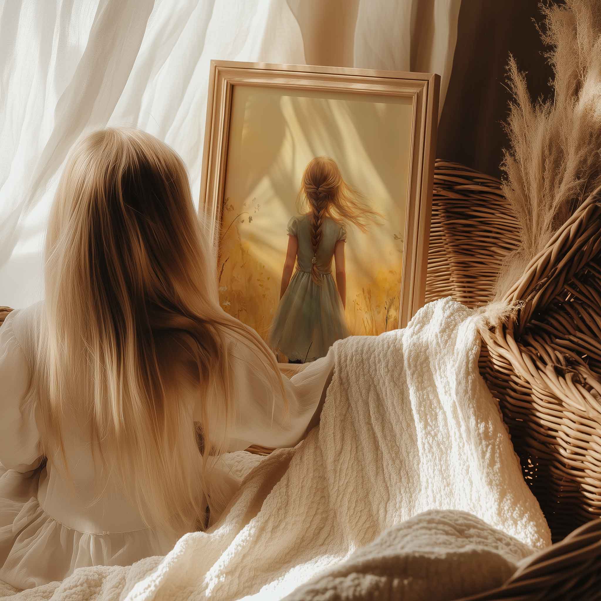 Terug naar collectie Posters Zonnig Meisje in Bloeiend Bloemenveld
