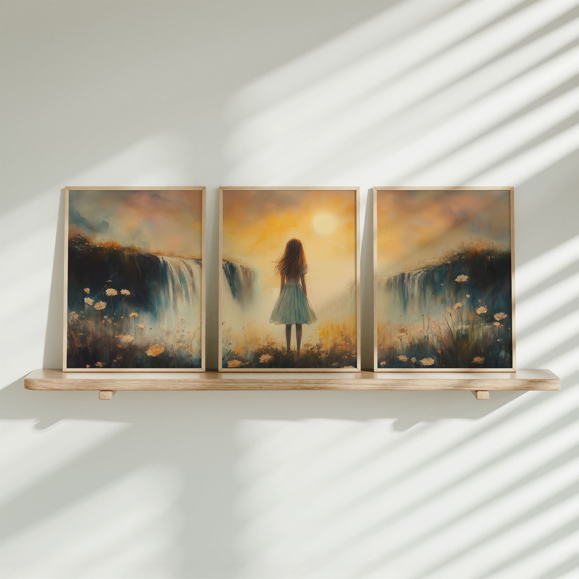 Zonnig Meisje in Bloemenveld – Dromerig Pastel Schilderij