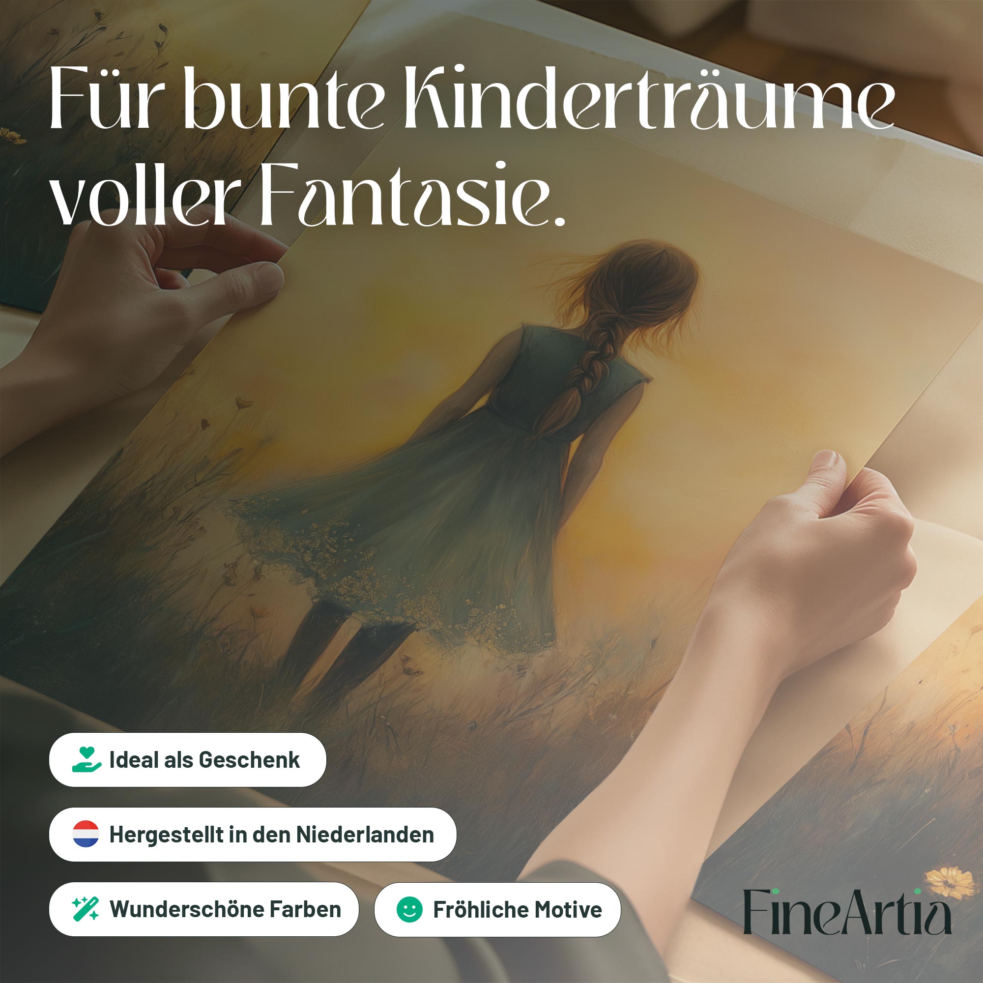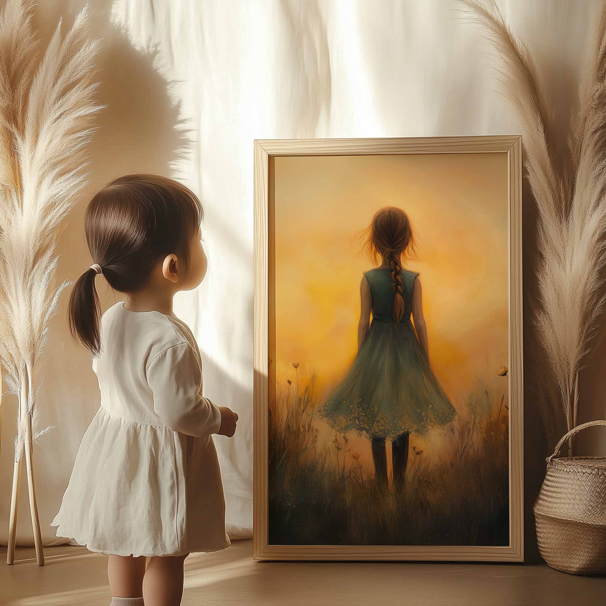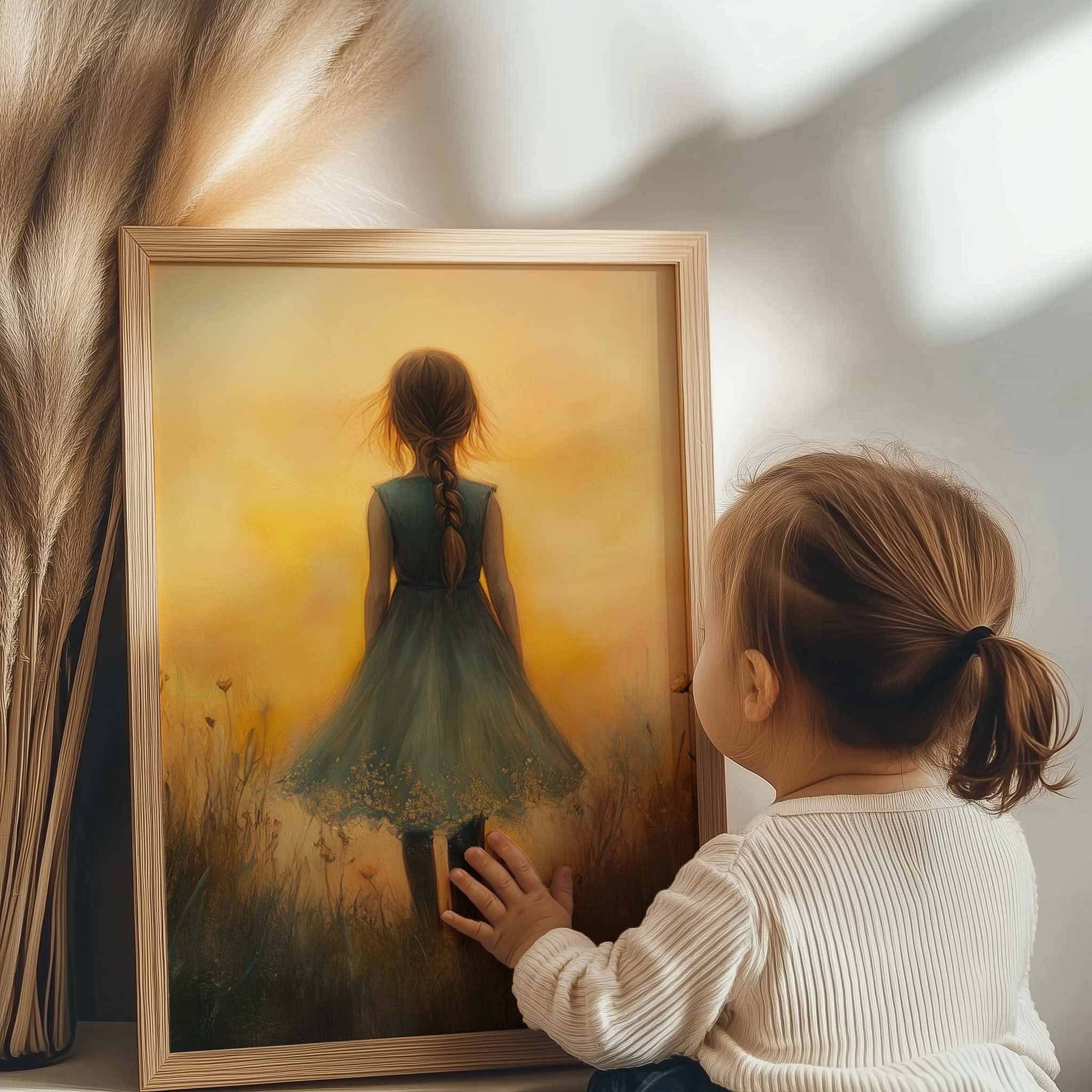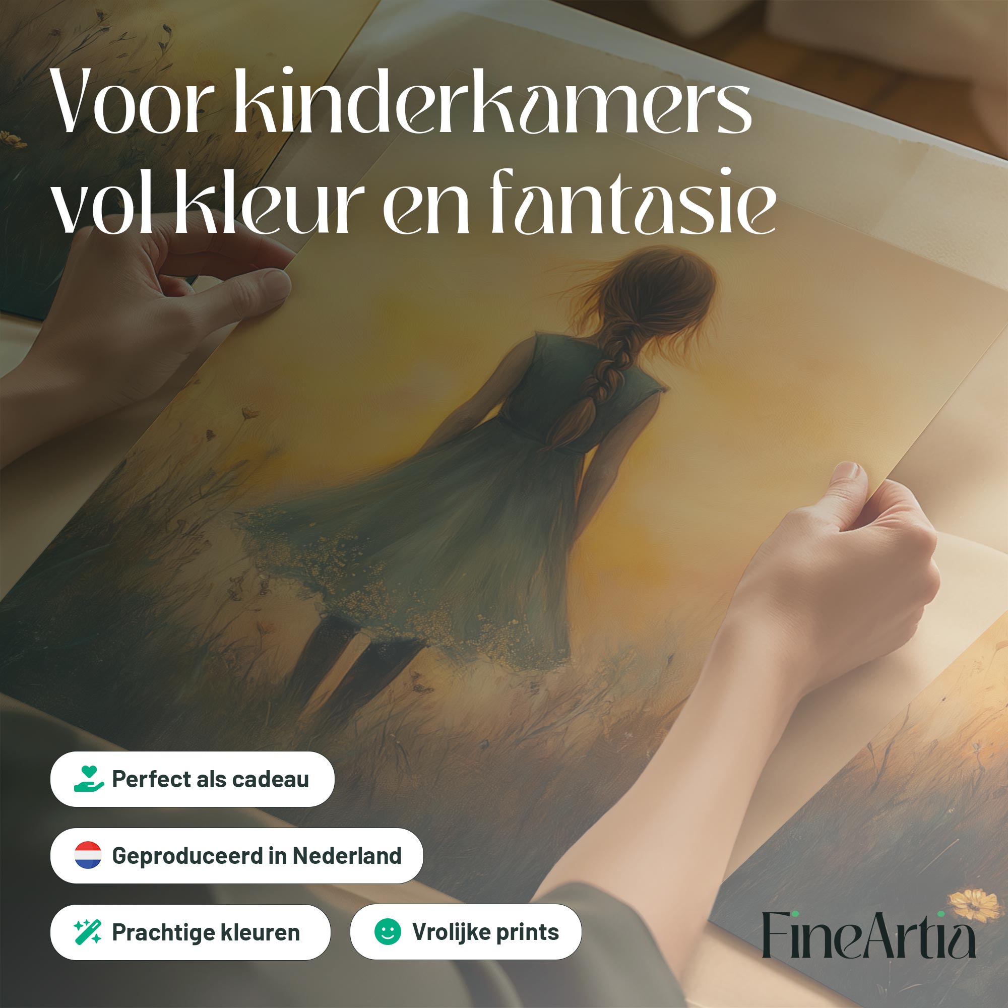 Zonnig Meisje in Bloemenveld – Dromerige Muurdecoratie