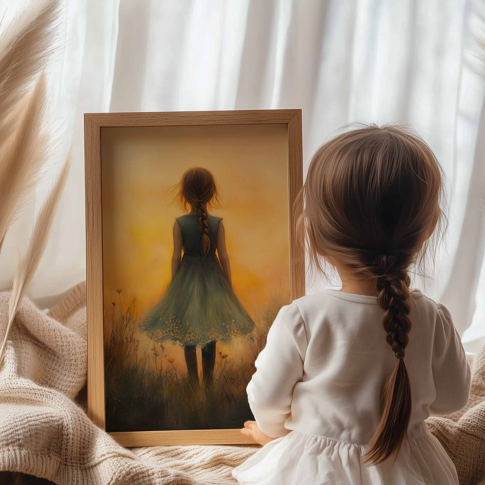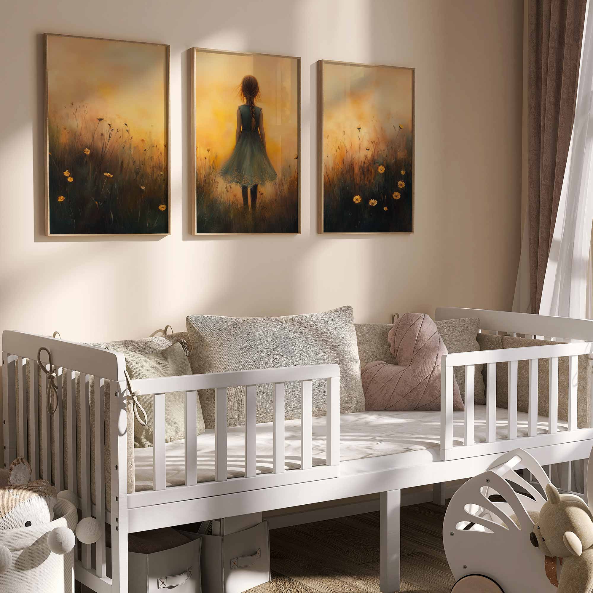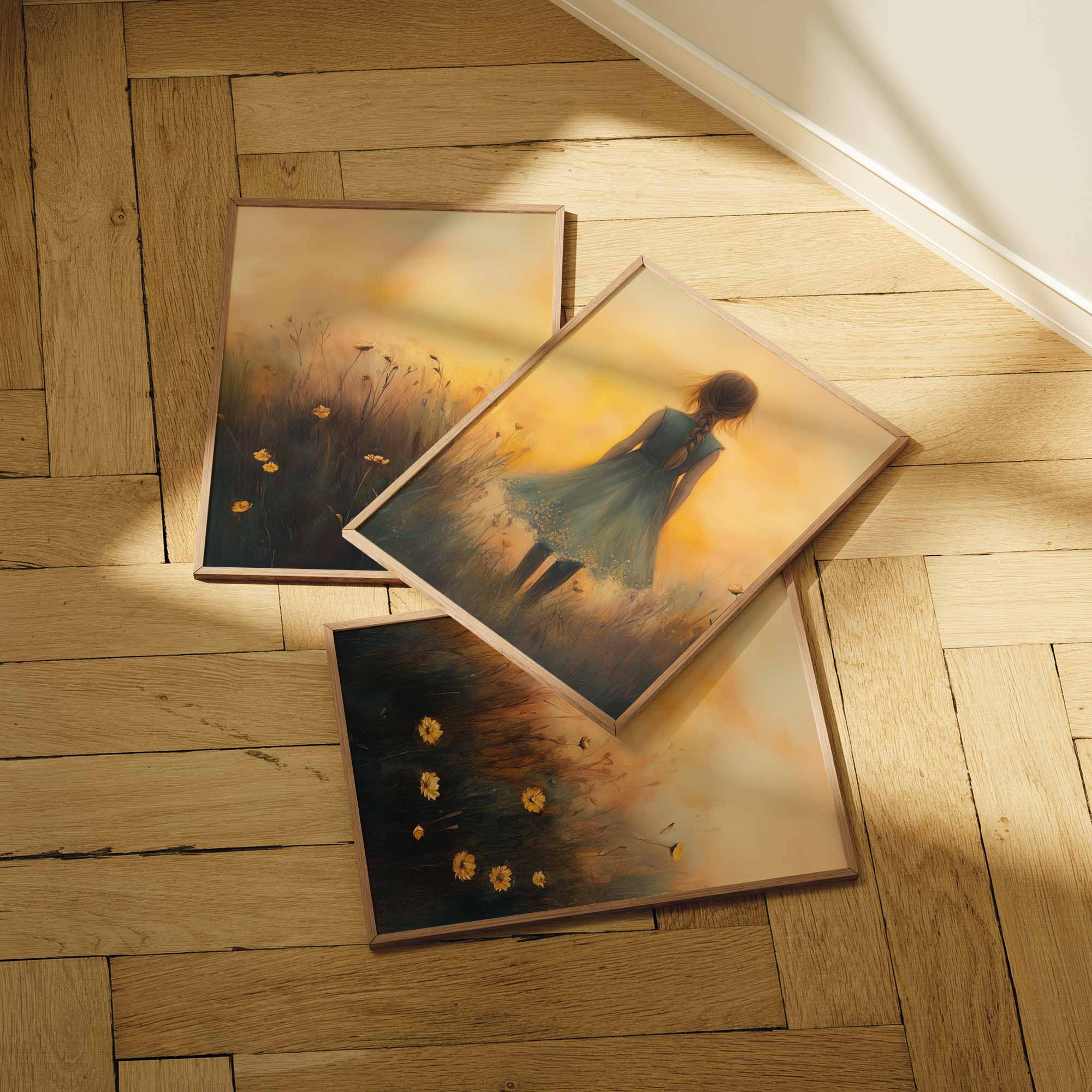 Zonnig Meisje in Bloemenveld – Dromerige Muurdecoratie
