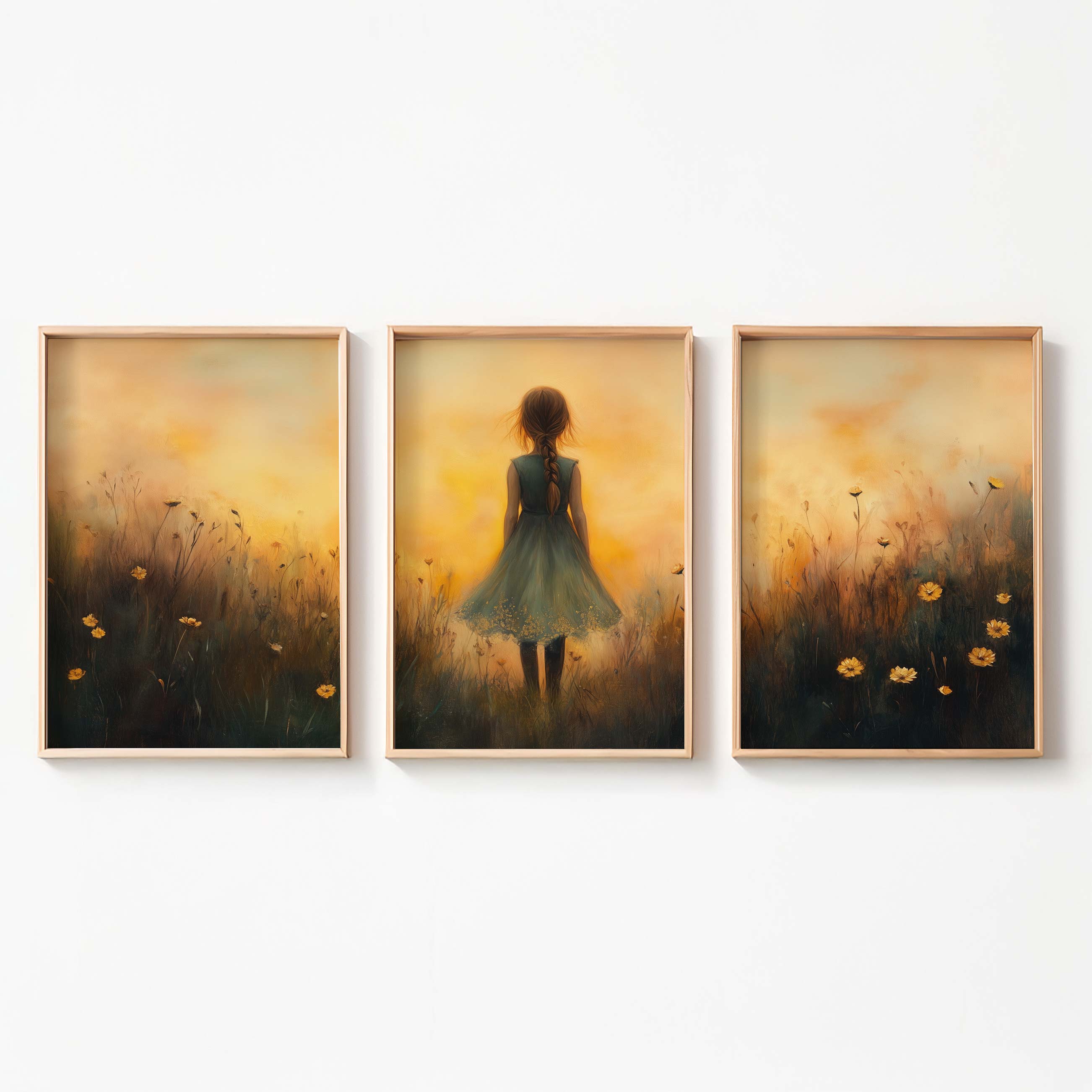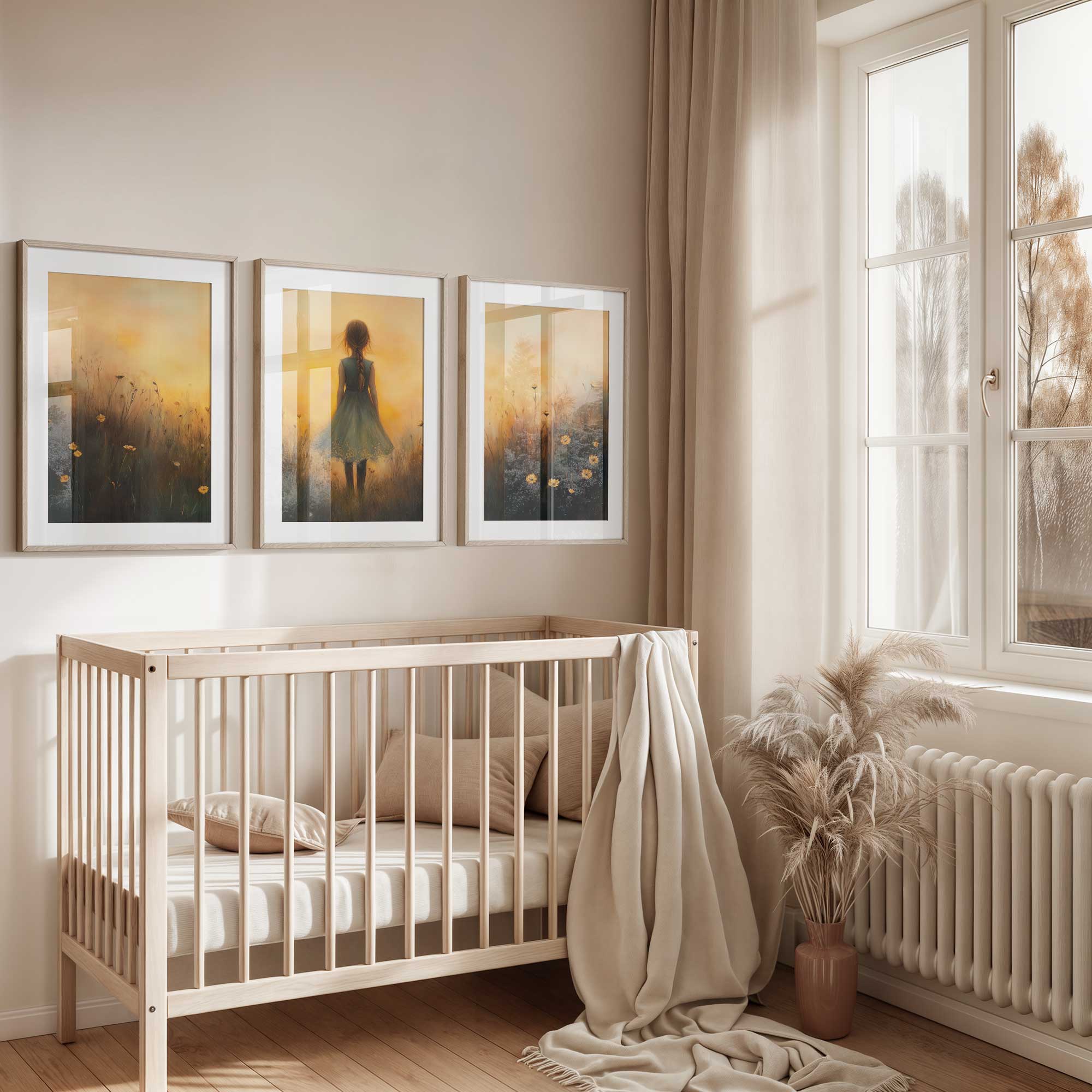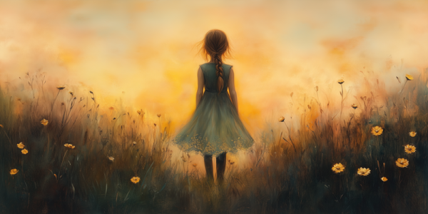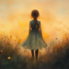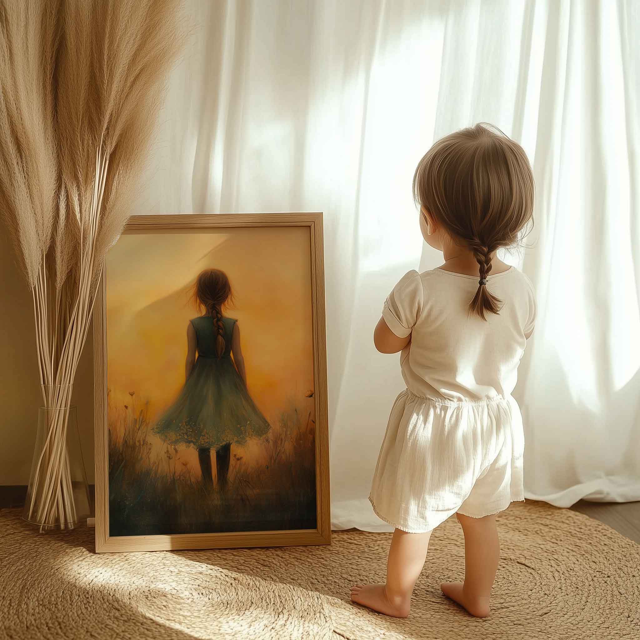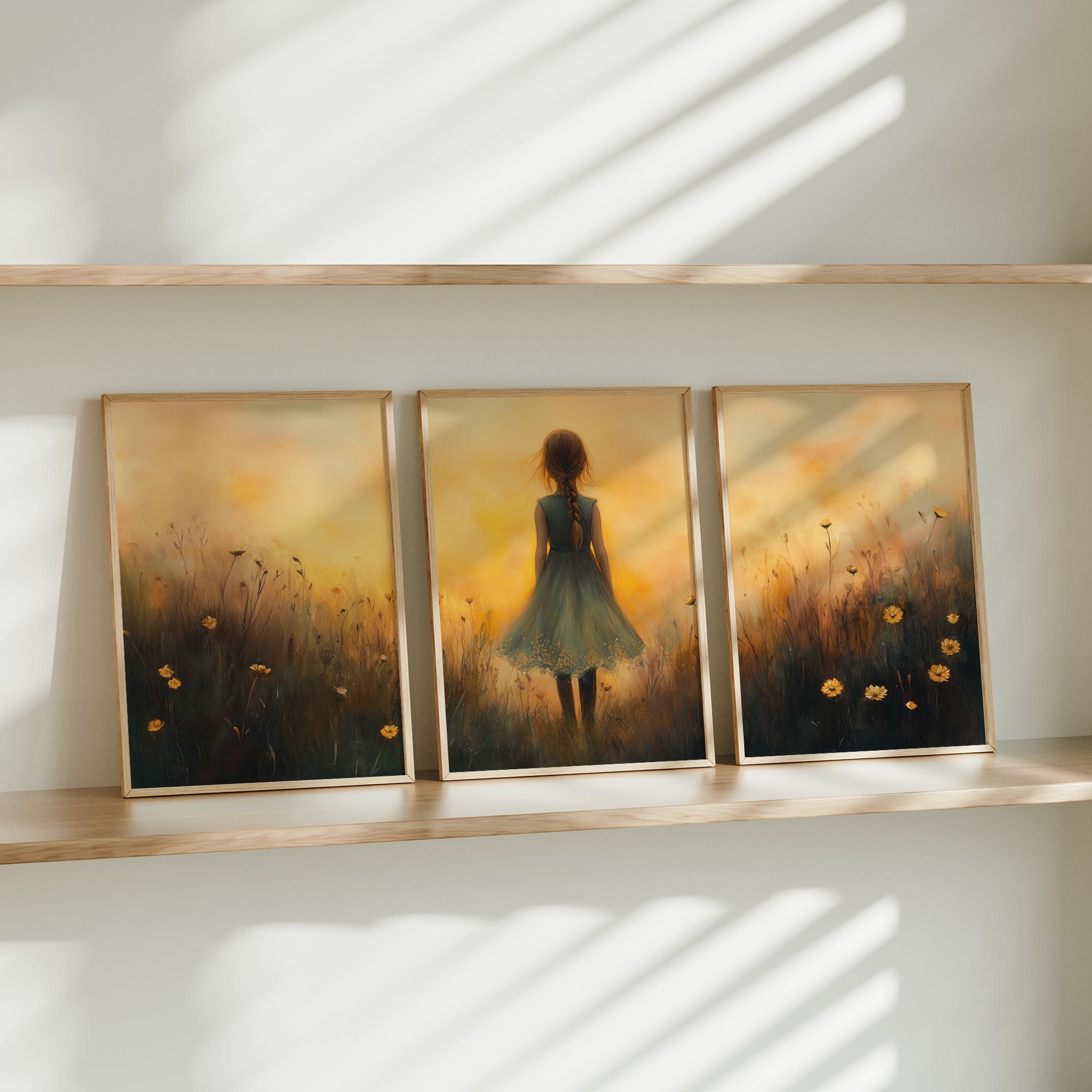 Zonnig Meisje in Bloemenveld – Dromerige Muurdecoratie