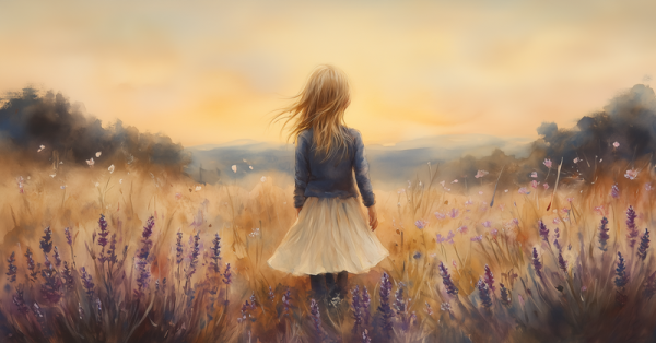 Zonnig Meisje in Bloemenveld – Droomlandschap