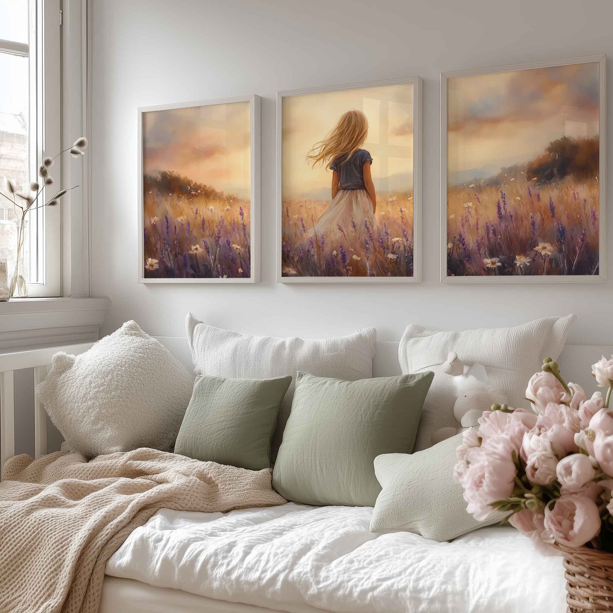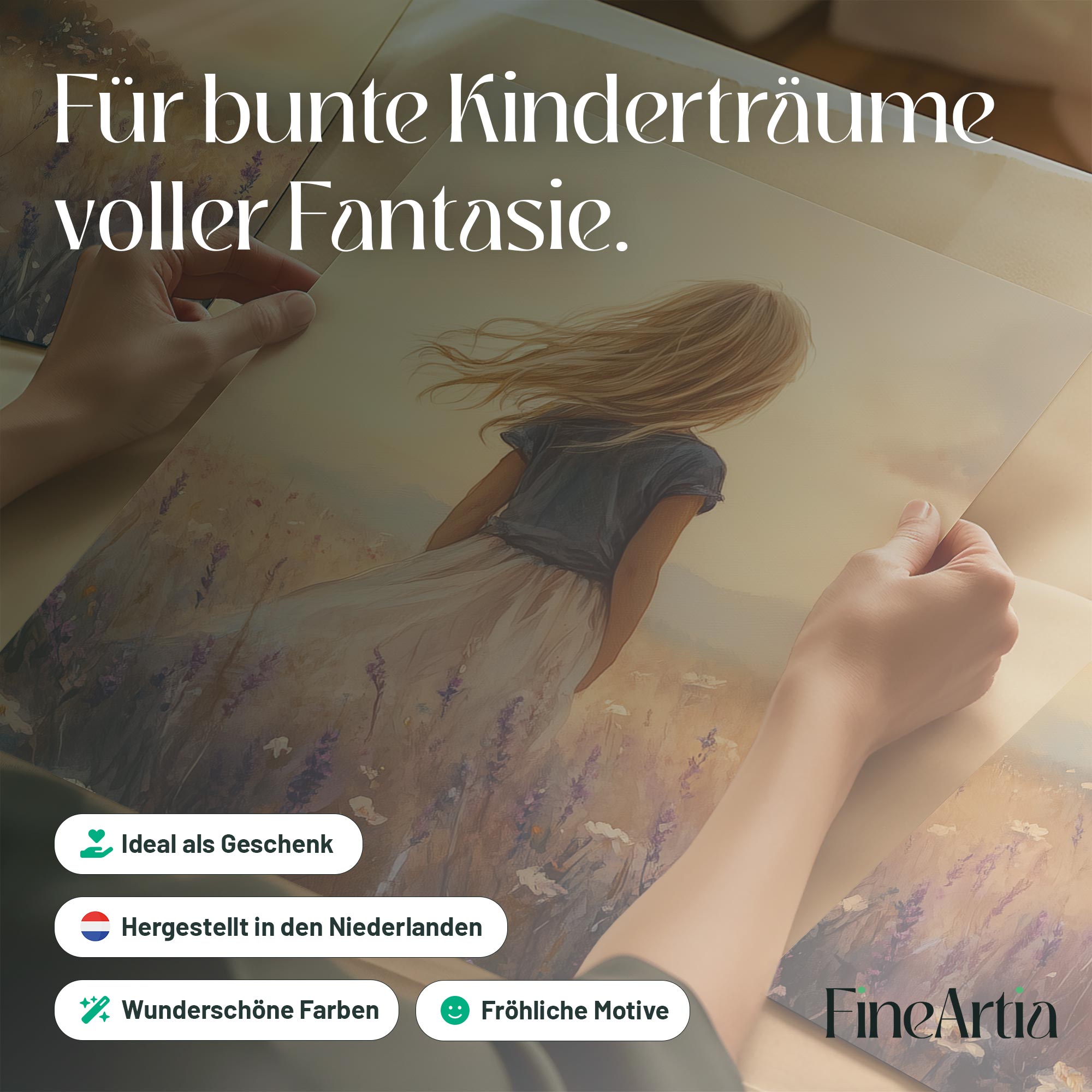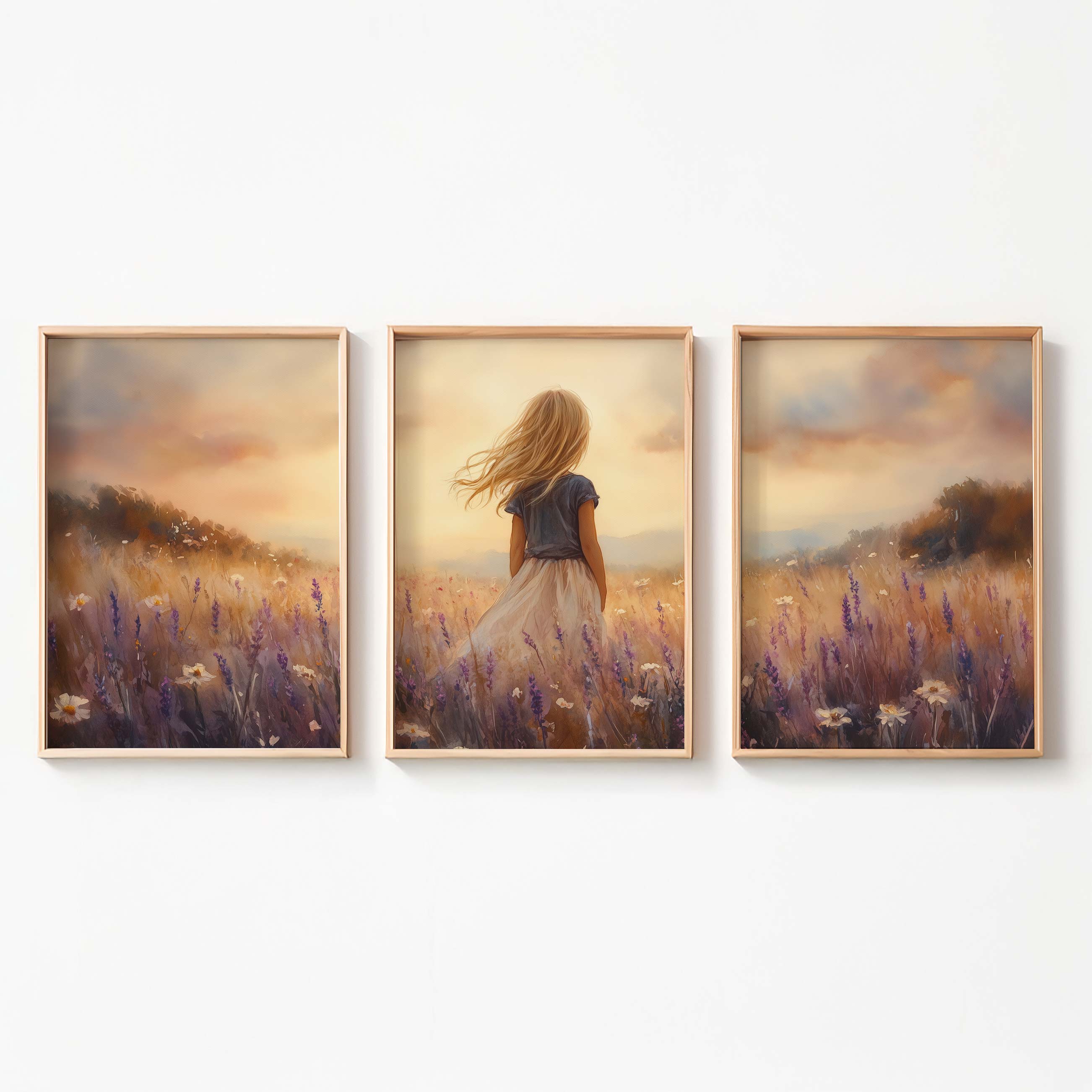 Zonnig Meisje in Bloemenveld met Zonsondergang