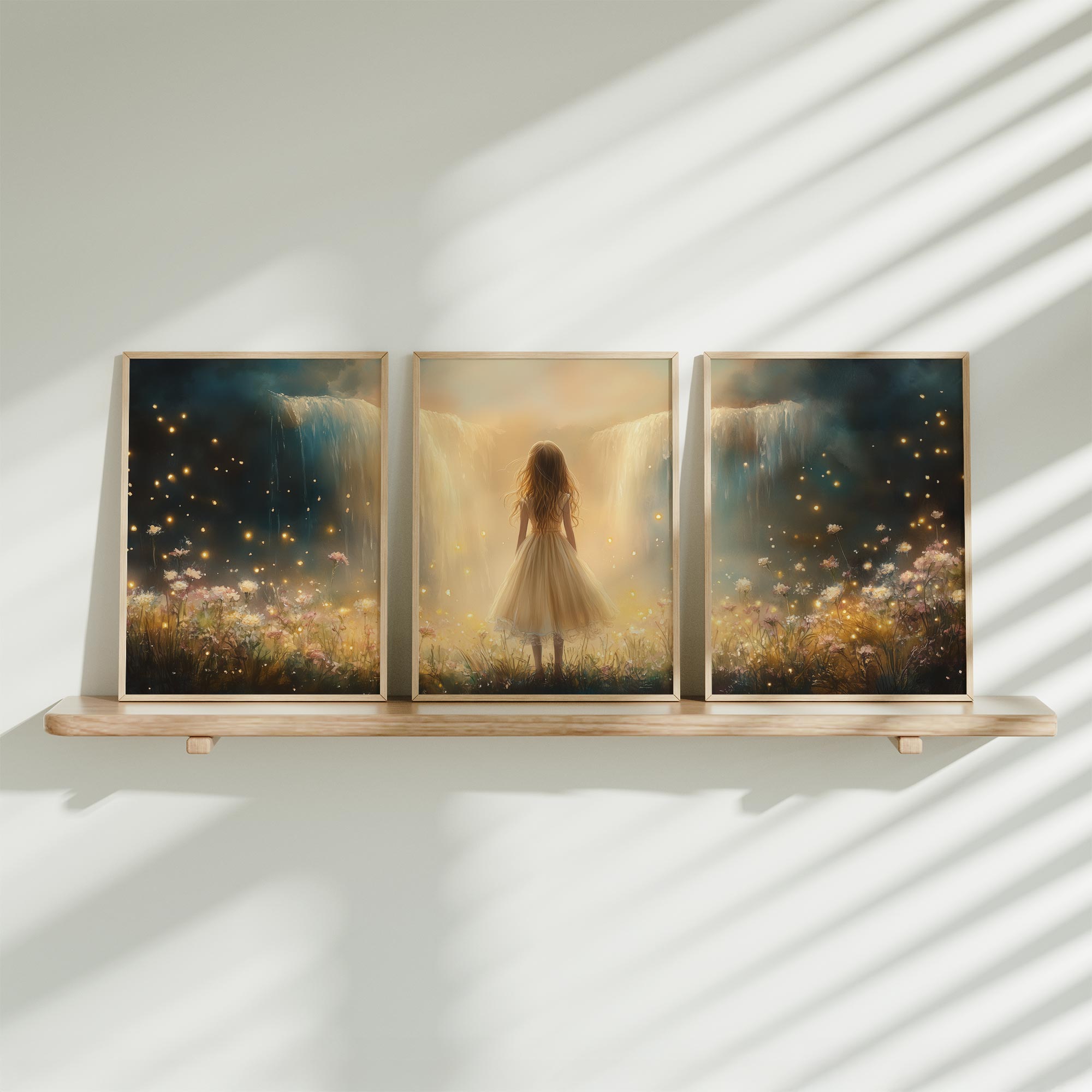 Zonnig Meisje in Bloemenveld met Zonsondergang