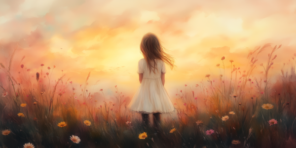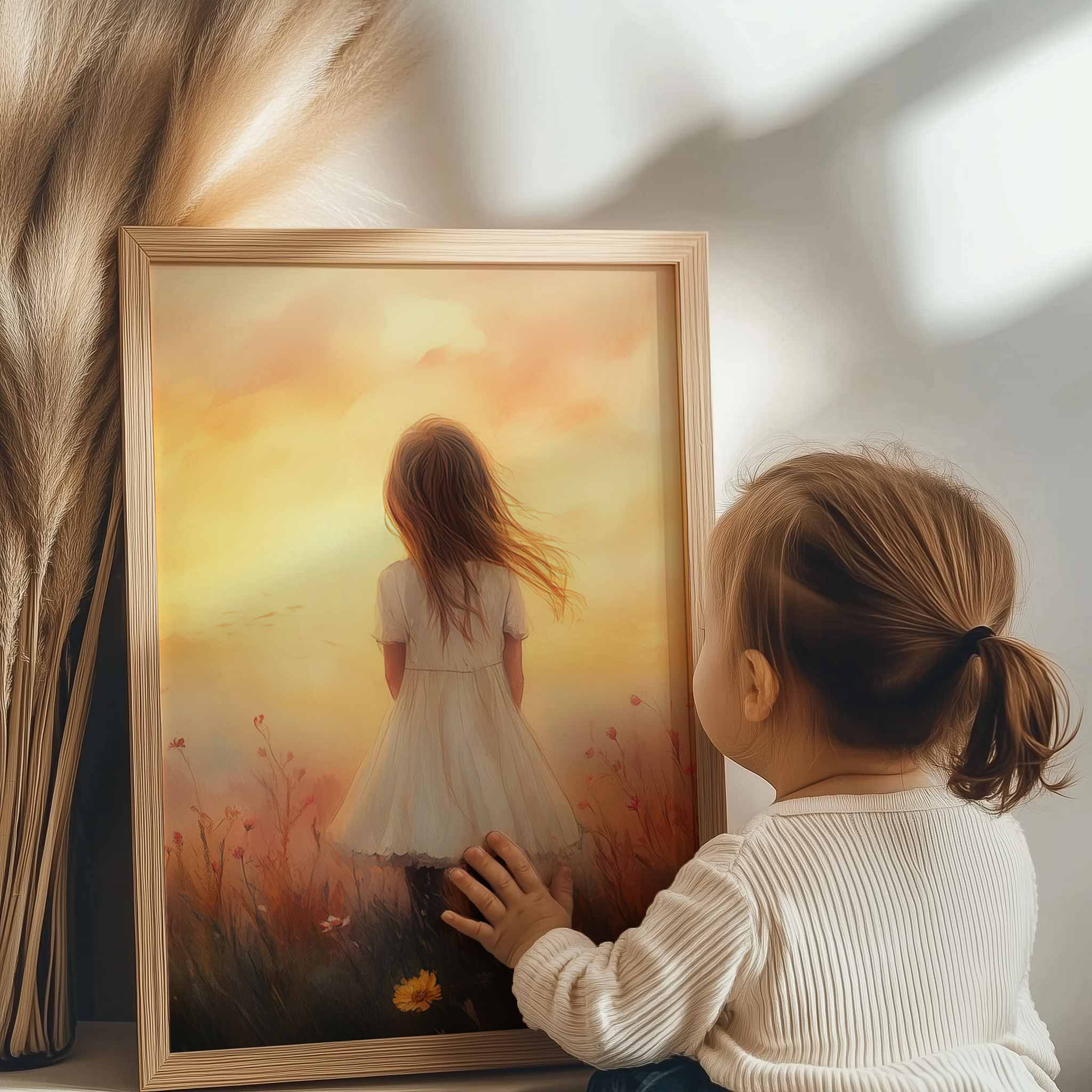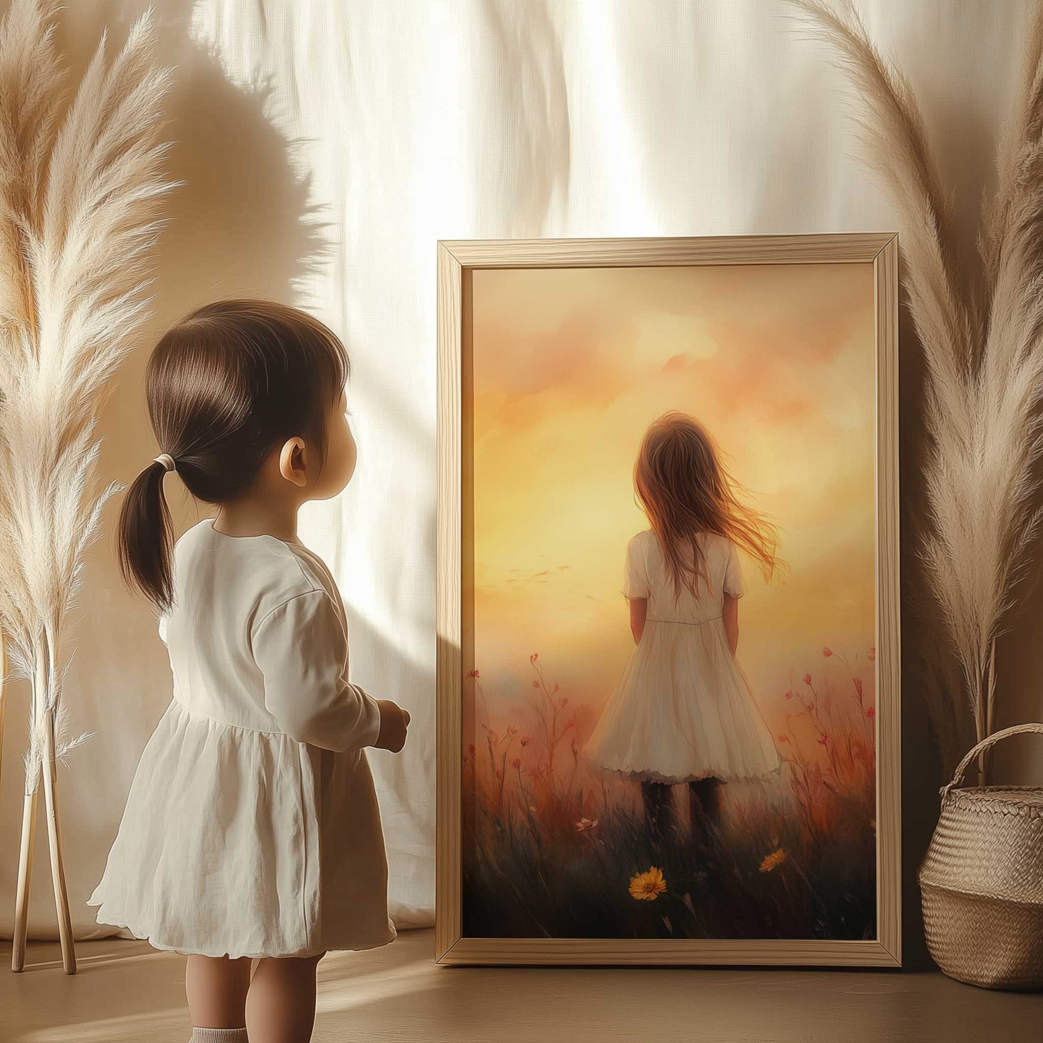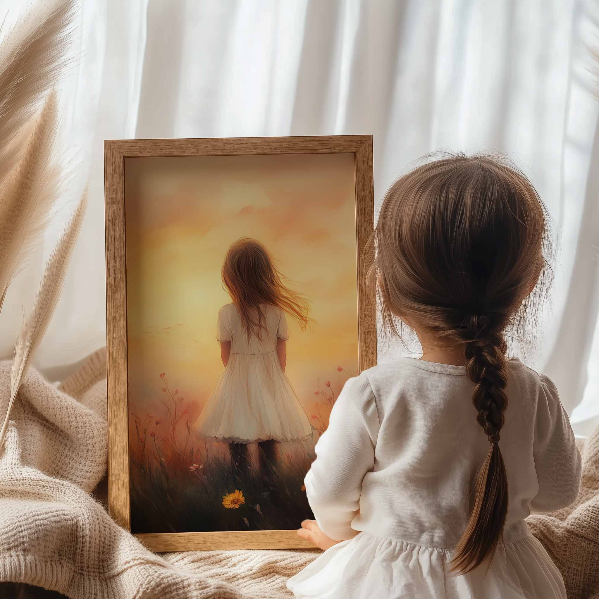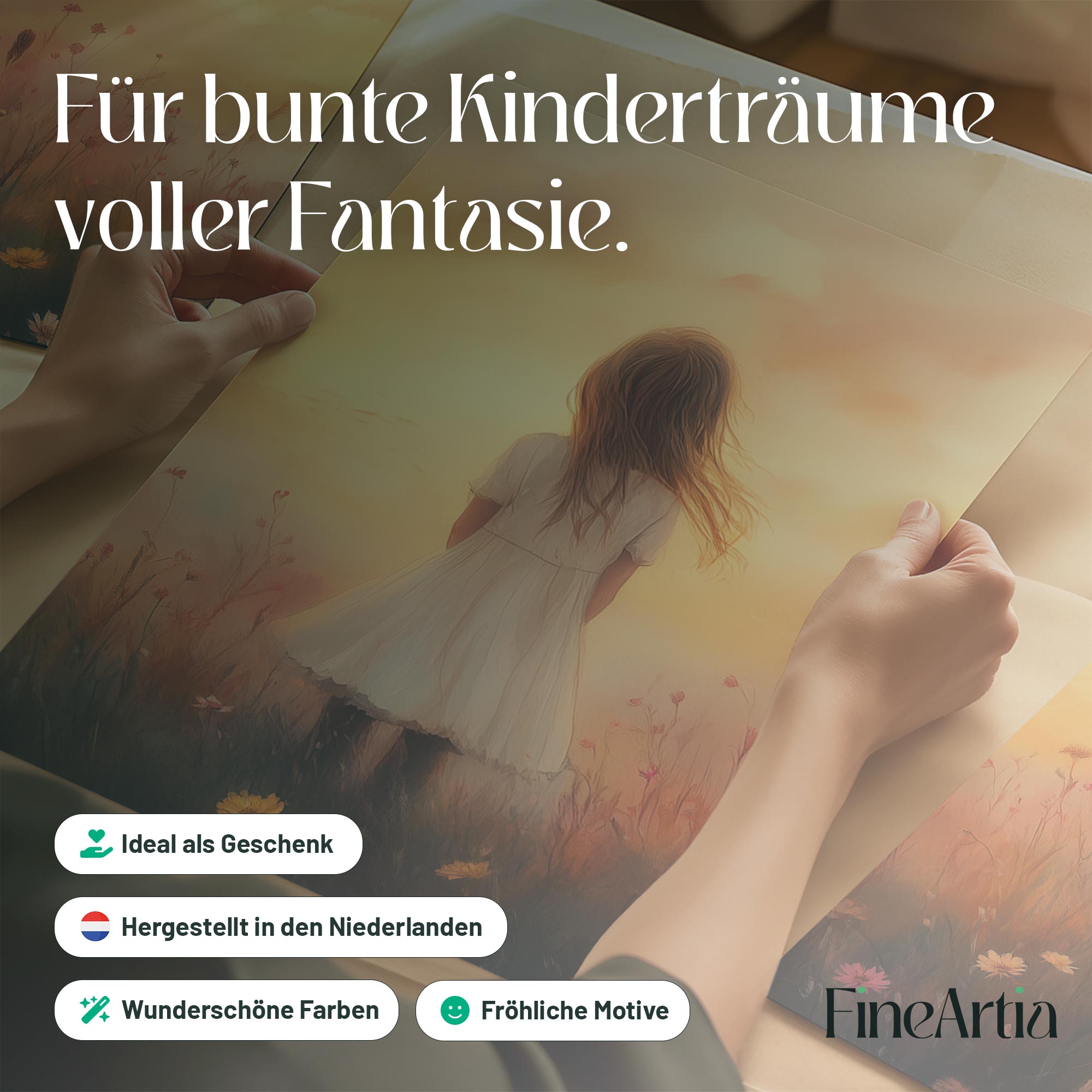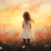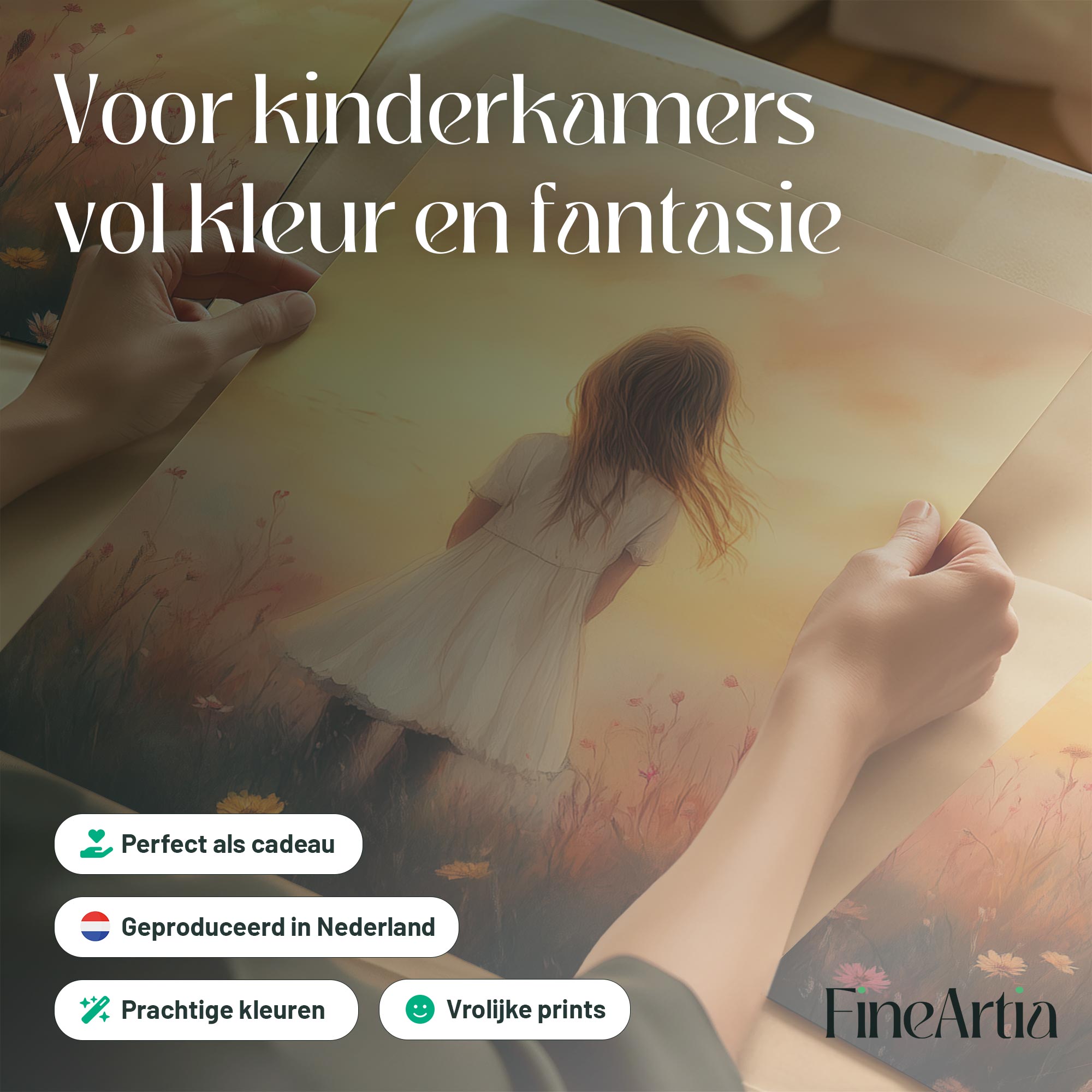Zonnig Meisje in Bloemenveld – Speels en Dromerig