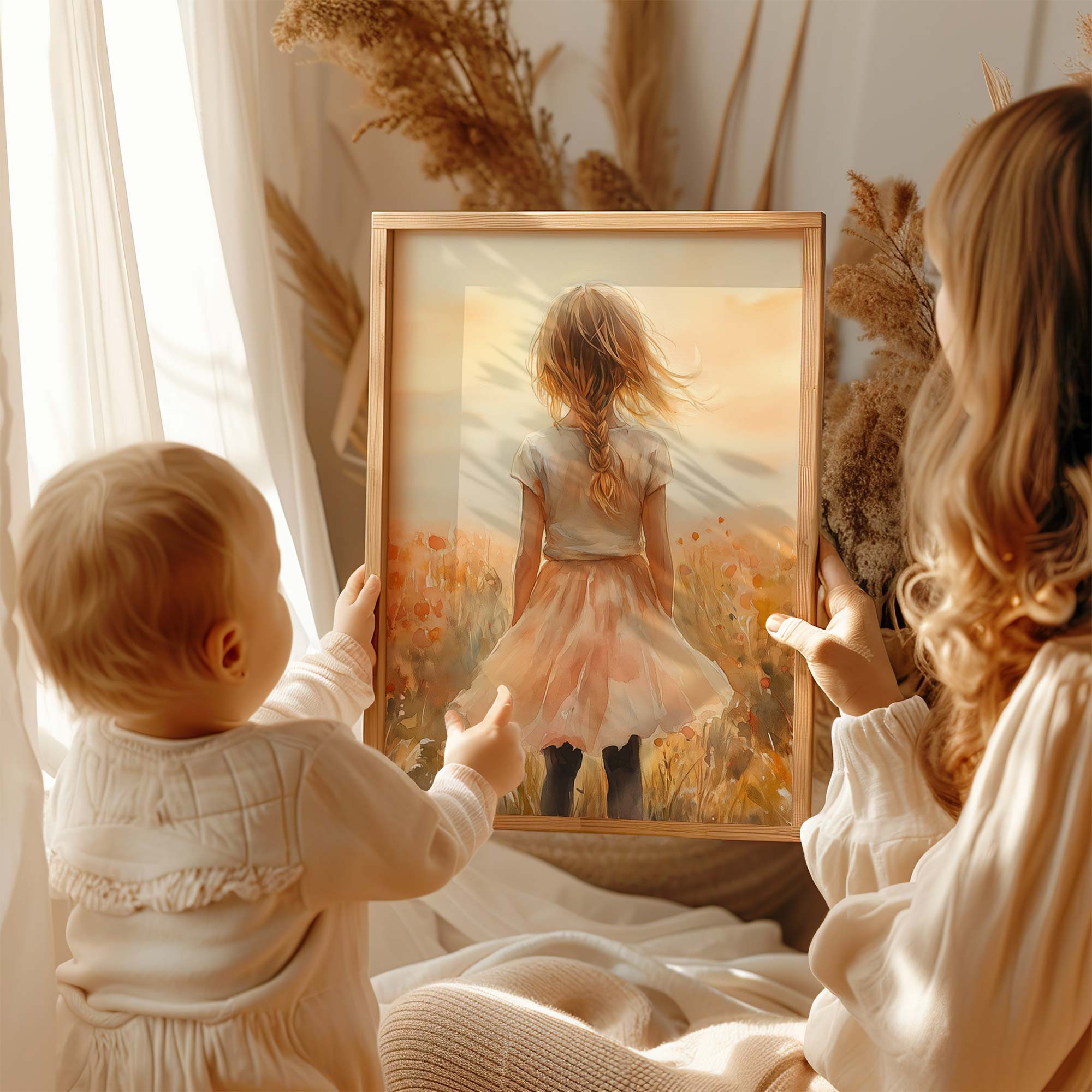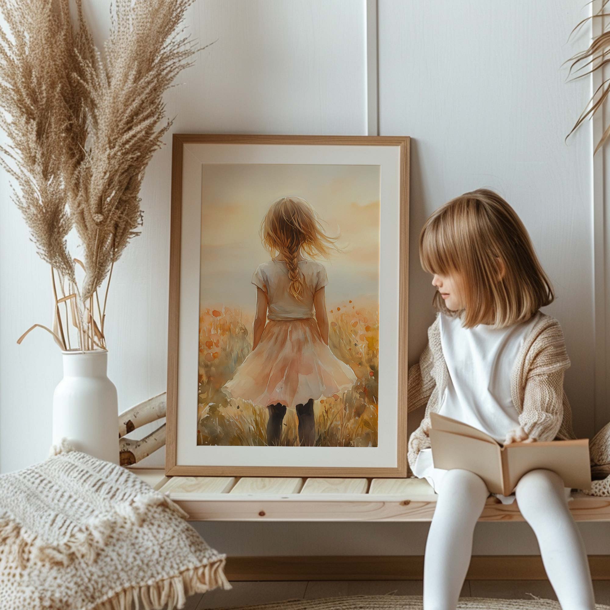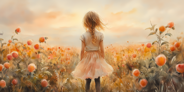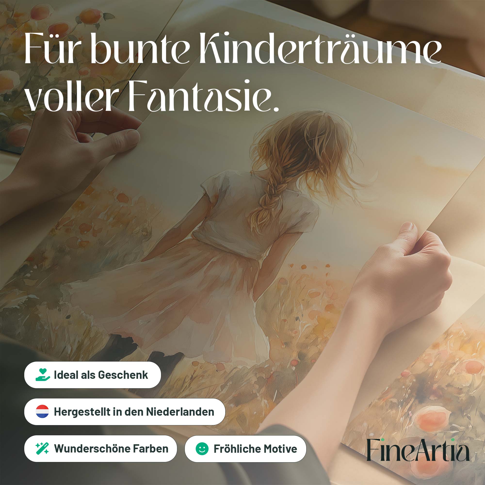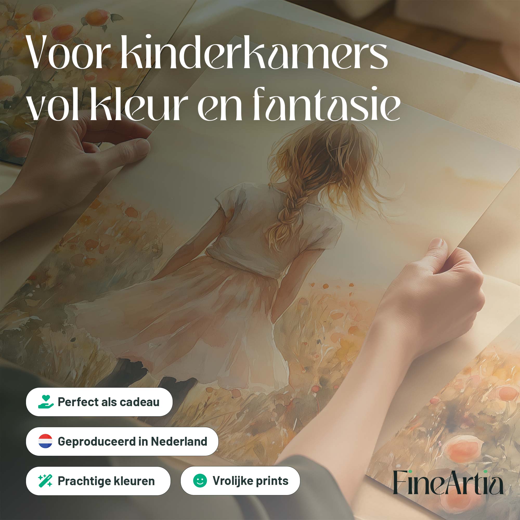 Zonnig Meisje in Bloemenveld – Speels en Dromerig
