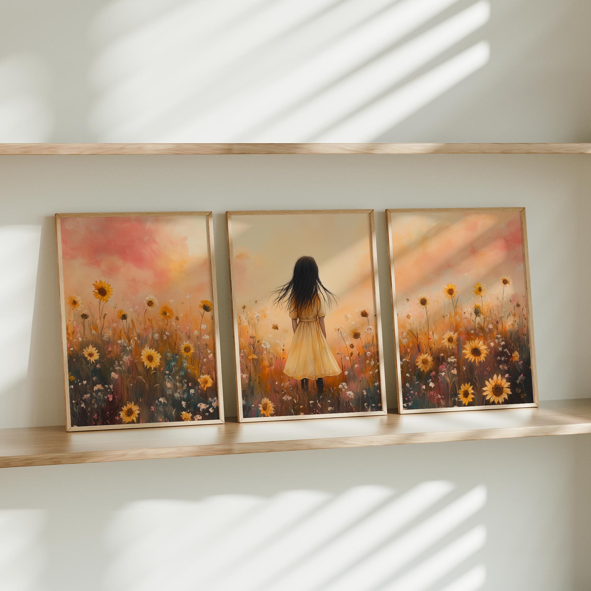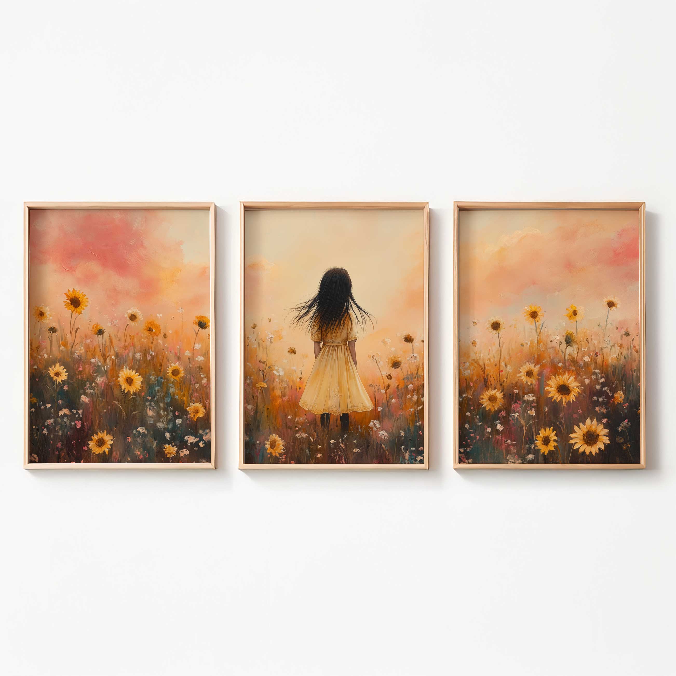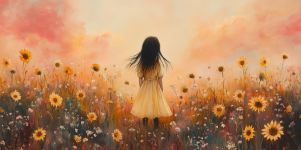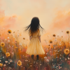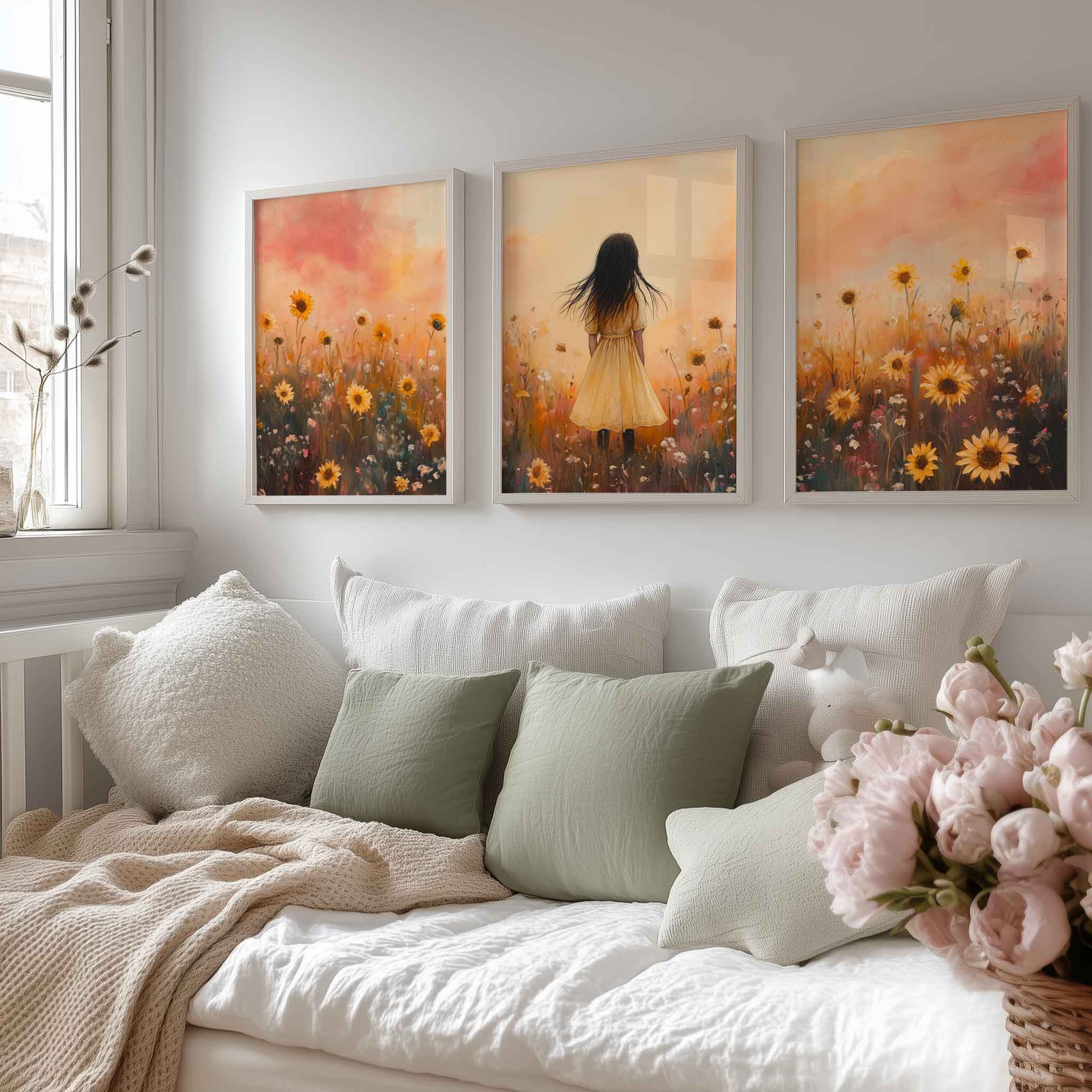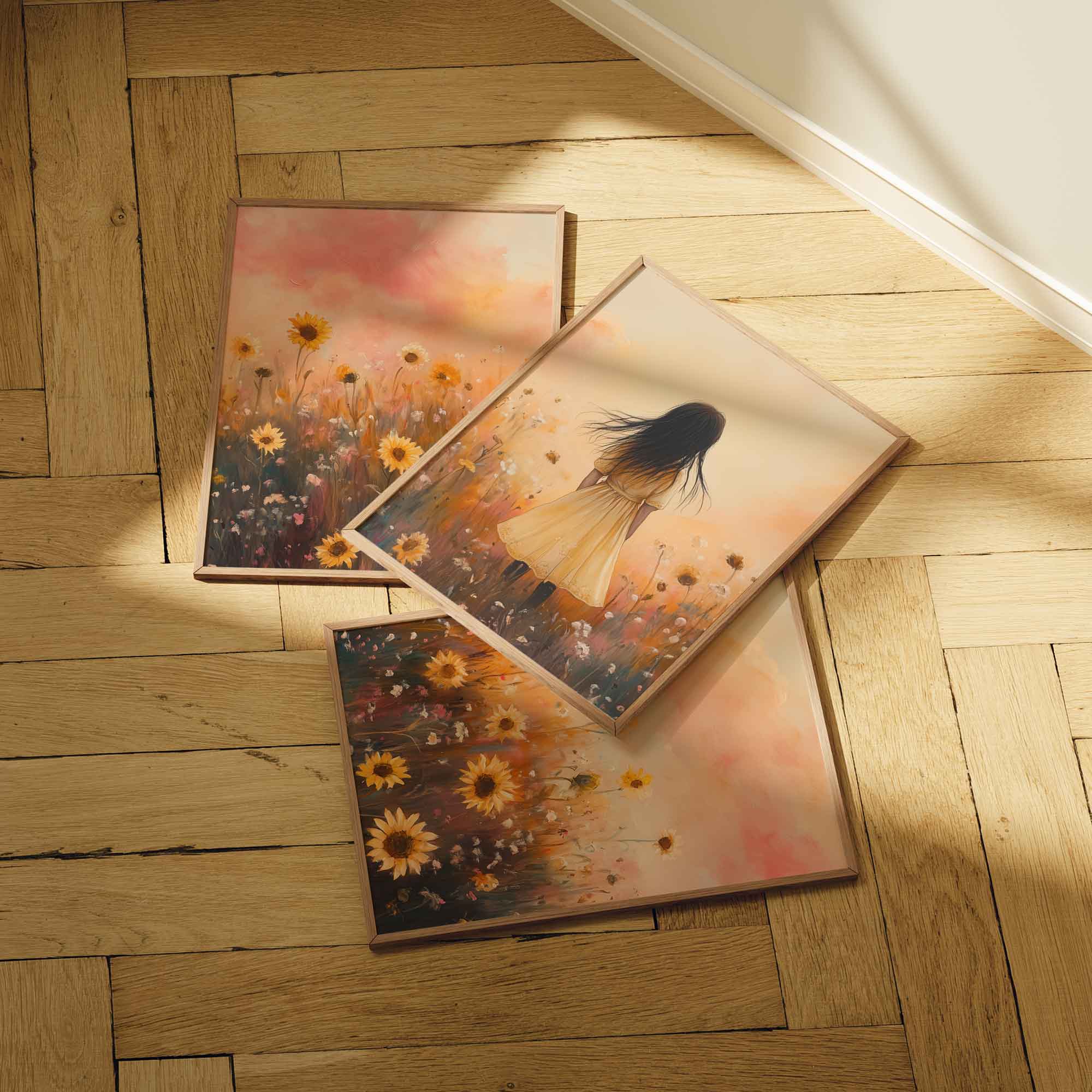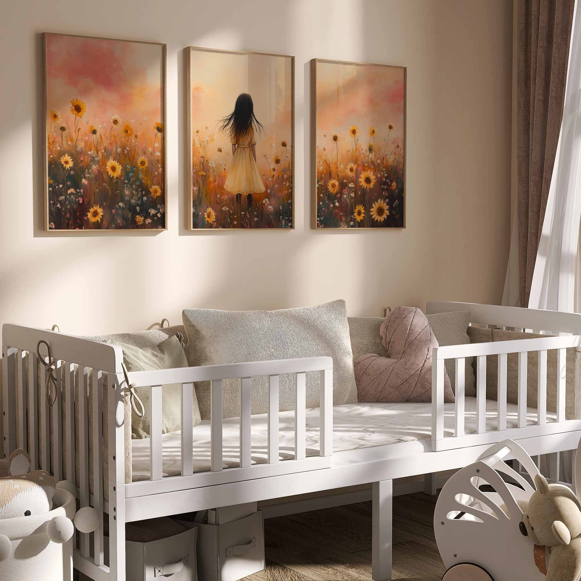 Zonnig Meisje in Bloemenveld – Vrolijke Kinderdecoratie