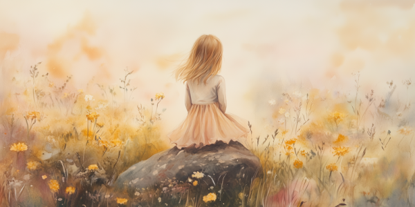 Zonnig Meisje in Bloemenveld – Vrolijke Kindertijd
