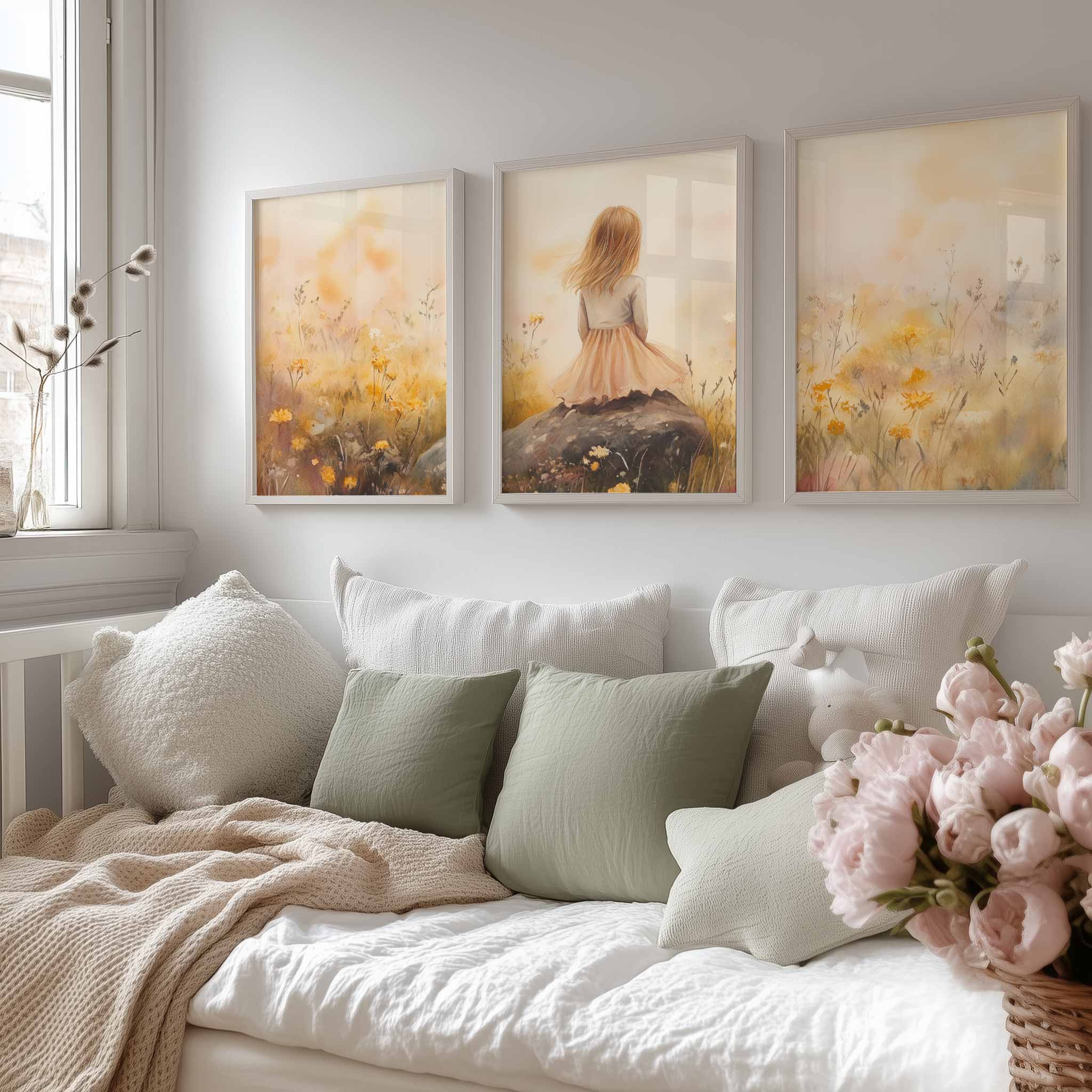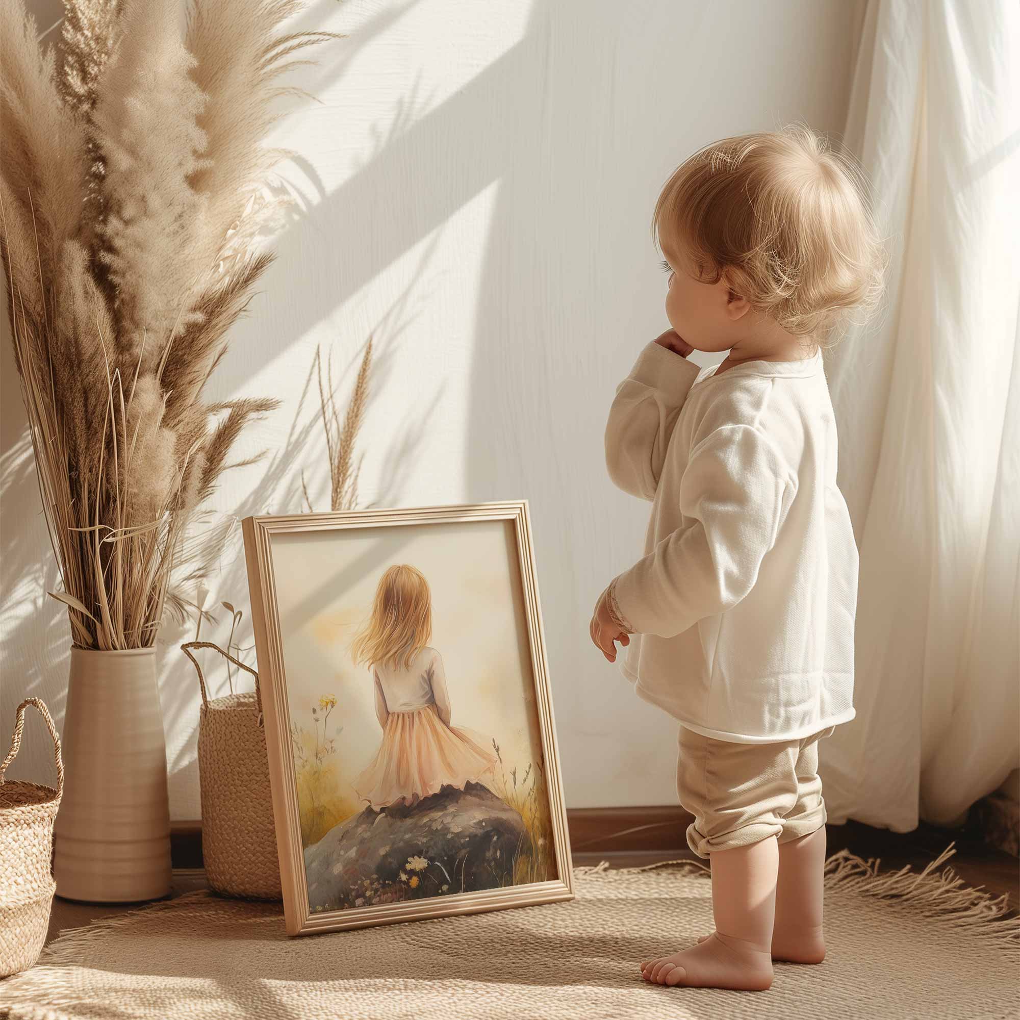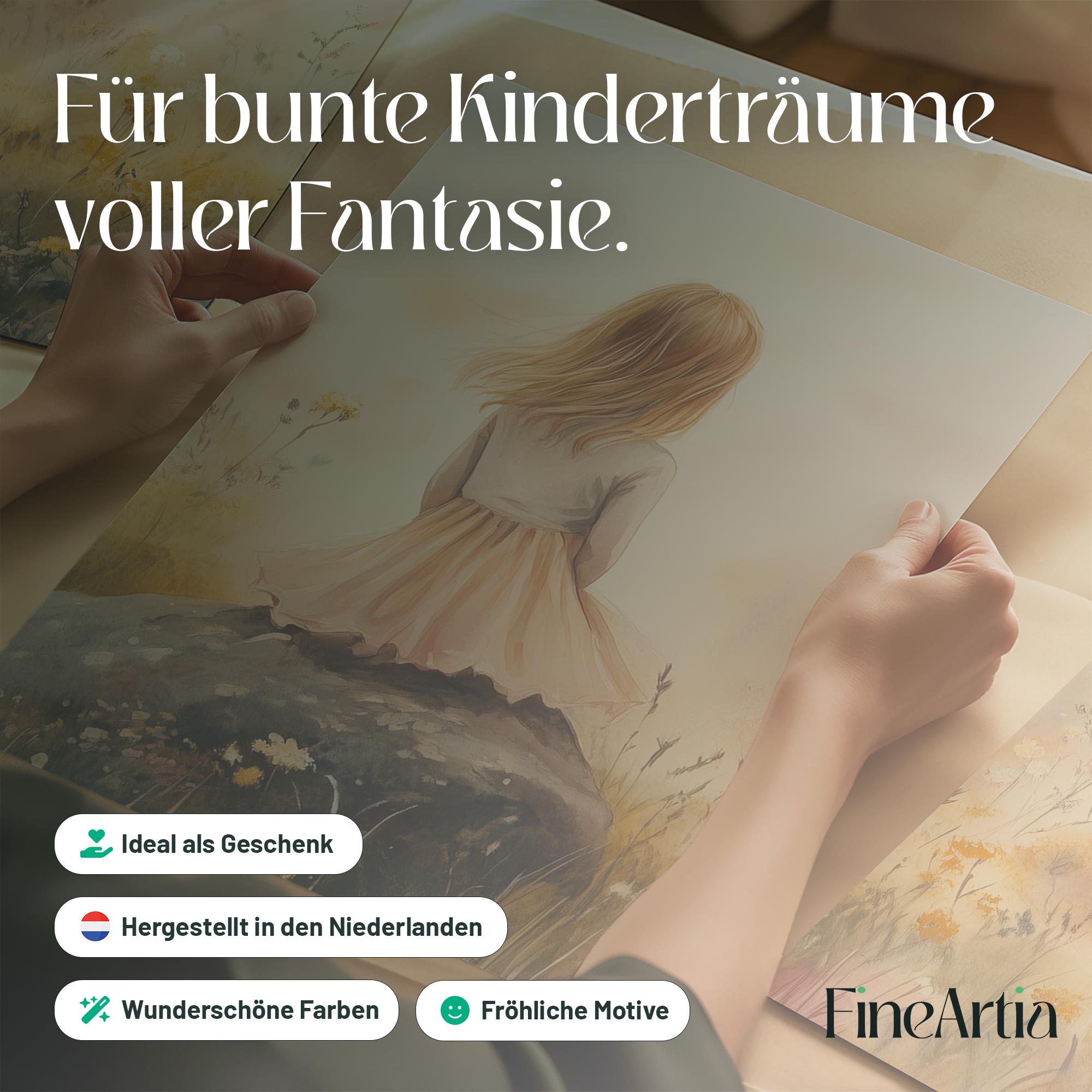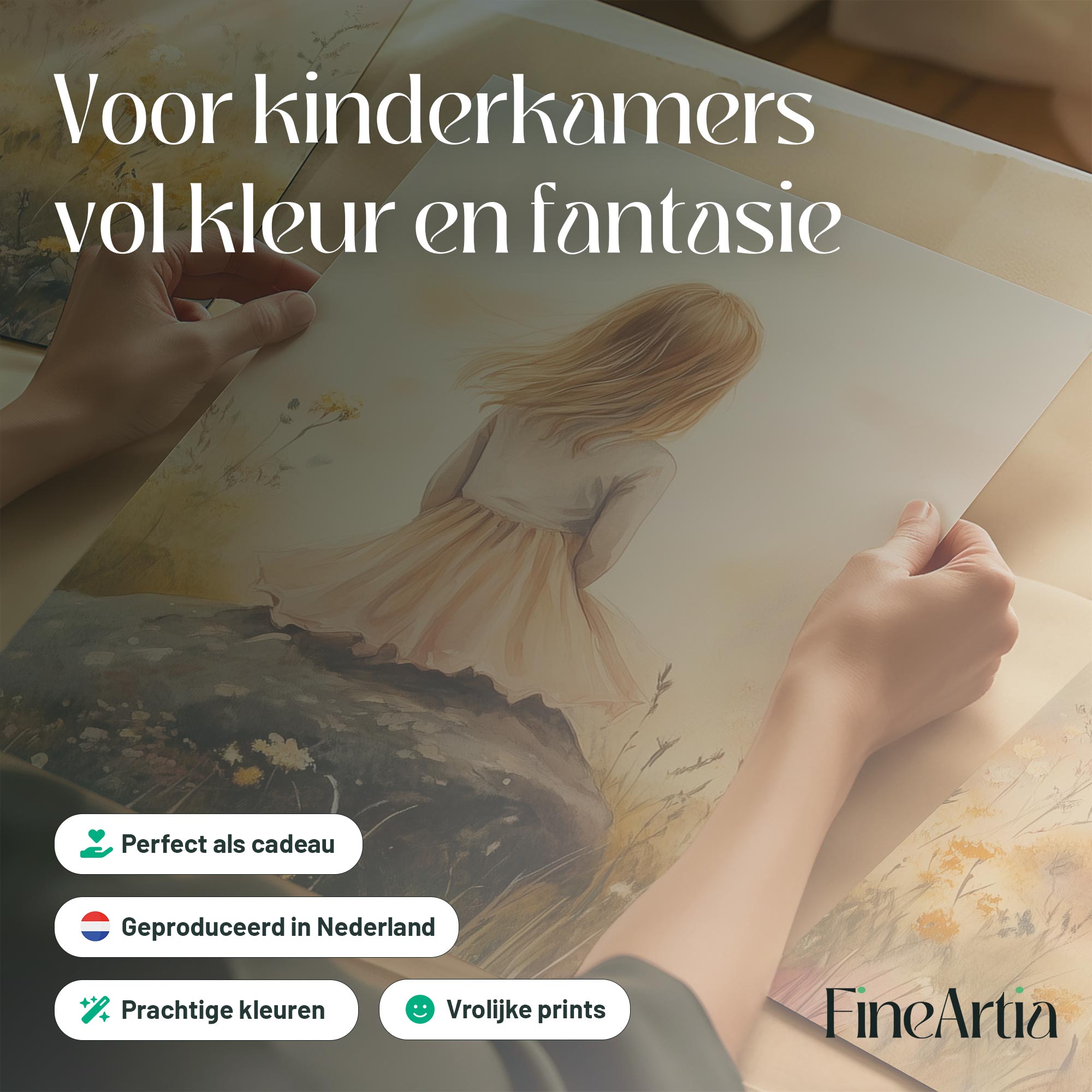 Terug naar collectie Posters Zonnig Meisje in Bloemenveld – Vrolijke Kindertijd