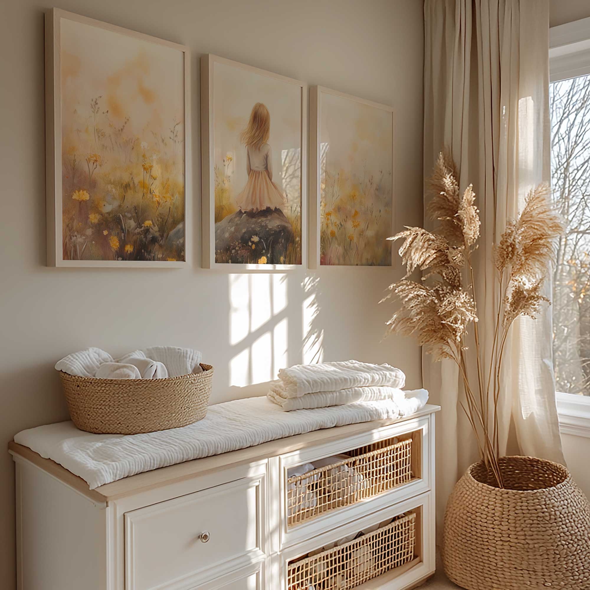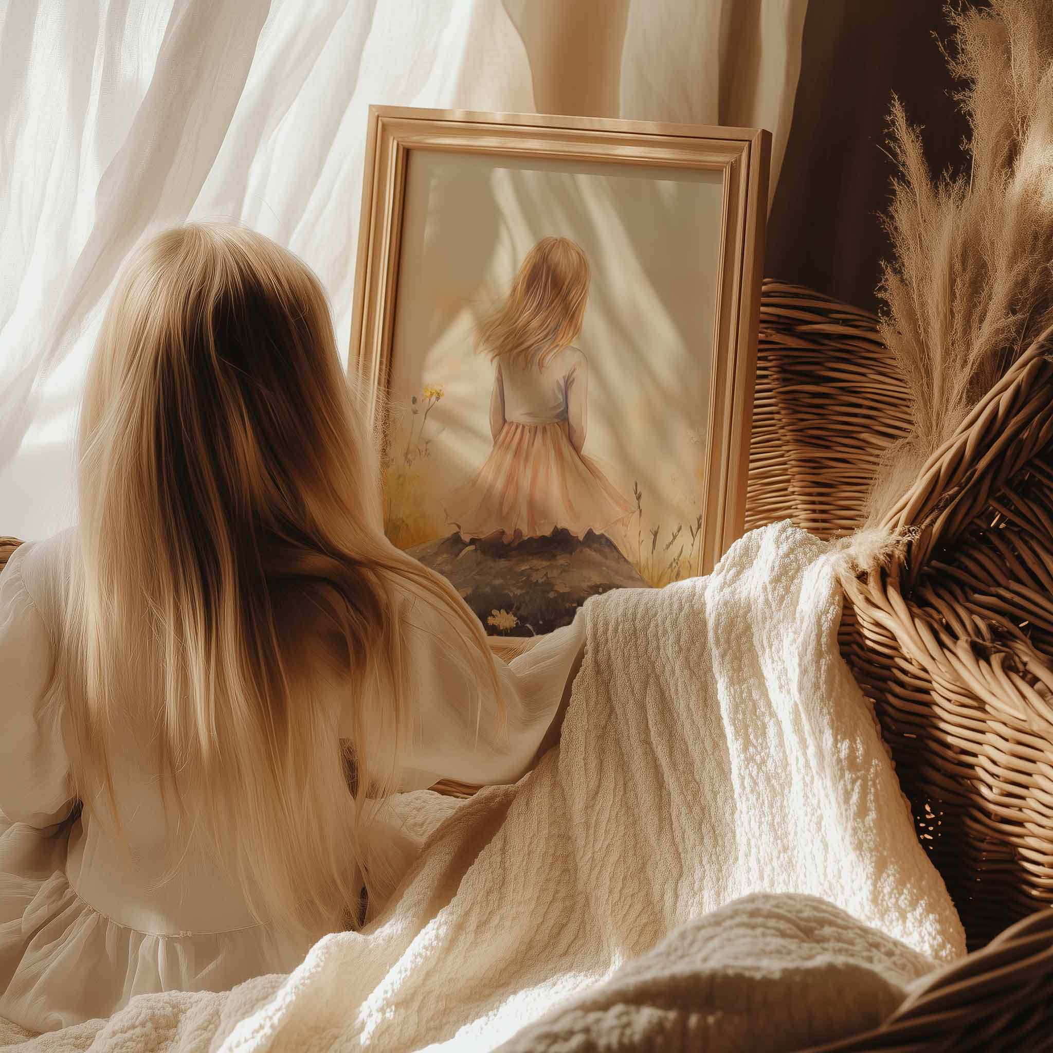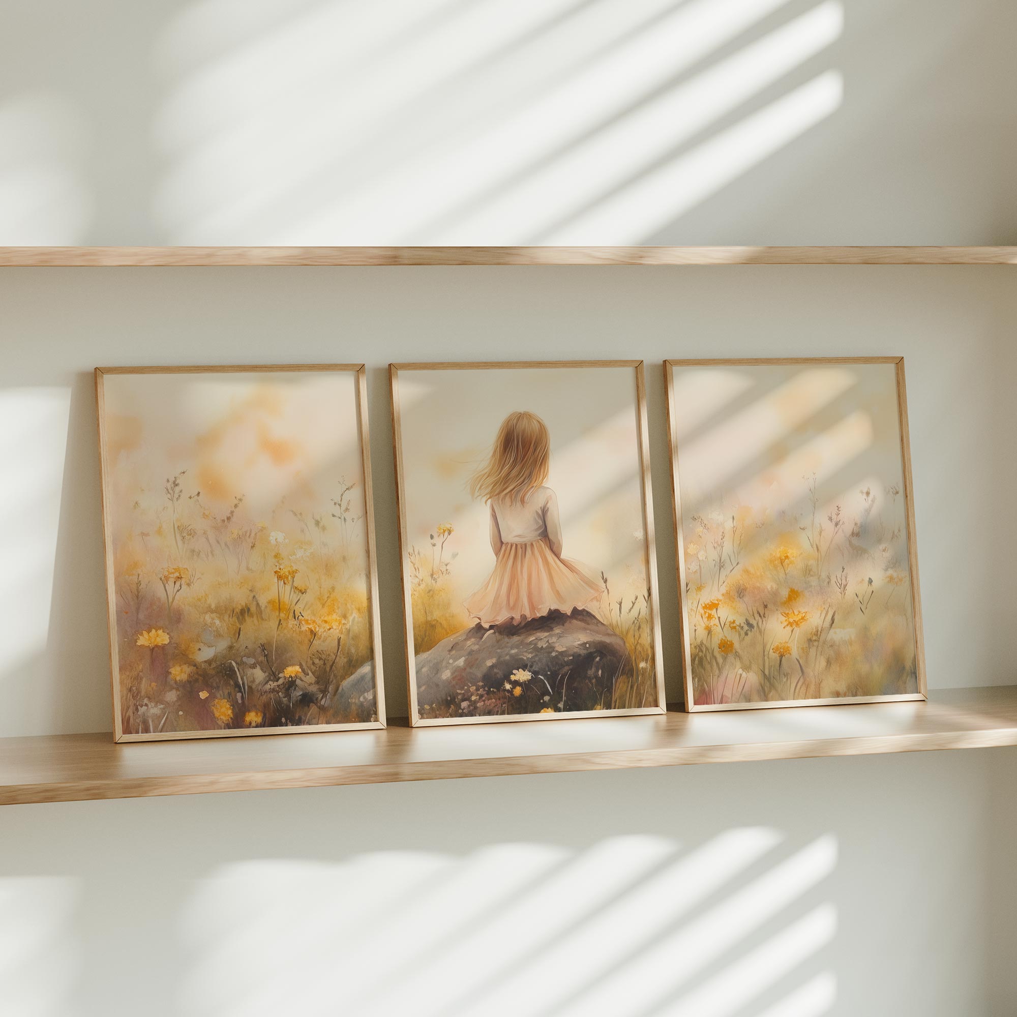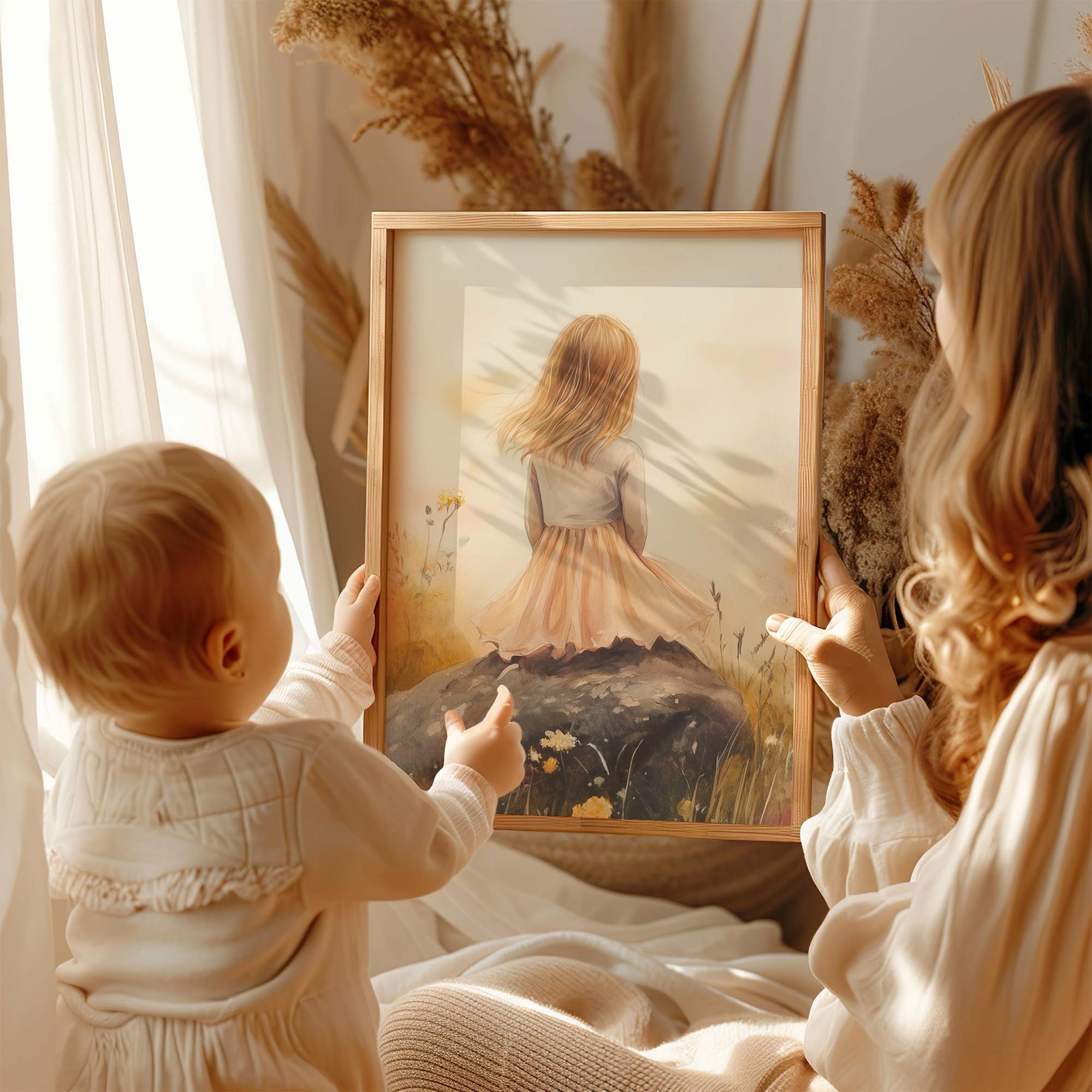 Terug naar collectie Posters Zonnig Meisje in Bloemenveld – Vrolijke Kindertijd