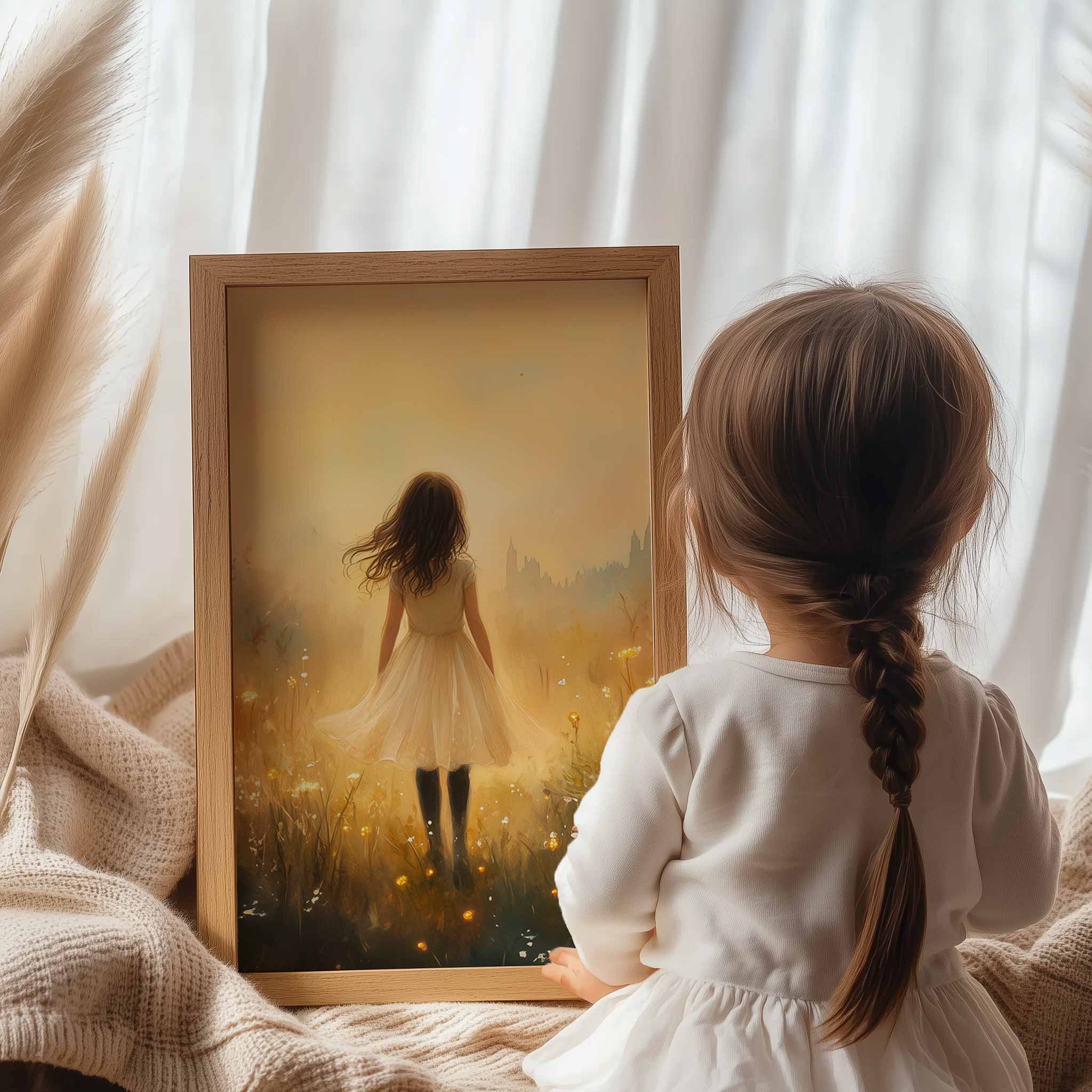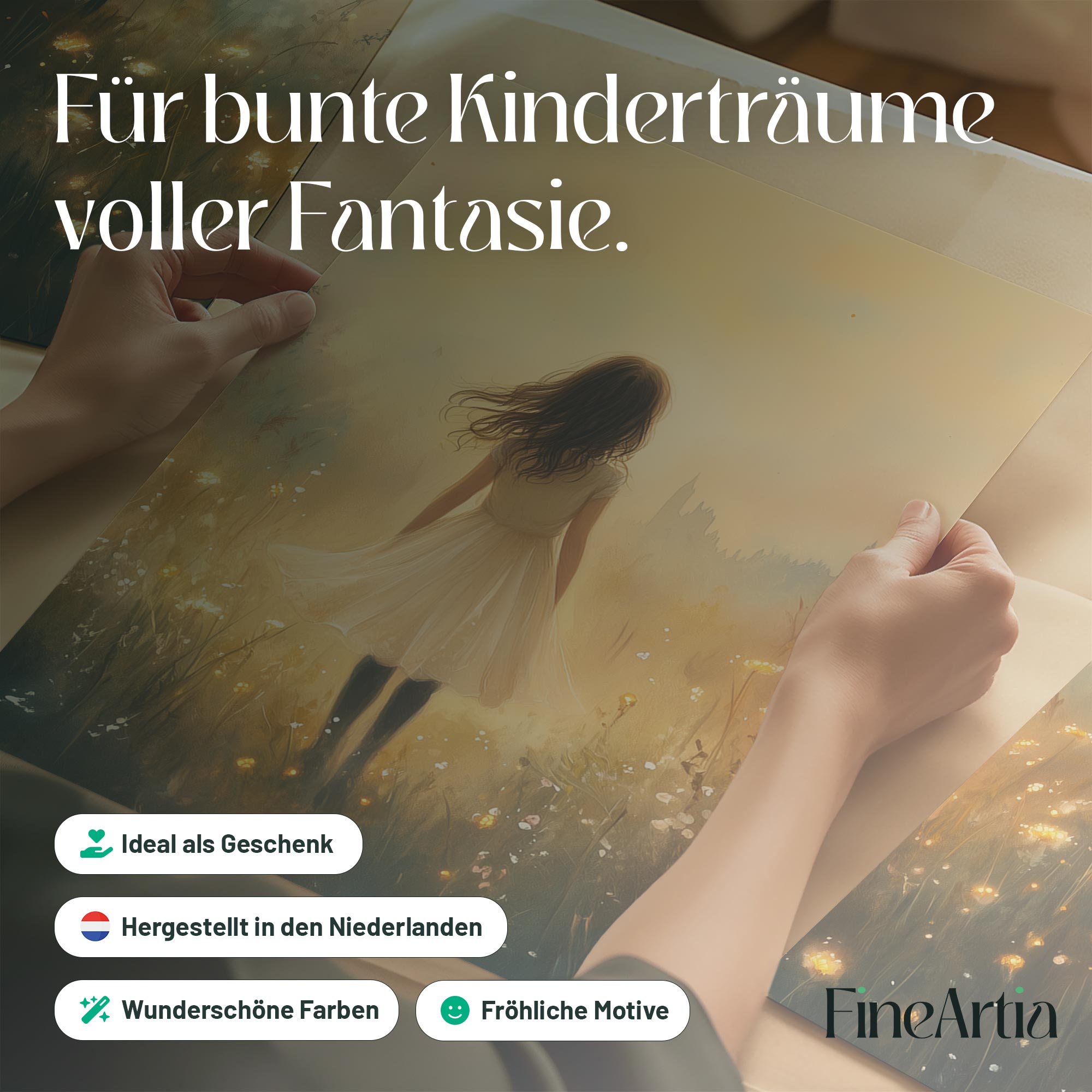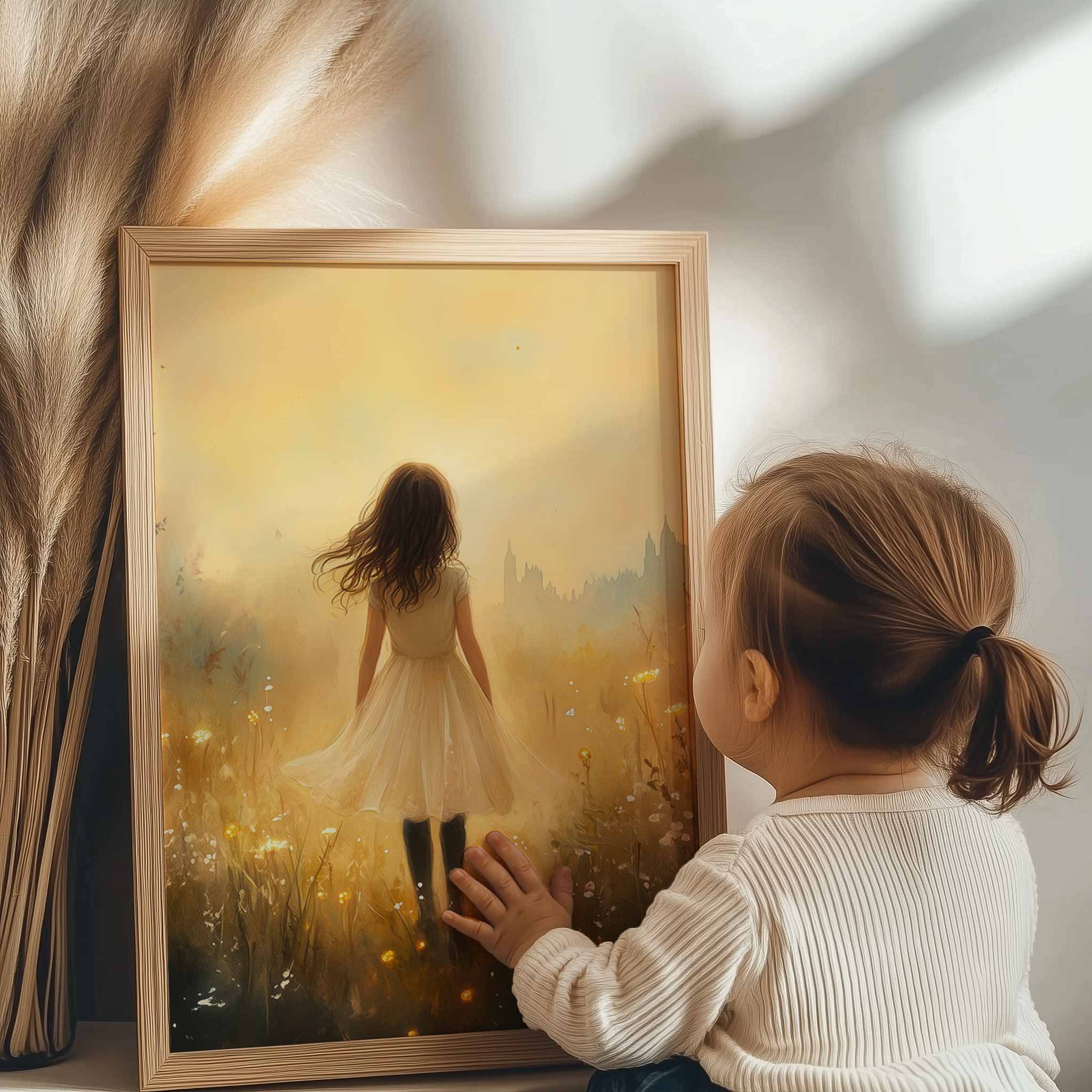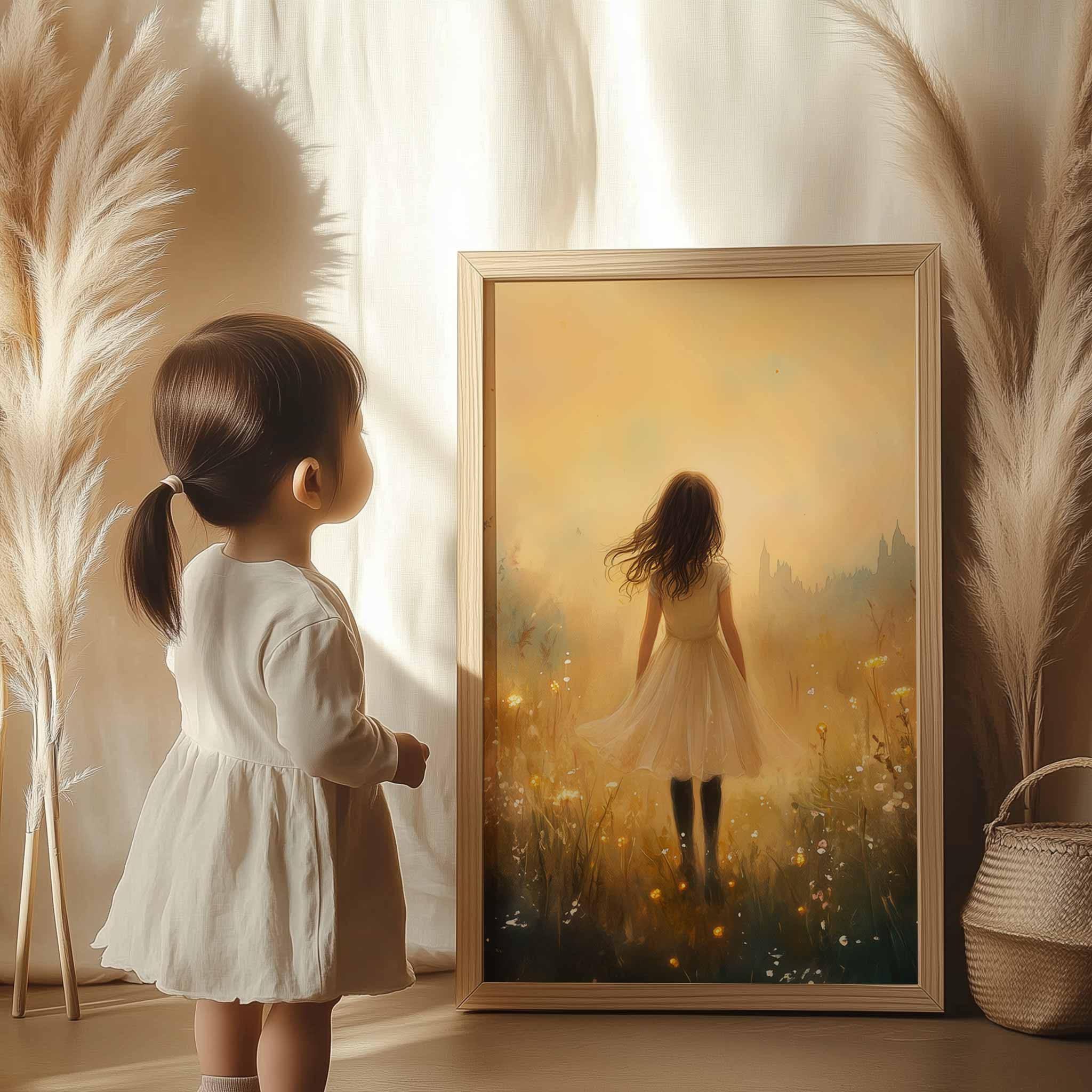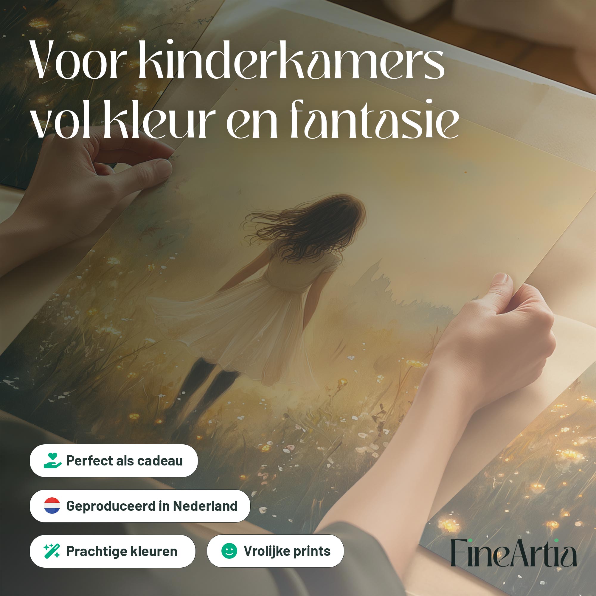 Zonnig Meisje in Bloemenveld – Vrolijke Muurdecoratie