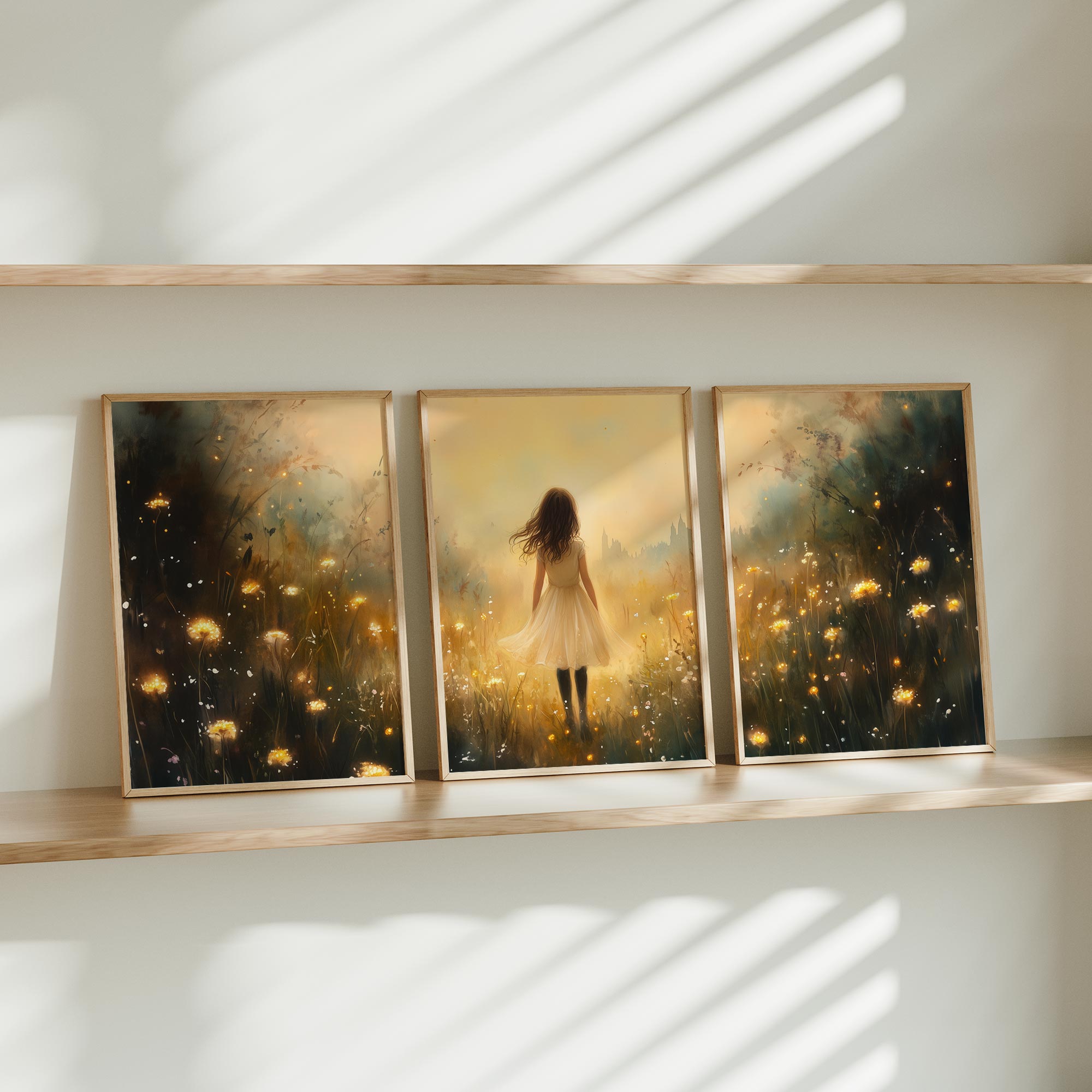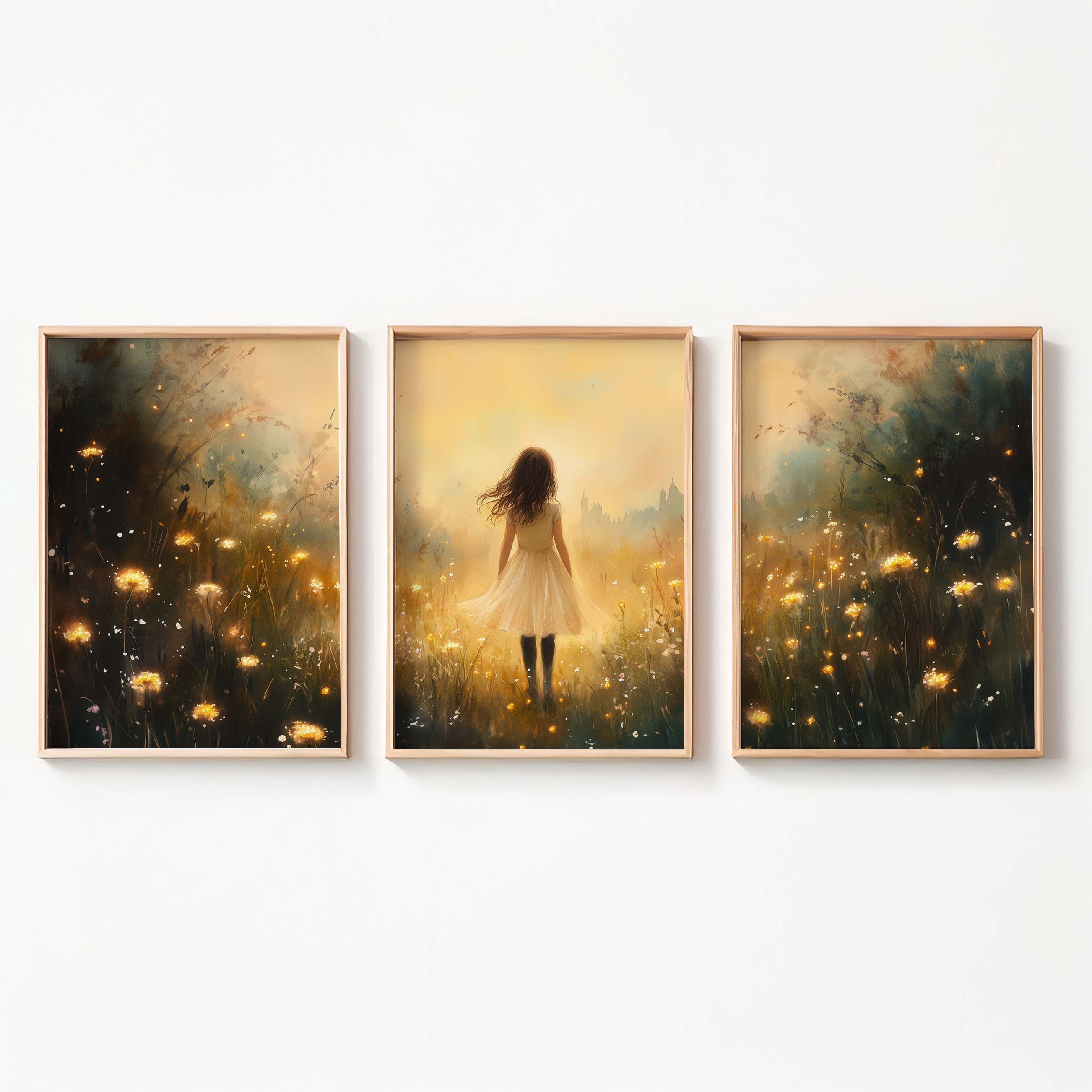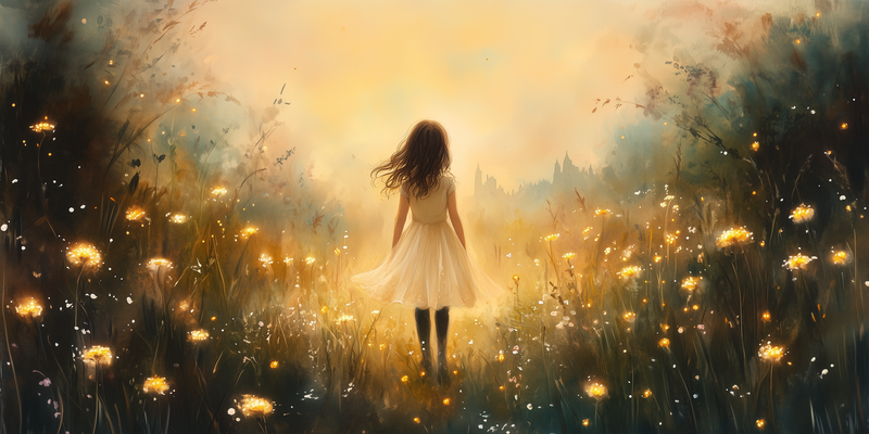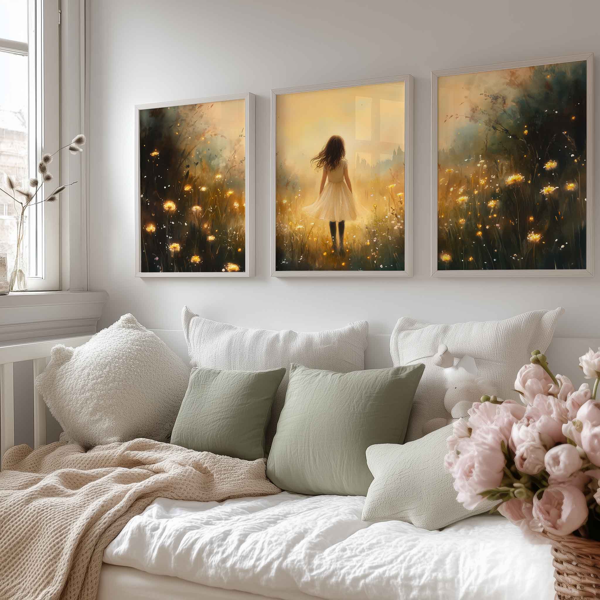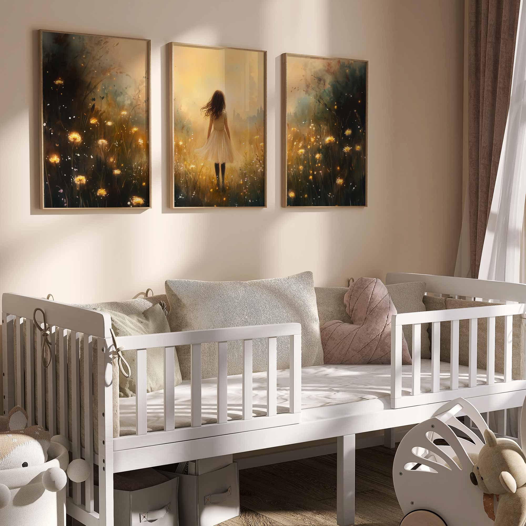 Zonnig Meisje in Bloemenveld – Vrolijke Muurdecoratie