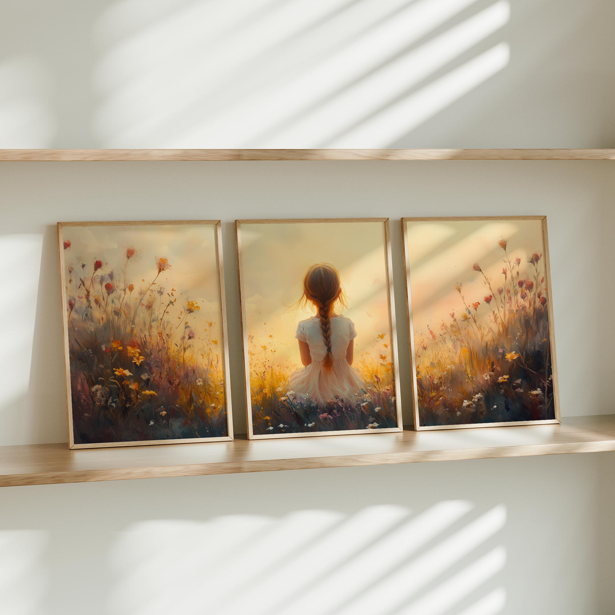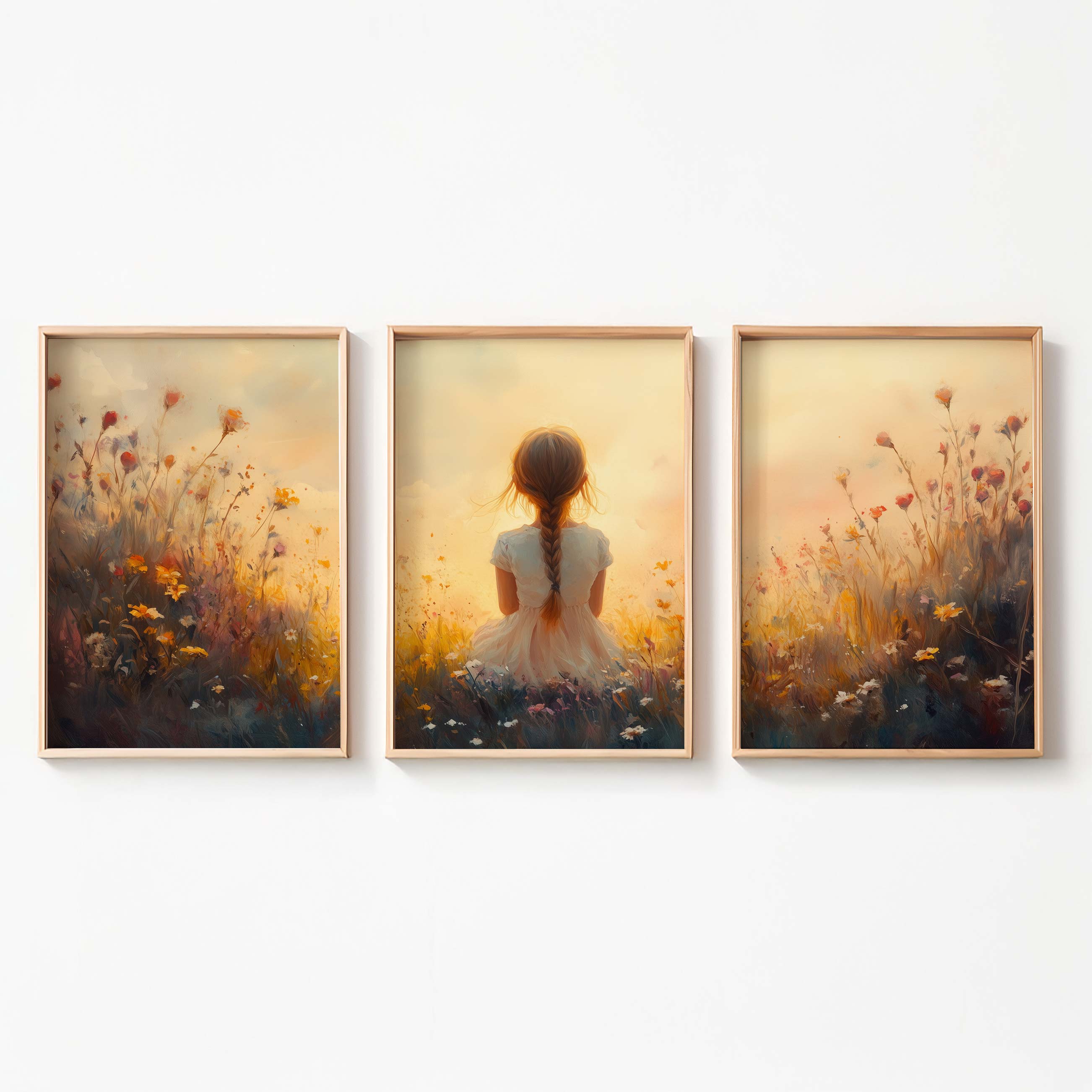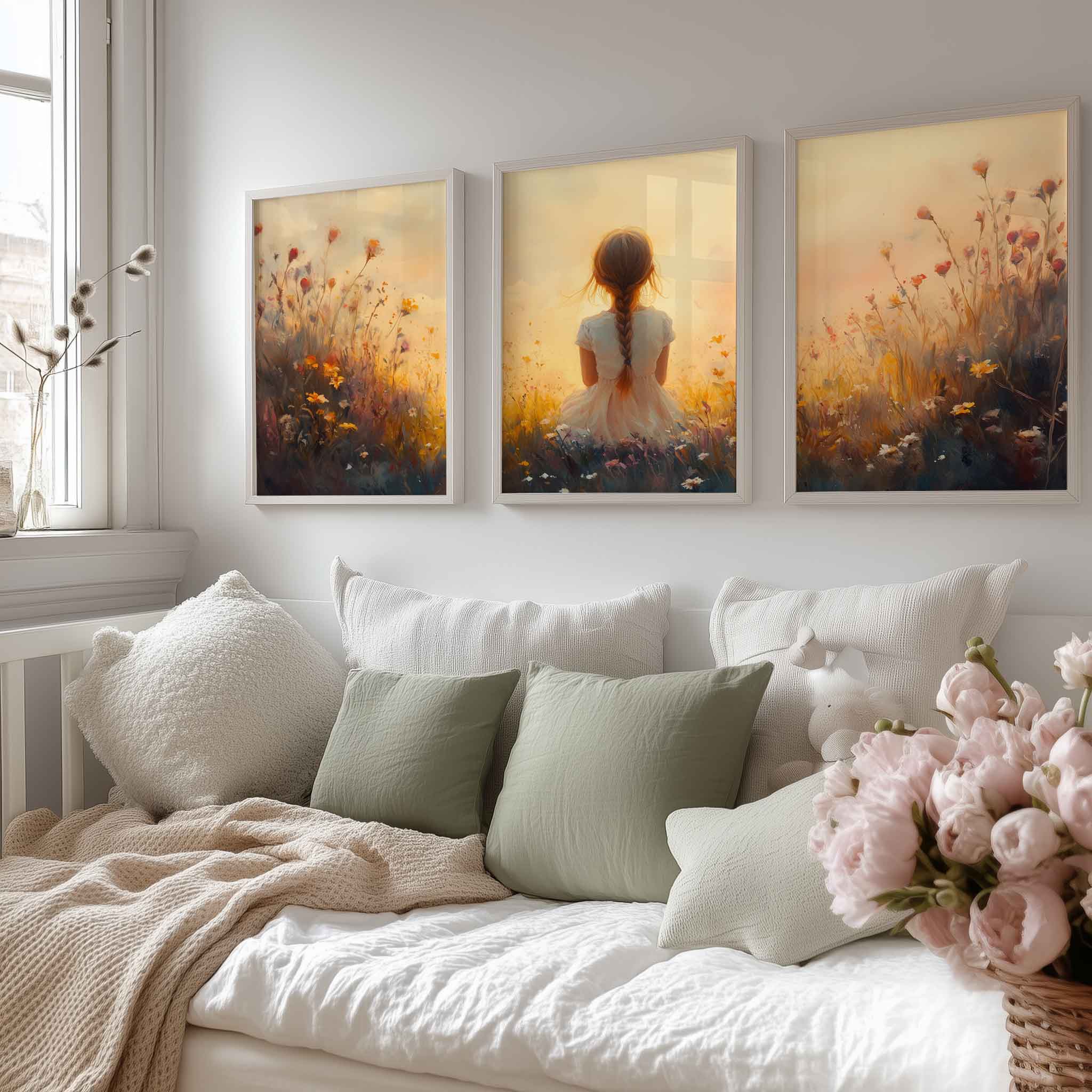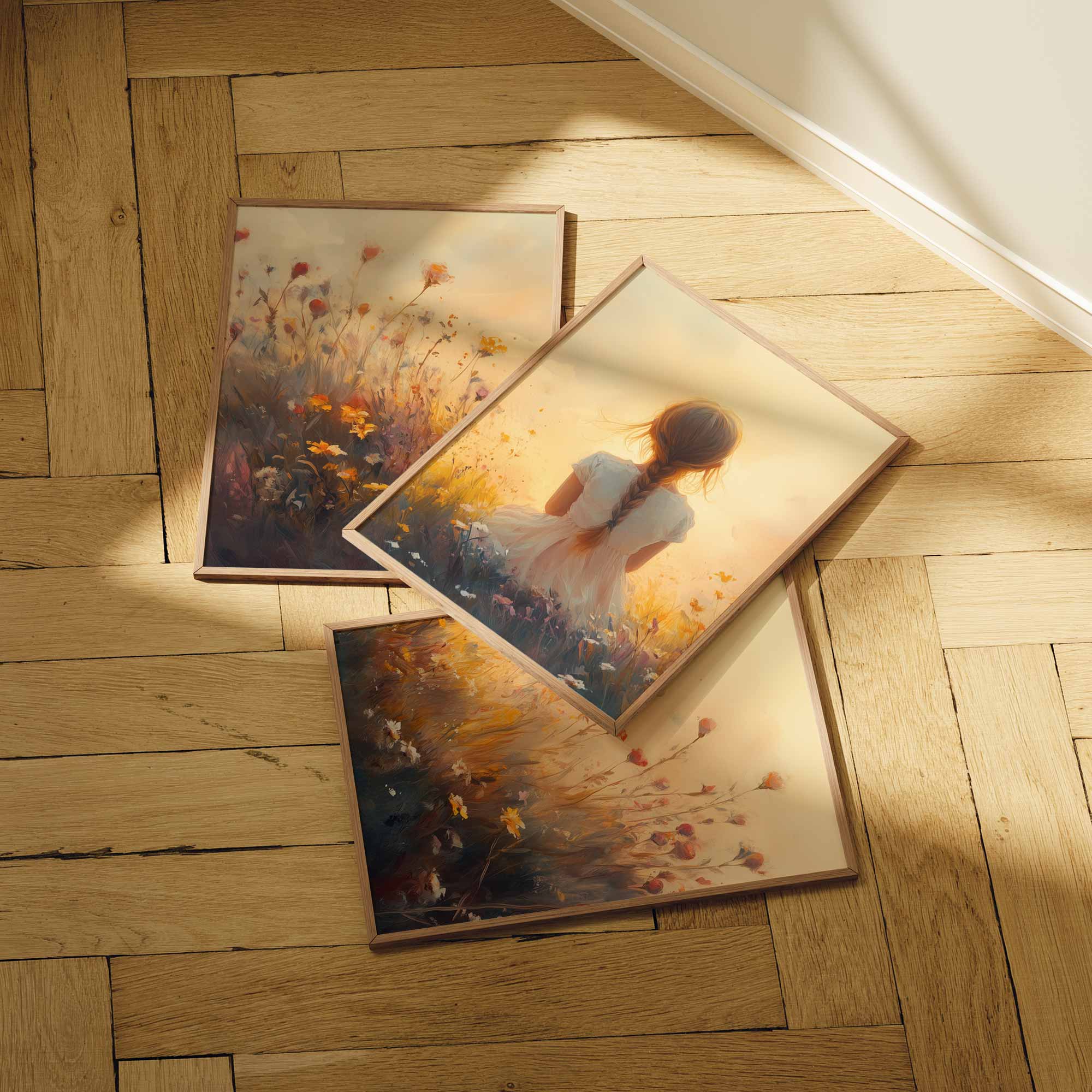 Terug naar collectie Posters Zonnig Meisje in Bloemenveld – Vrolijke Witte Jurk