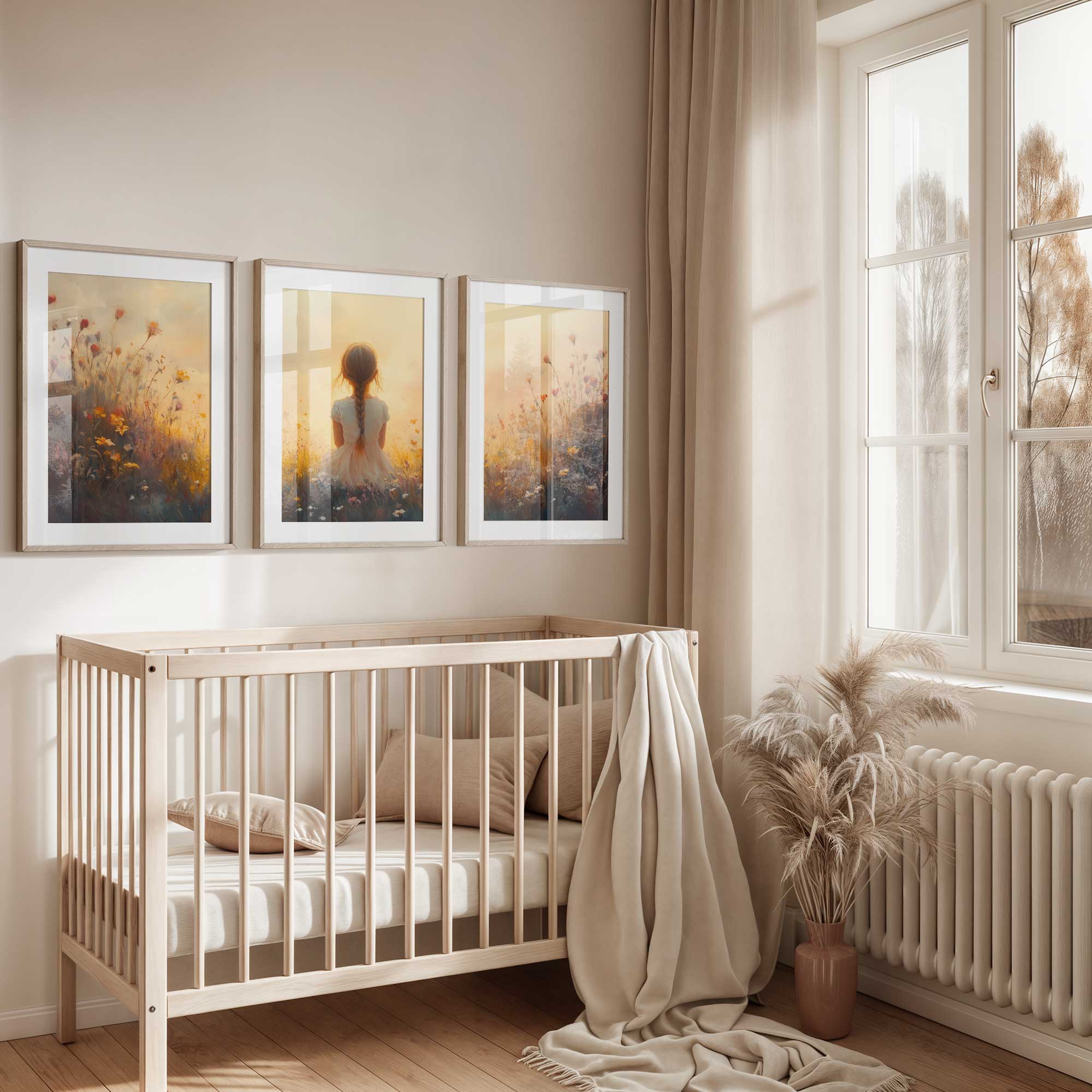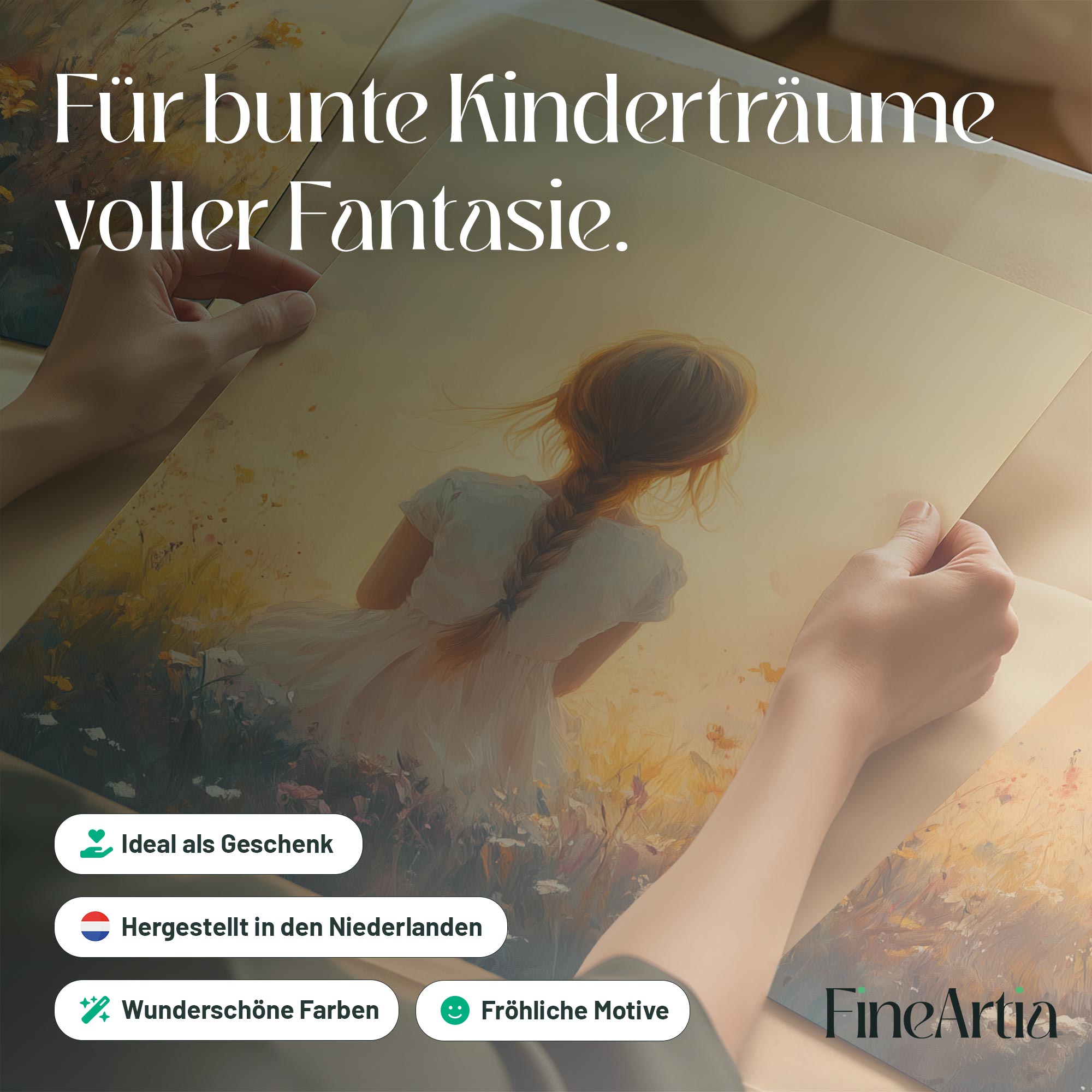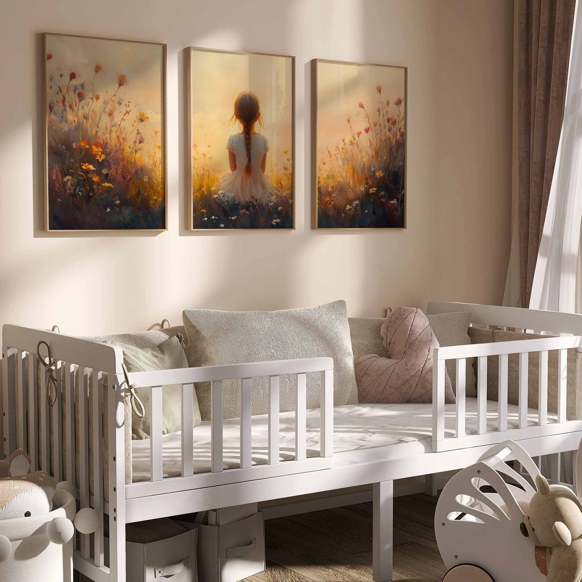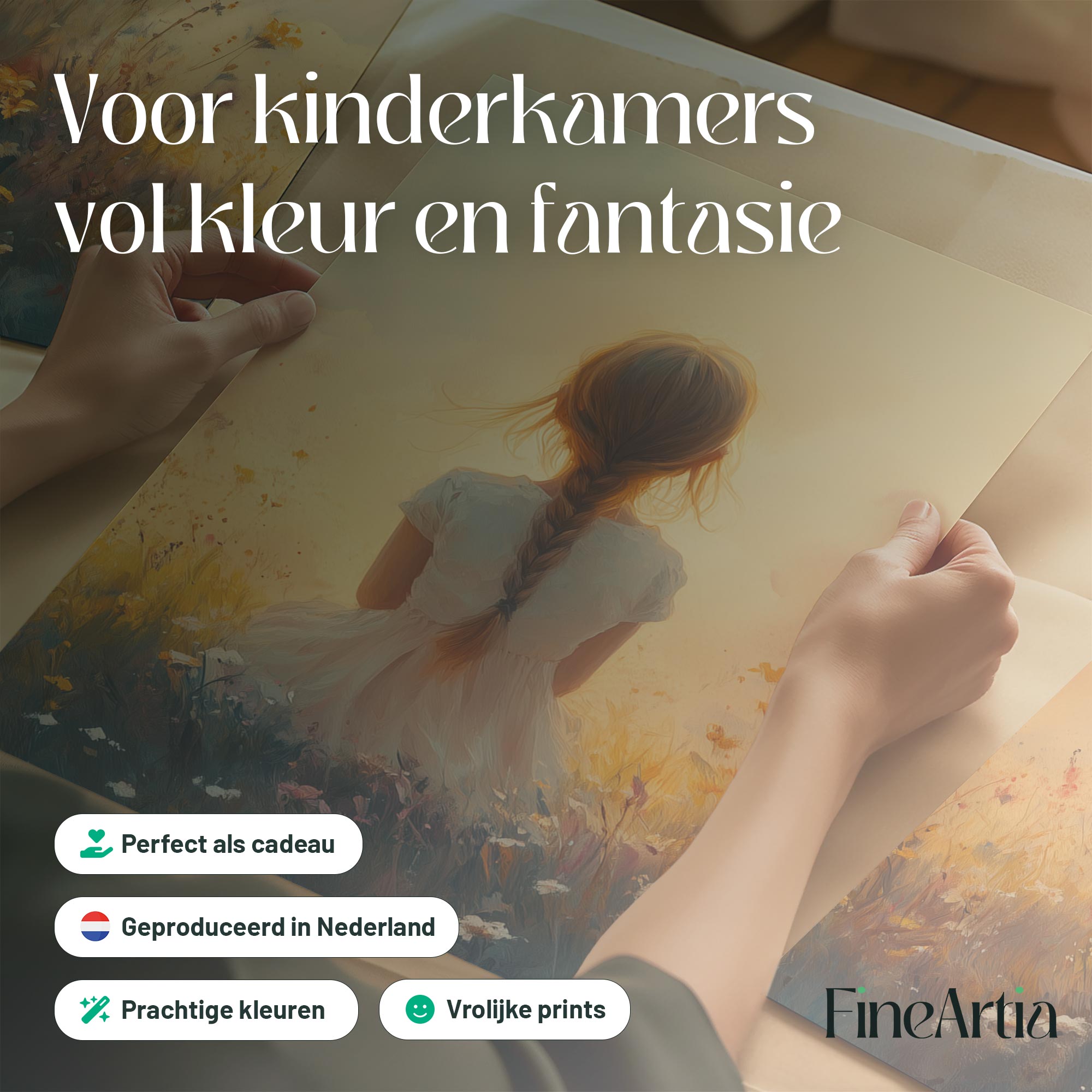Terug naar collectie Posters Zonnig Meisje in Bloemenveld – Vrolijke Witte Jurk