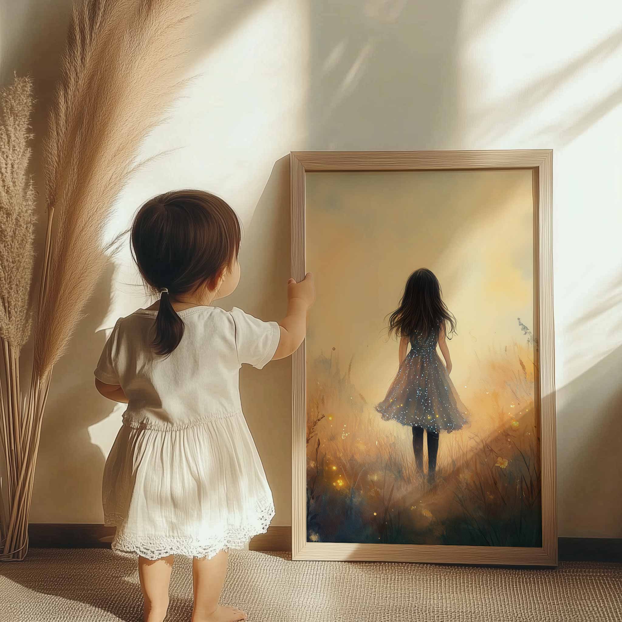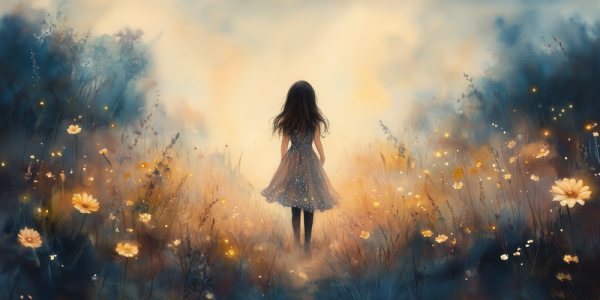 Terug naar collectie Posters Zonnig Meisje in Dromerig Bloemenveld