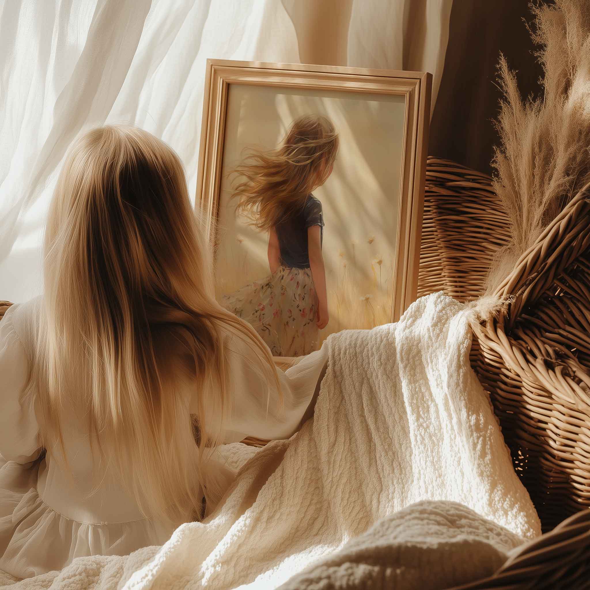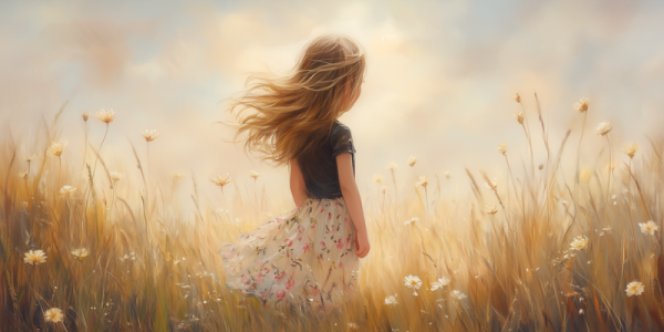 Terug naar collectie Posters Zonnig Meisje in Dromerig Grasveld