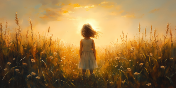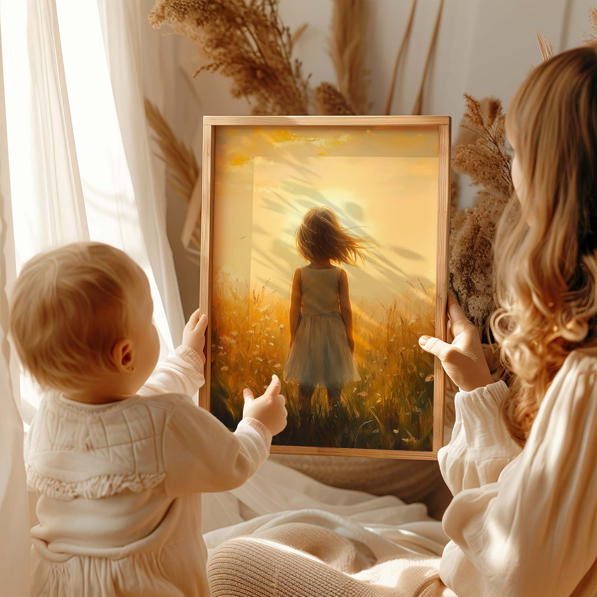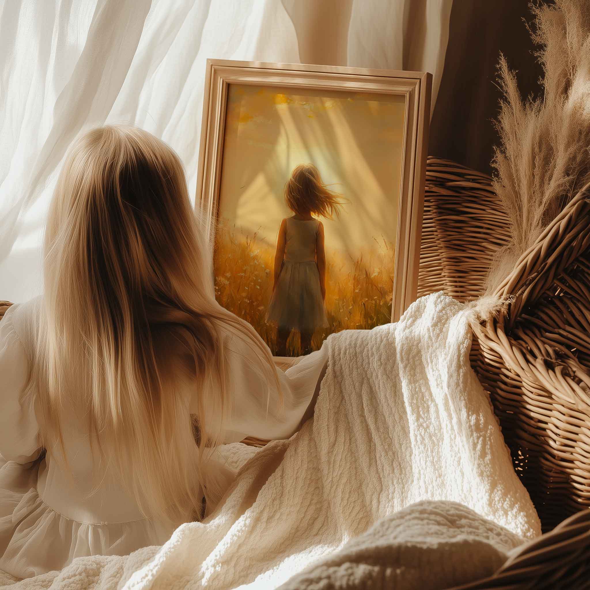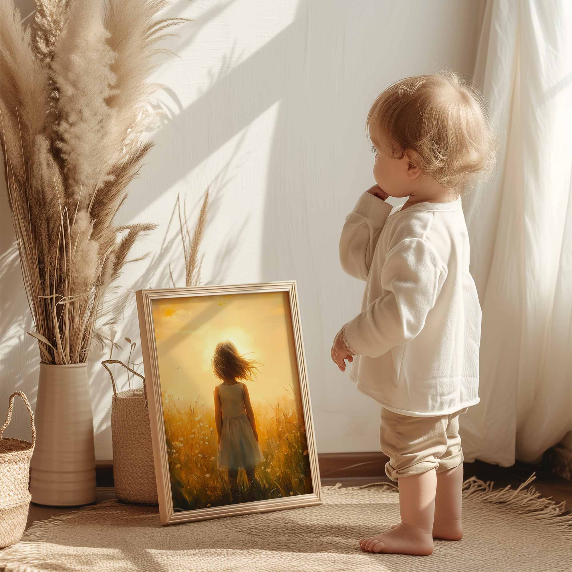 Terug naar collectie Posters Zonnig Meisje in Gouden Gras – Speelse Kindertijd