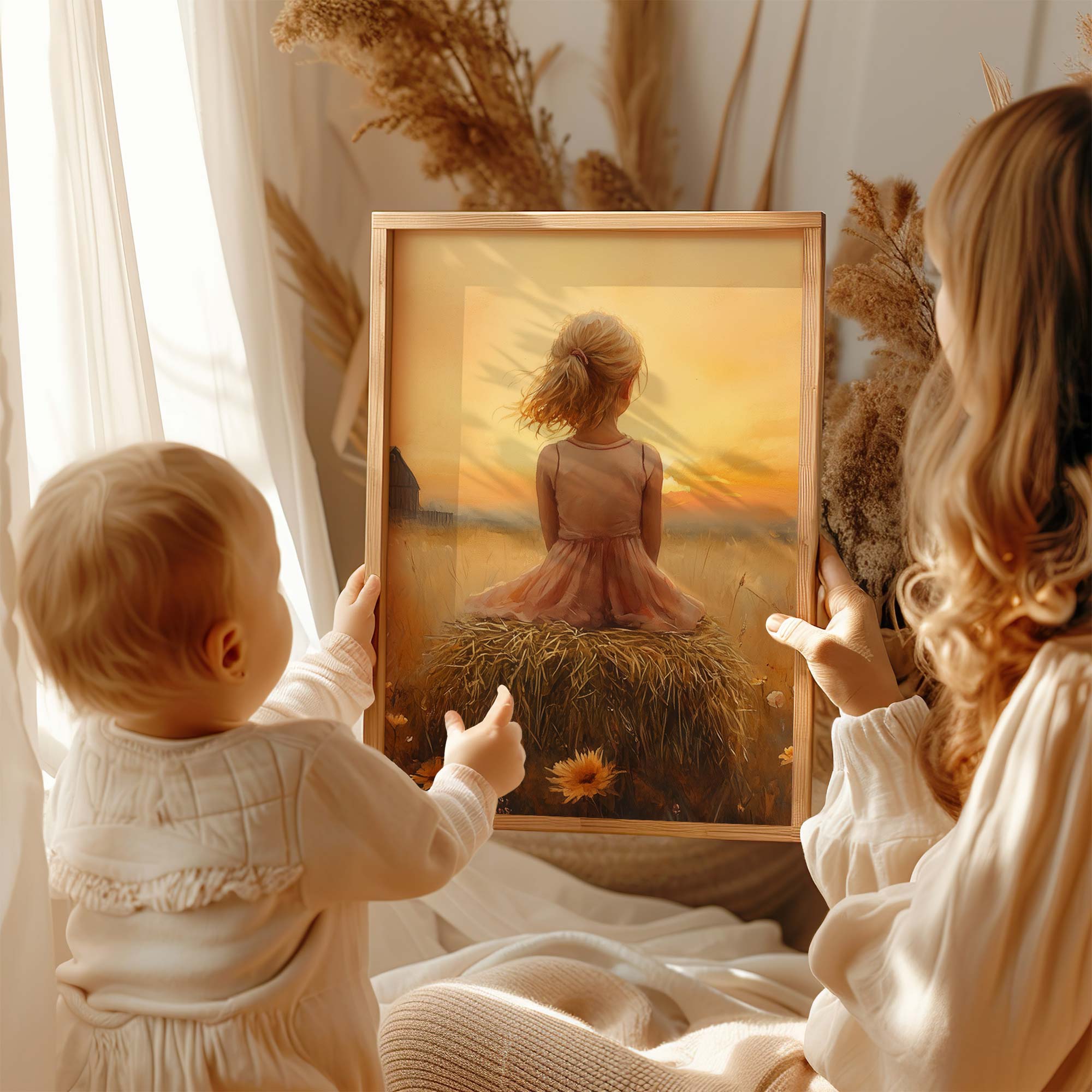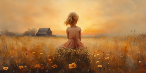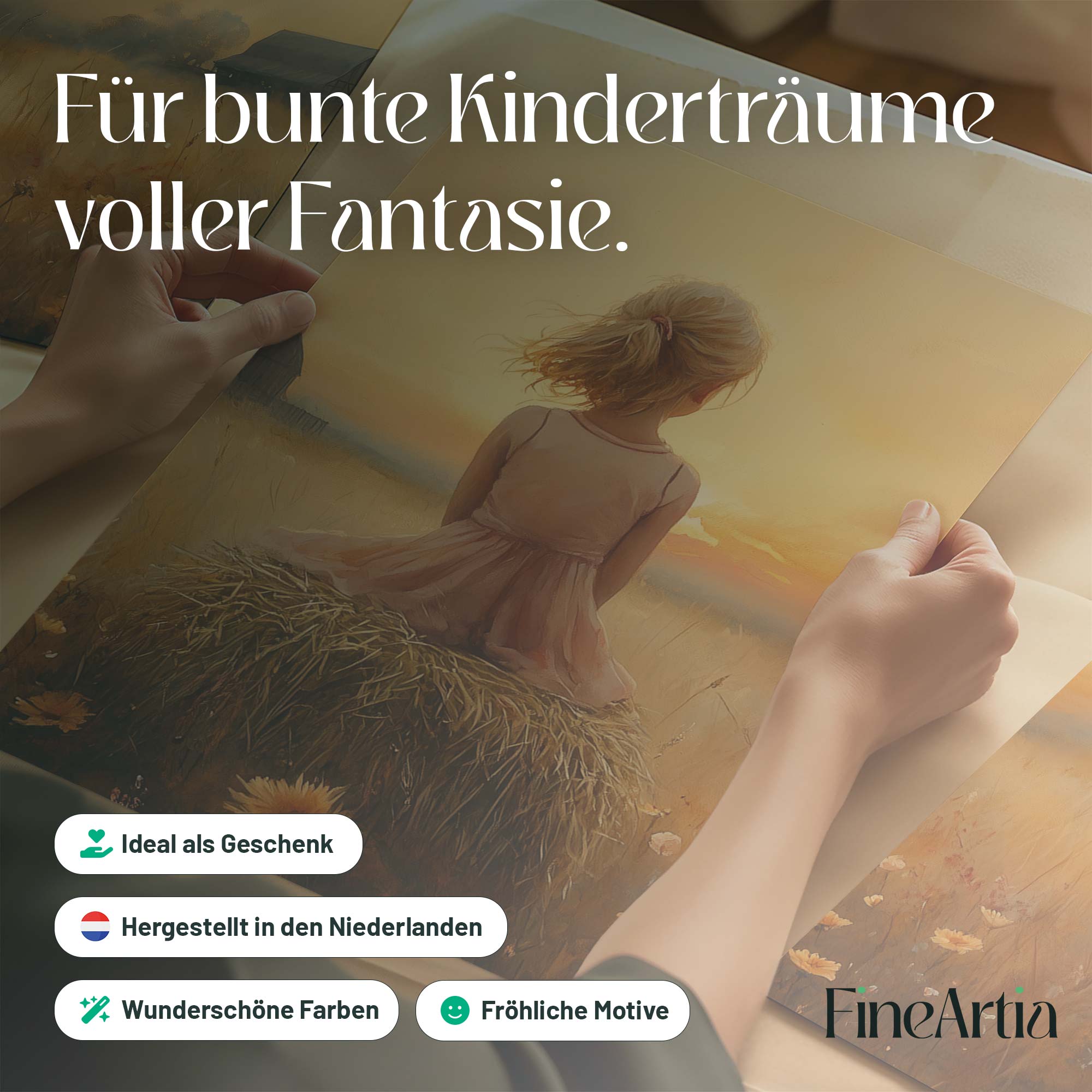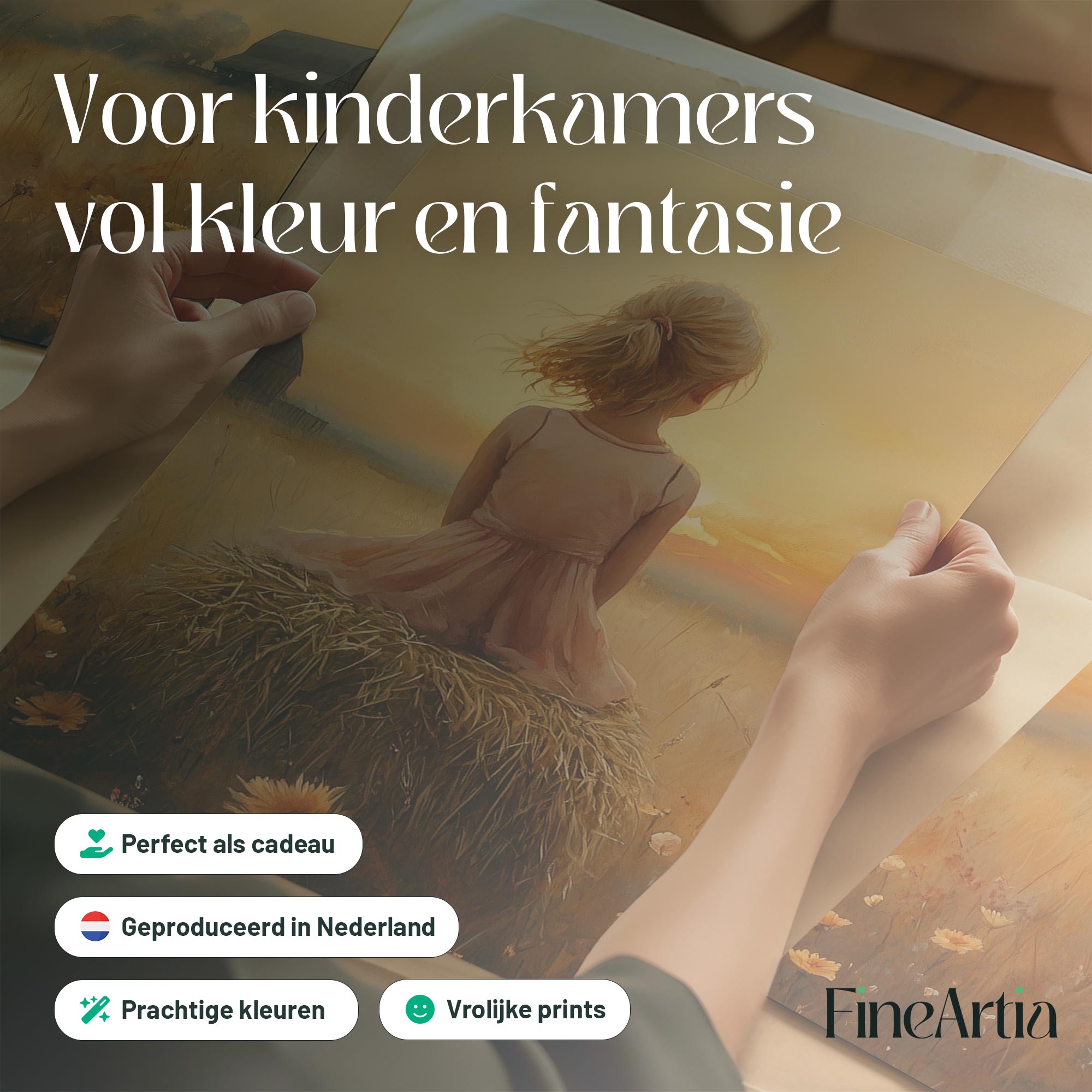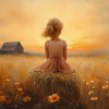 Zonnig Meisje op Hooibaal in Bloemenveld