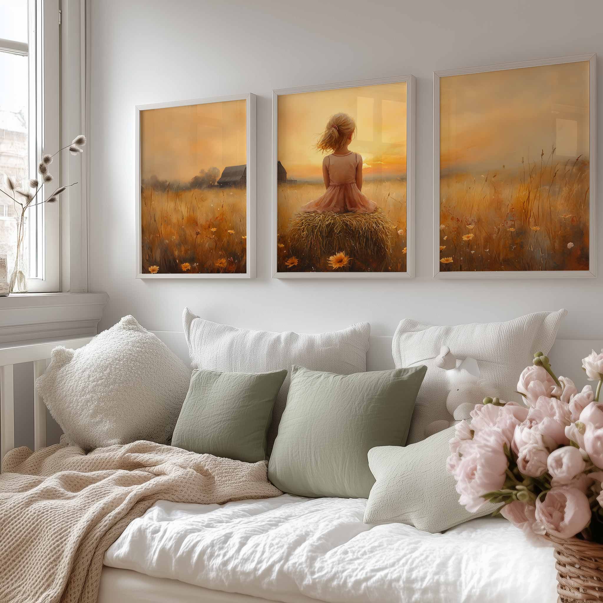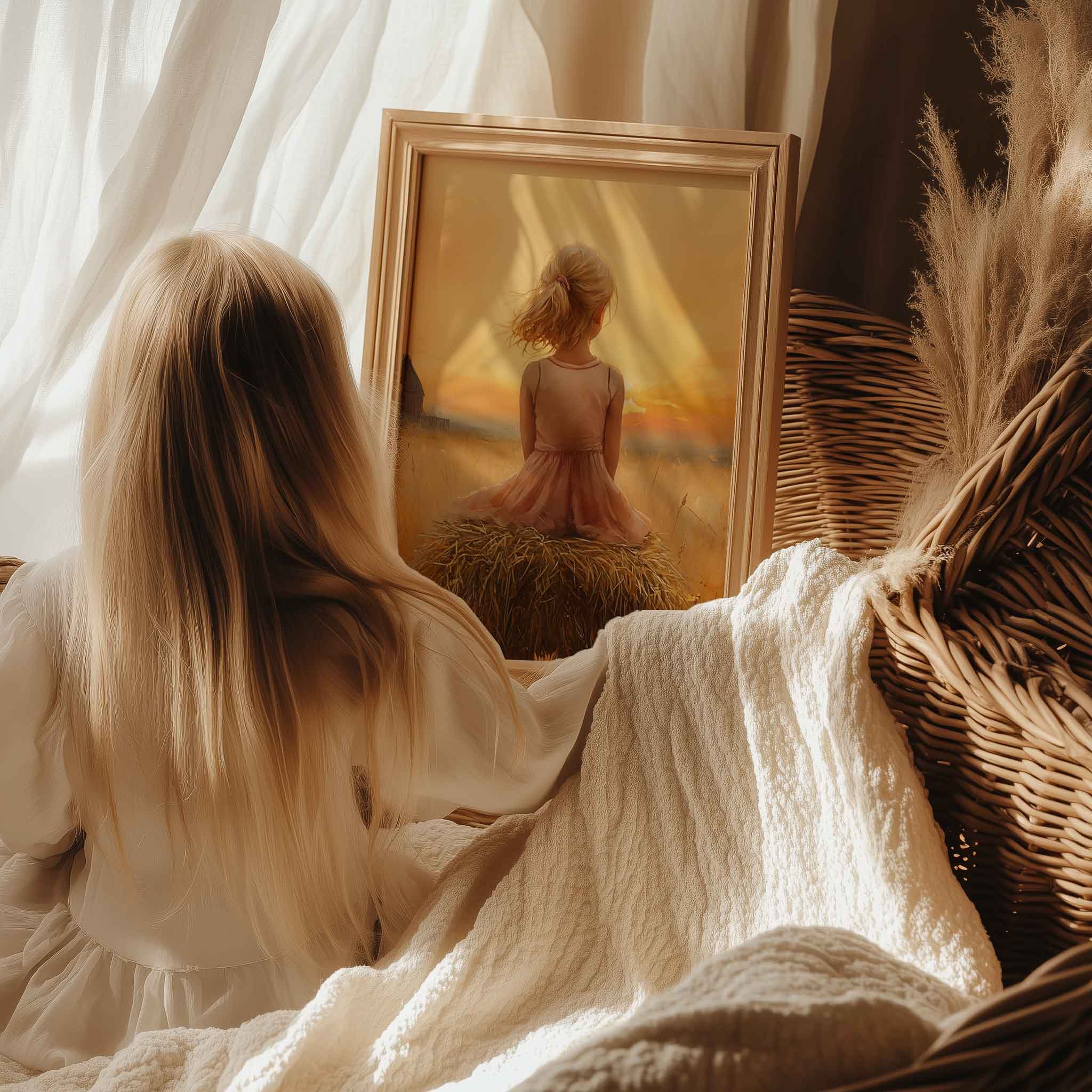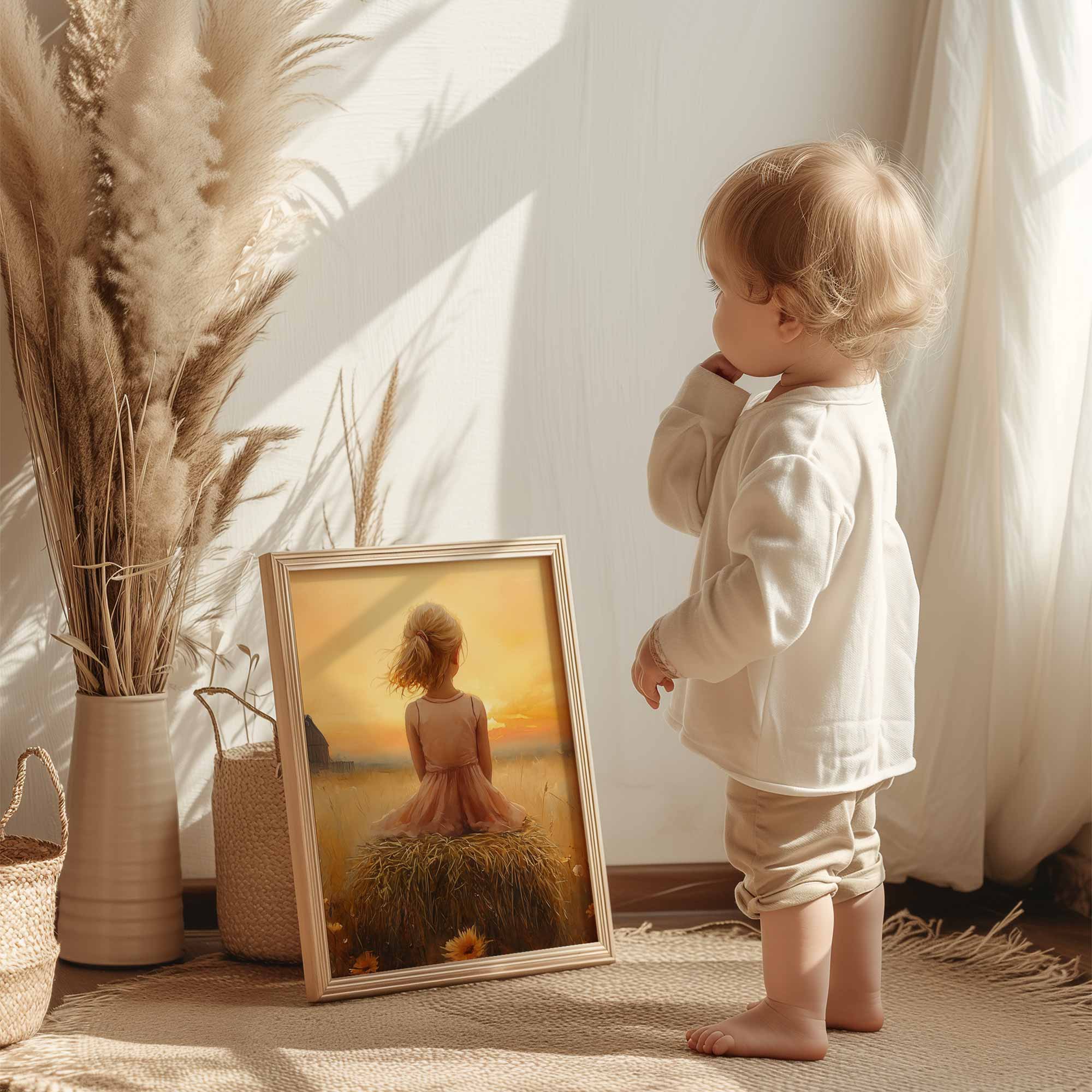 Zonnig Meisje op Hooibaal in Bloemenveld