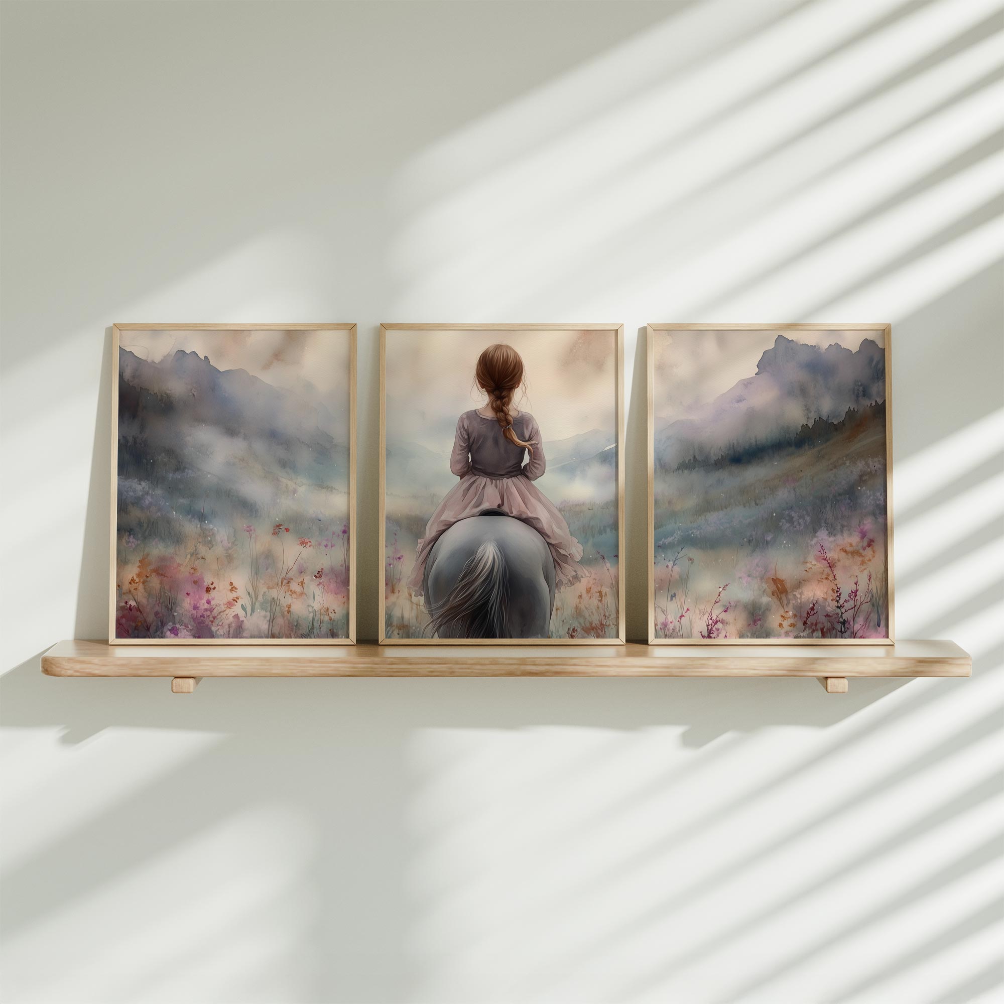 Zonnig Meisje op Wit Paard in Bloemenveld