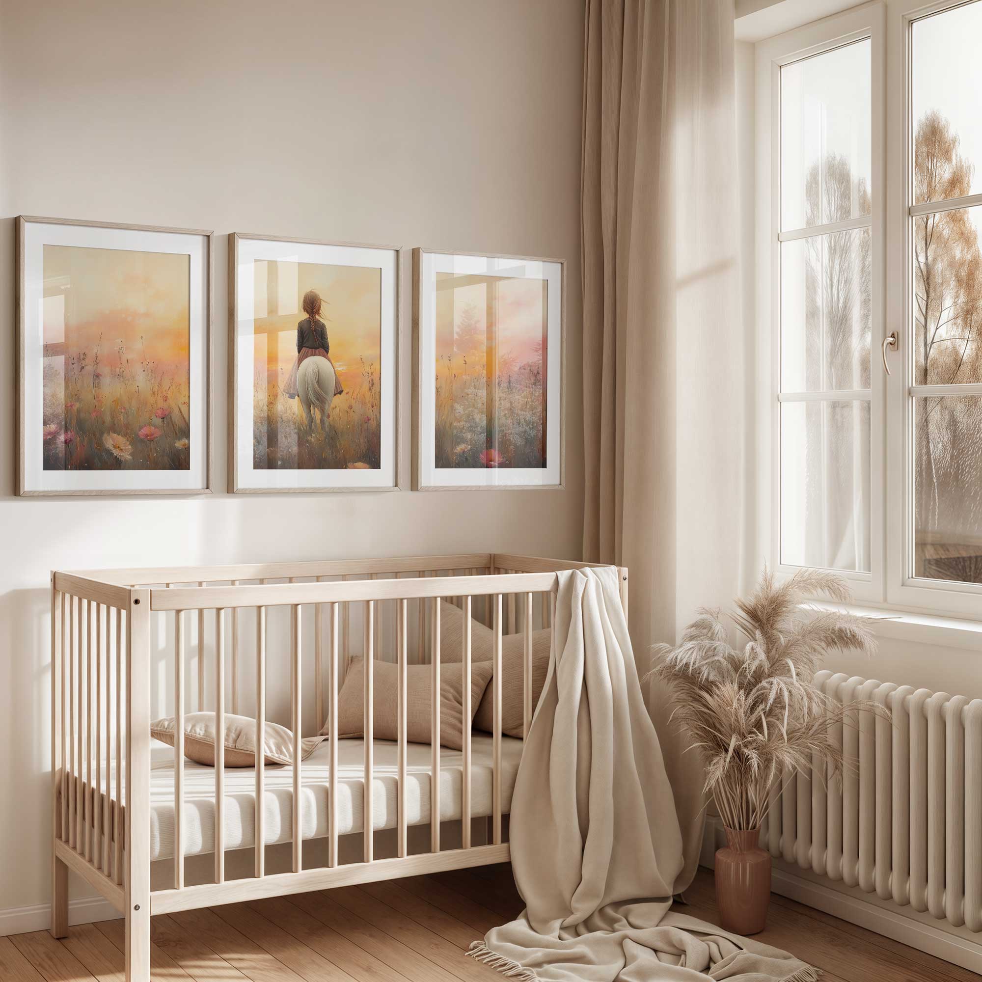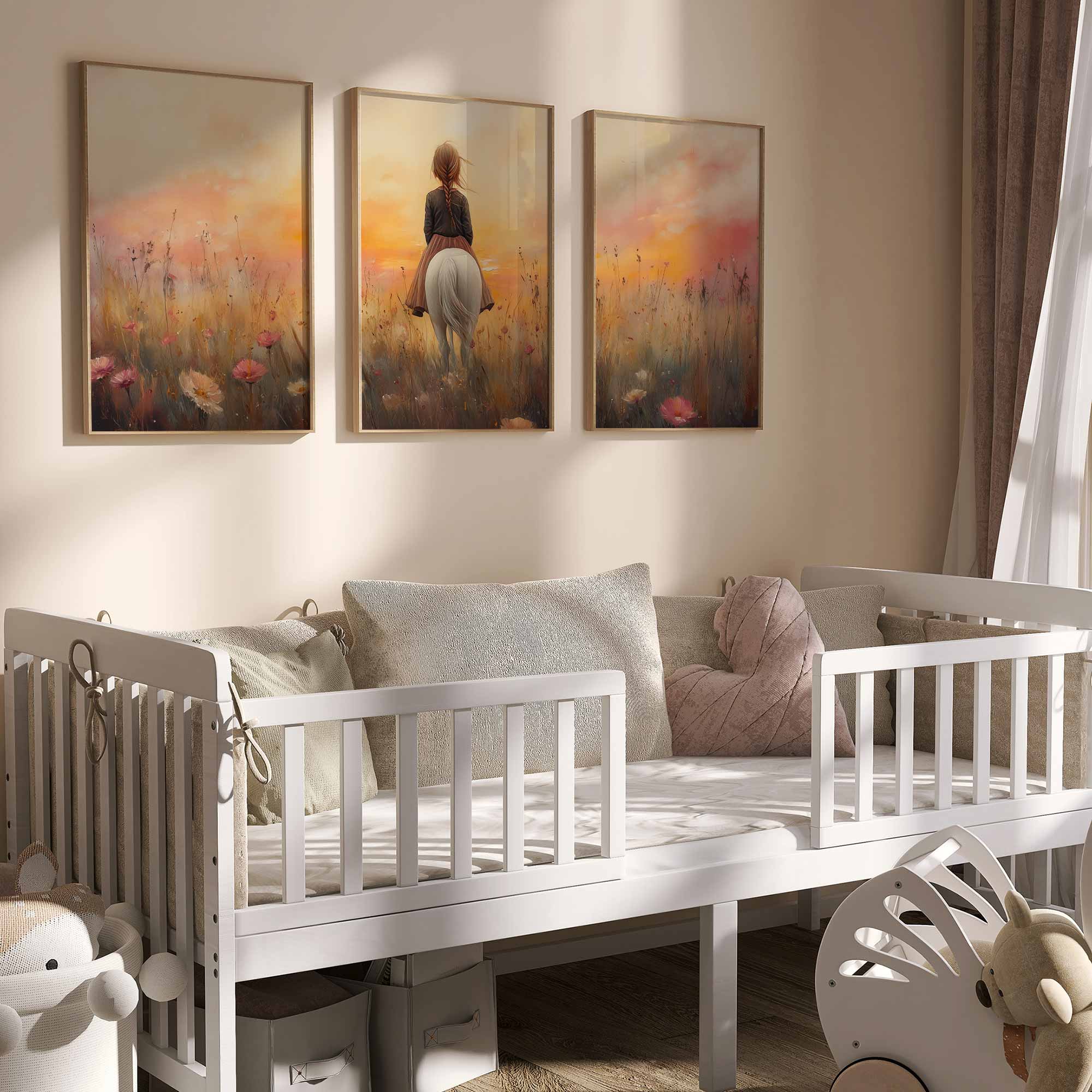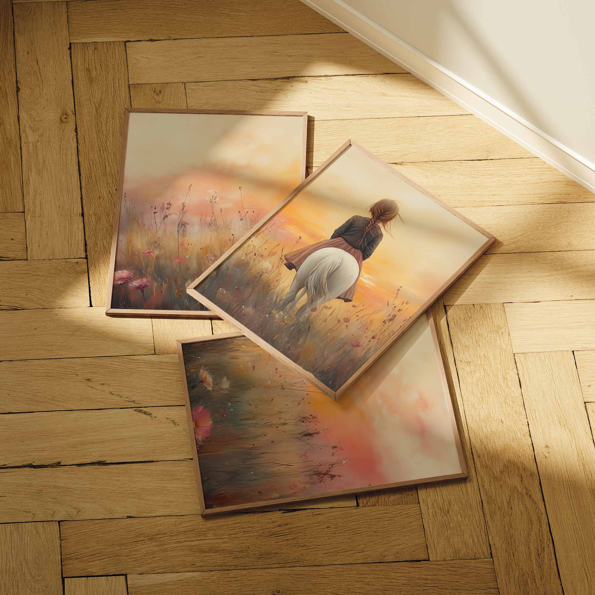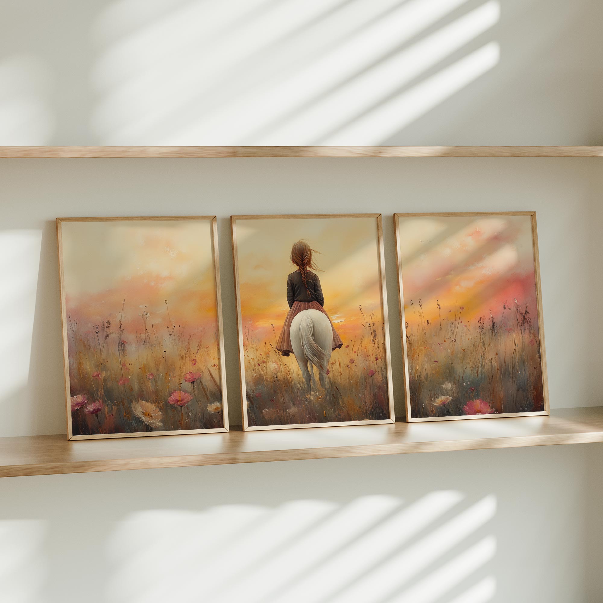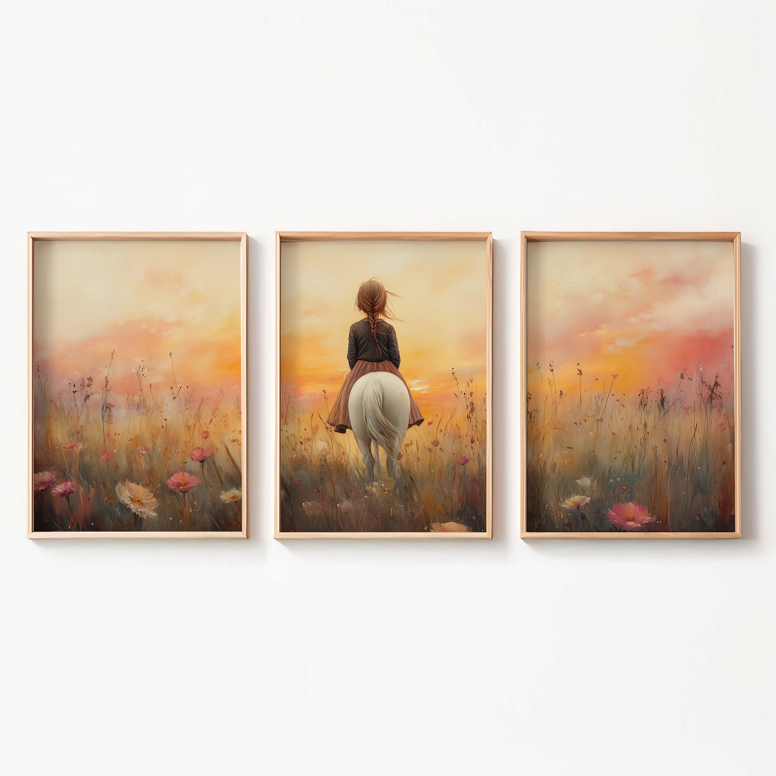 Zonnig Meisje op Witte Paard in Bloemenveld