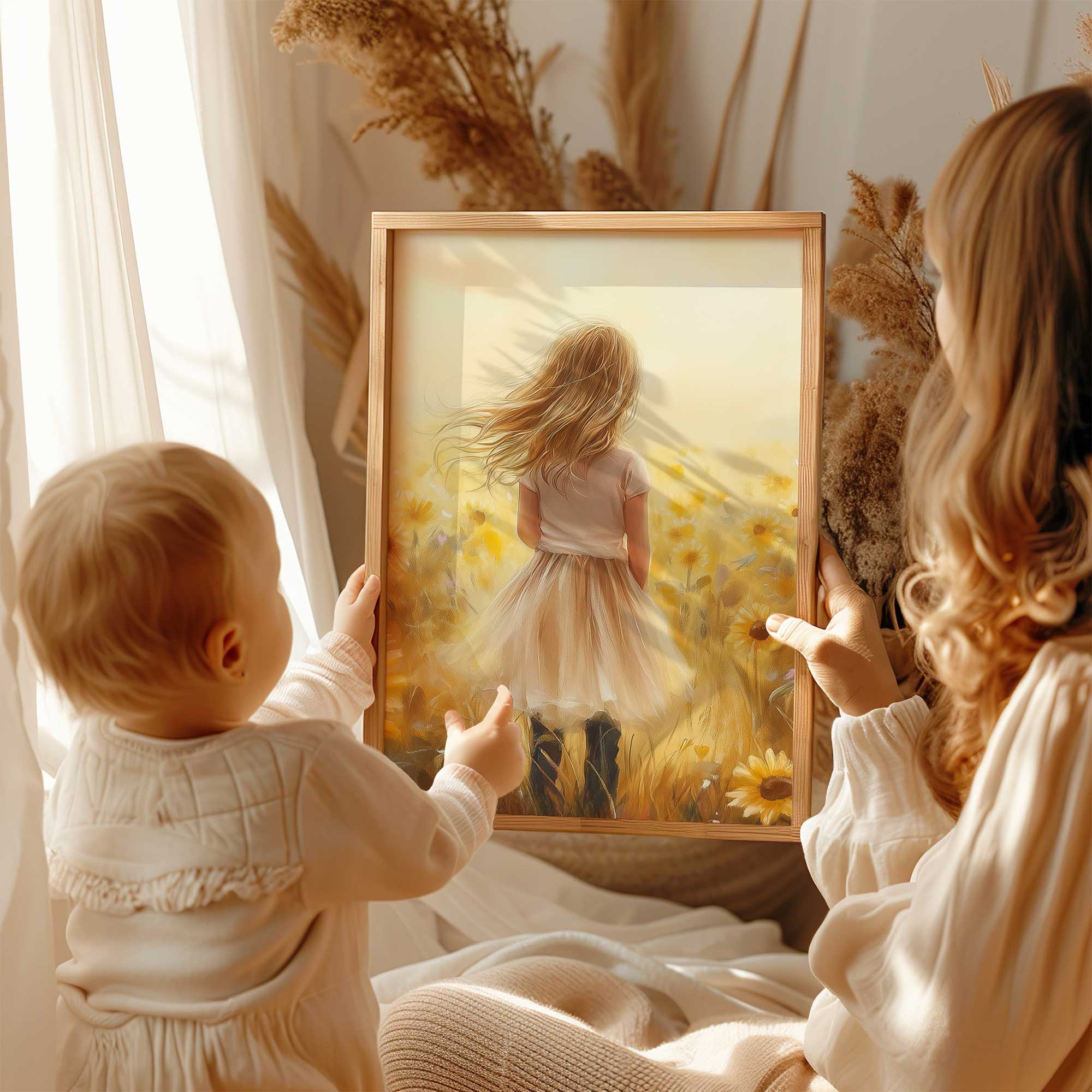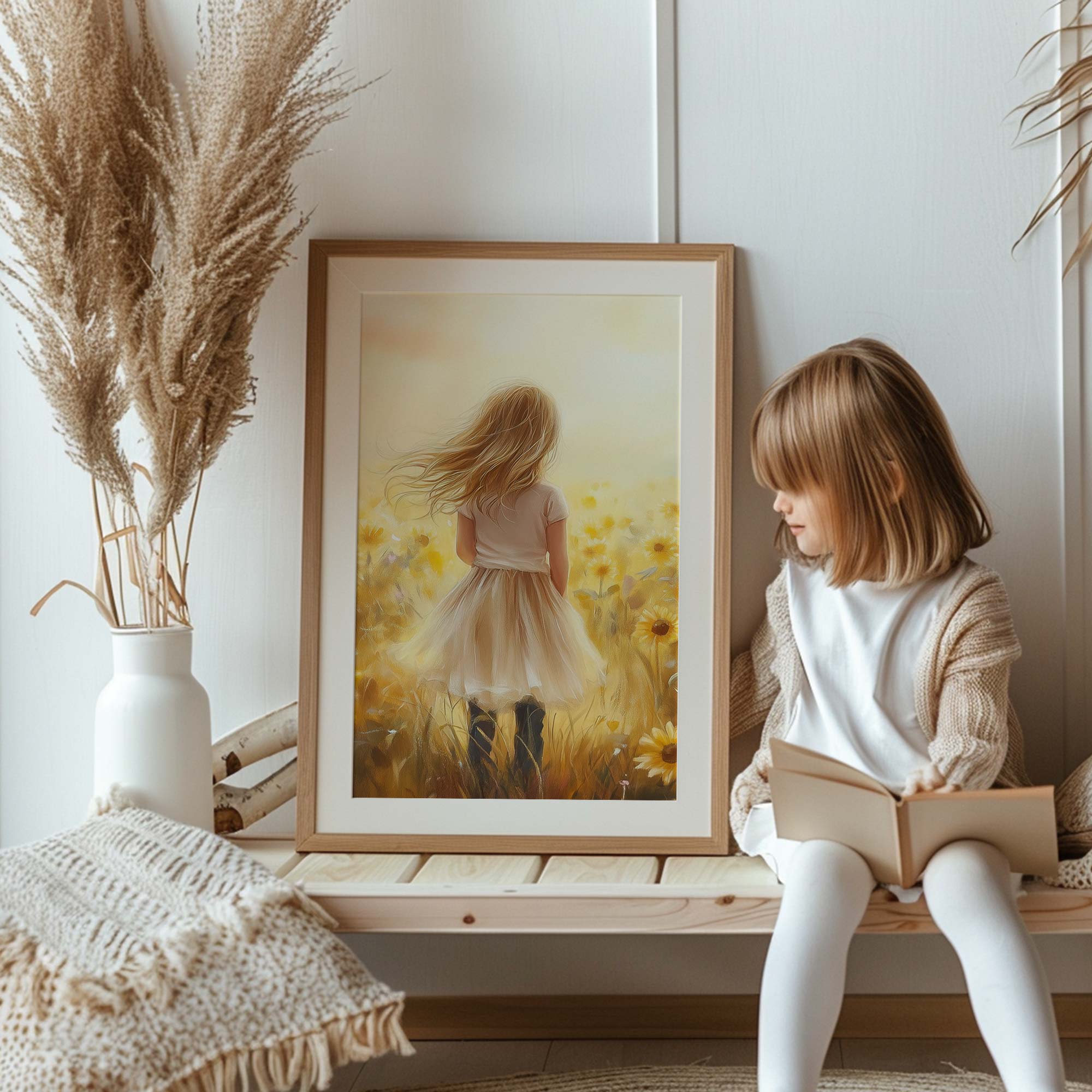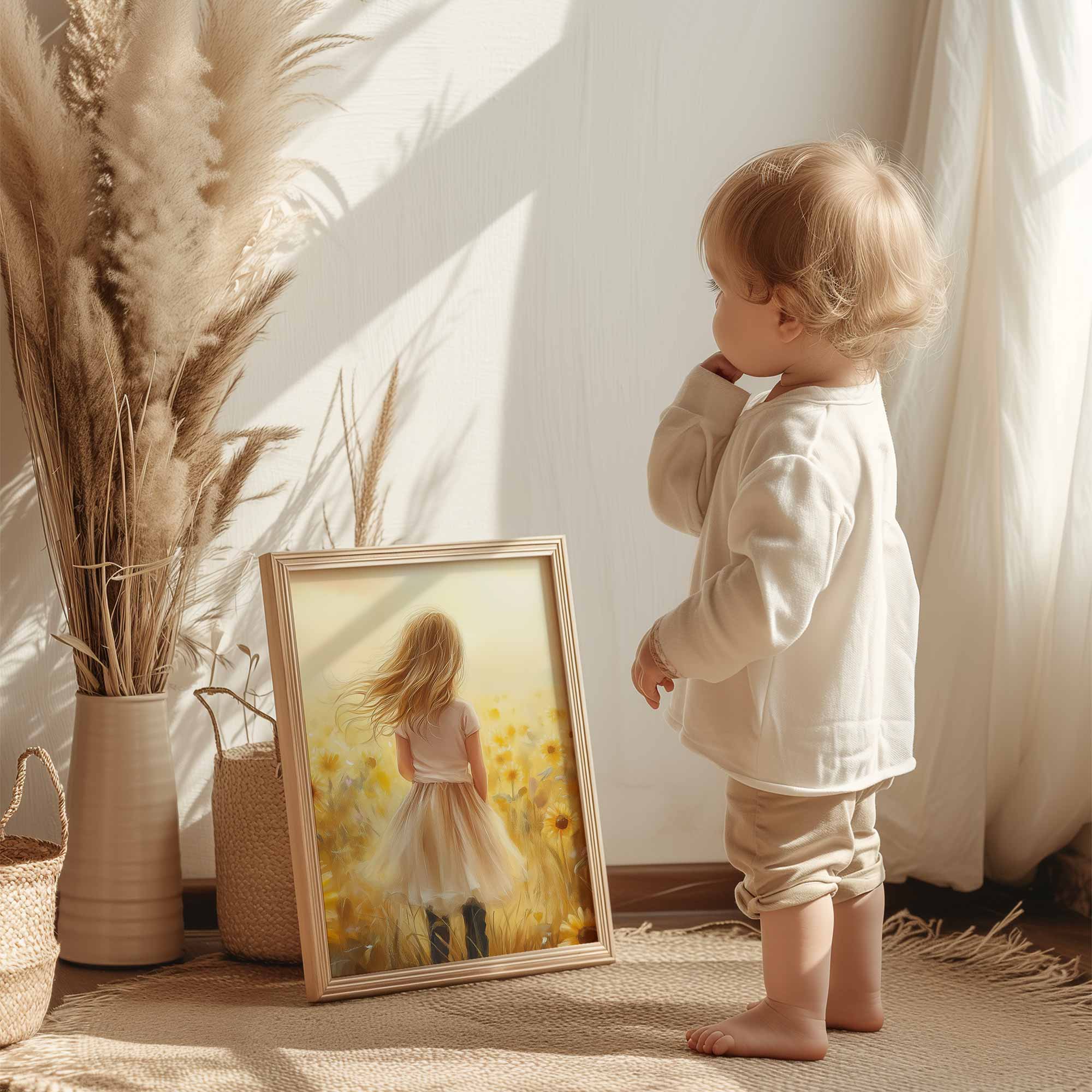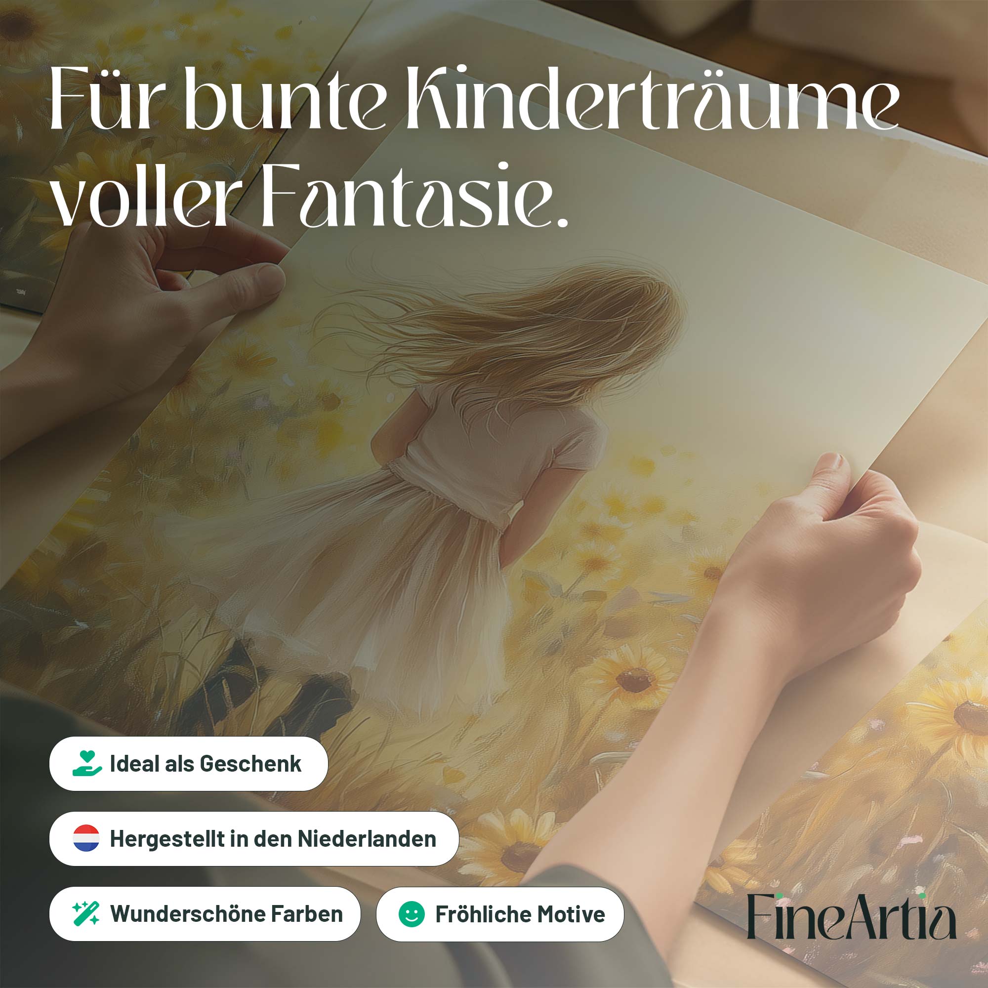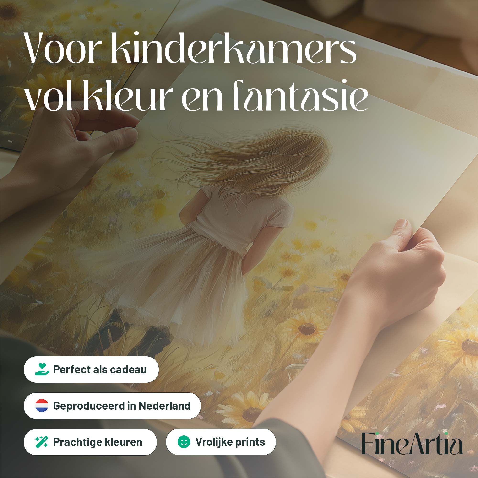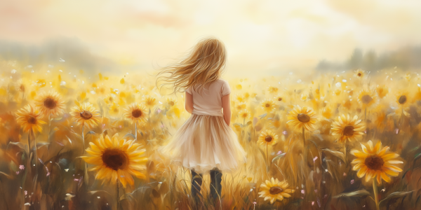 Zonnig Meisje tussen Zonnebloemen – Dromerig Sfeerbeeld