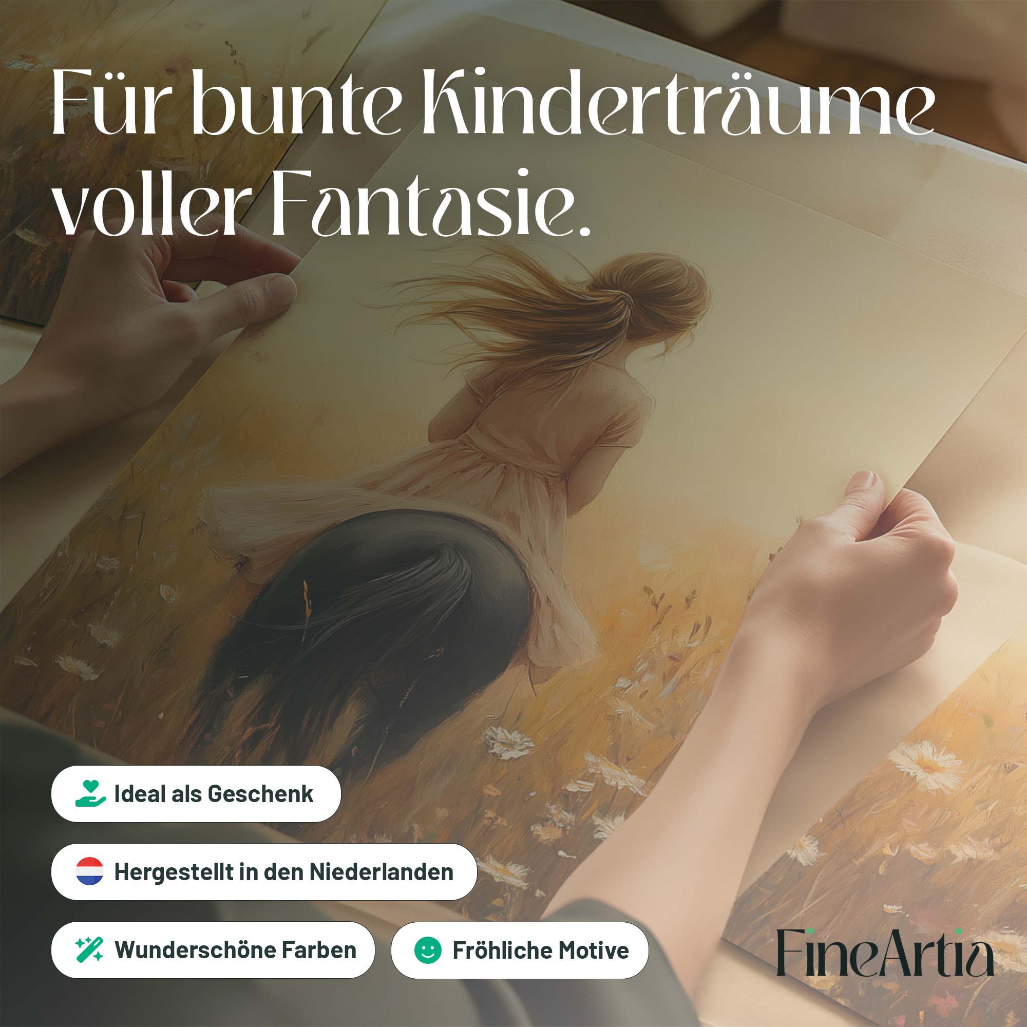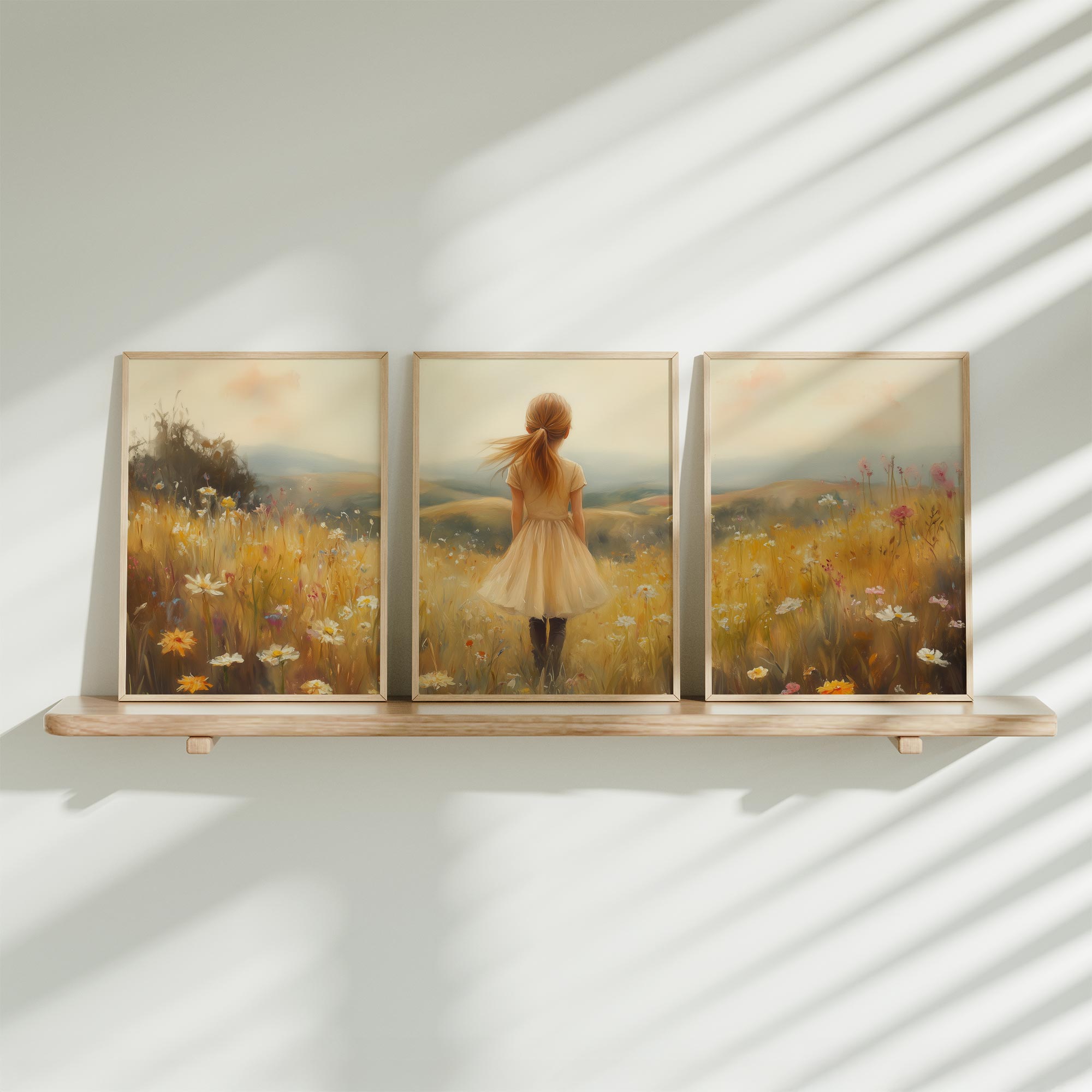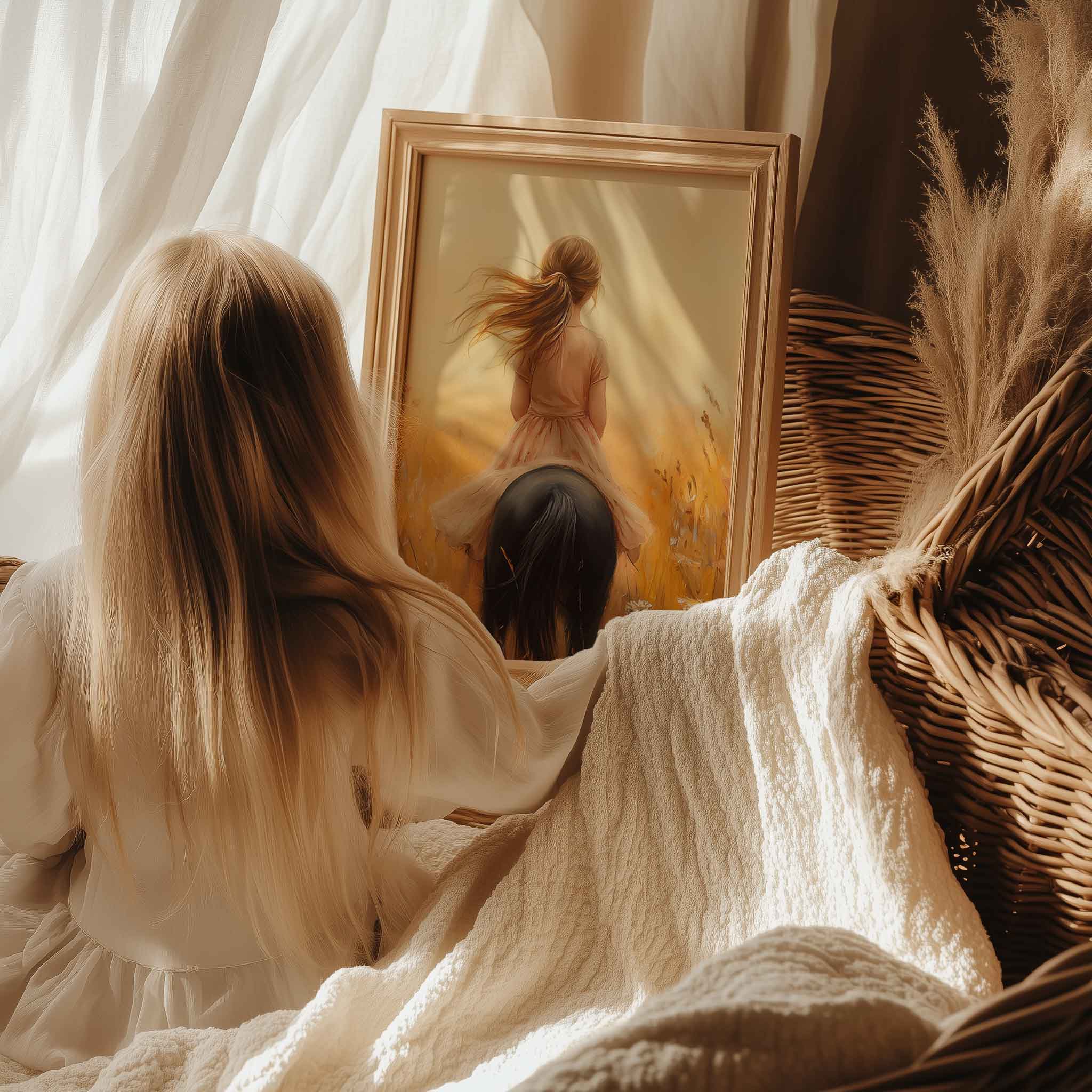 Terug naar collectie Posters Zonnig Paardrijavontuur in Bloemenveld