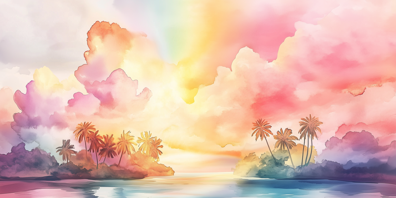 Zonnig Tropisch Eiland – Speels Waterverf Avontuur