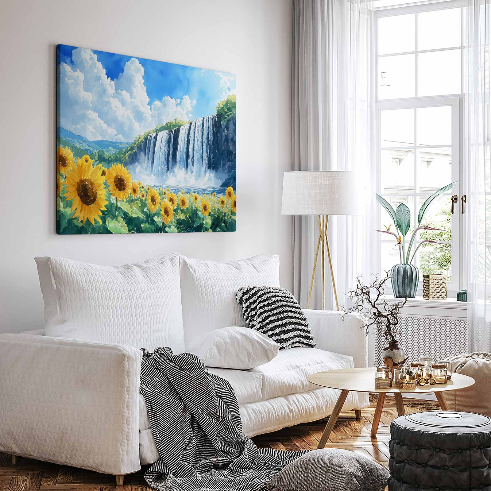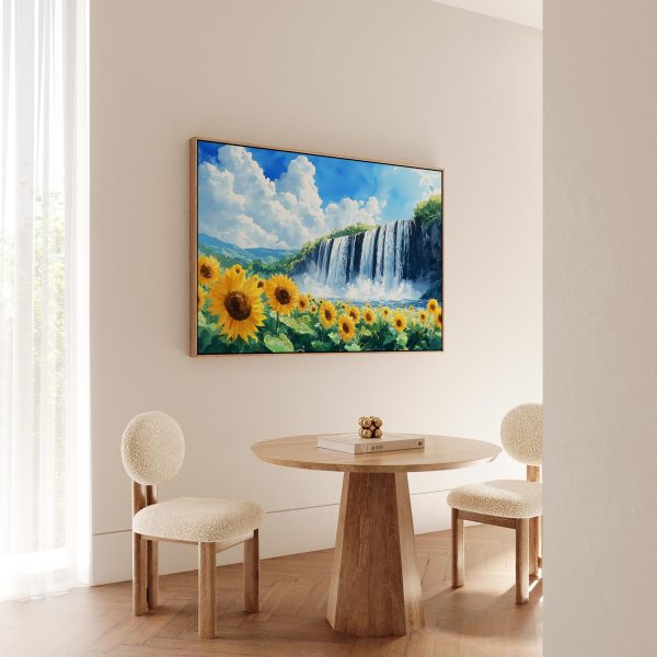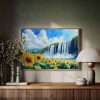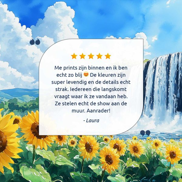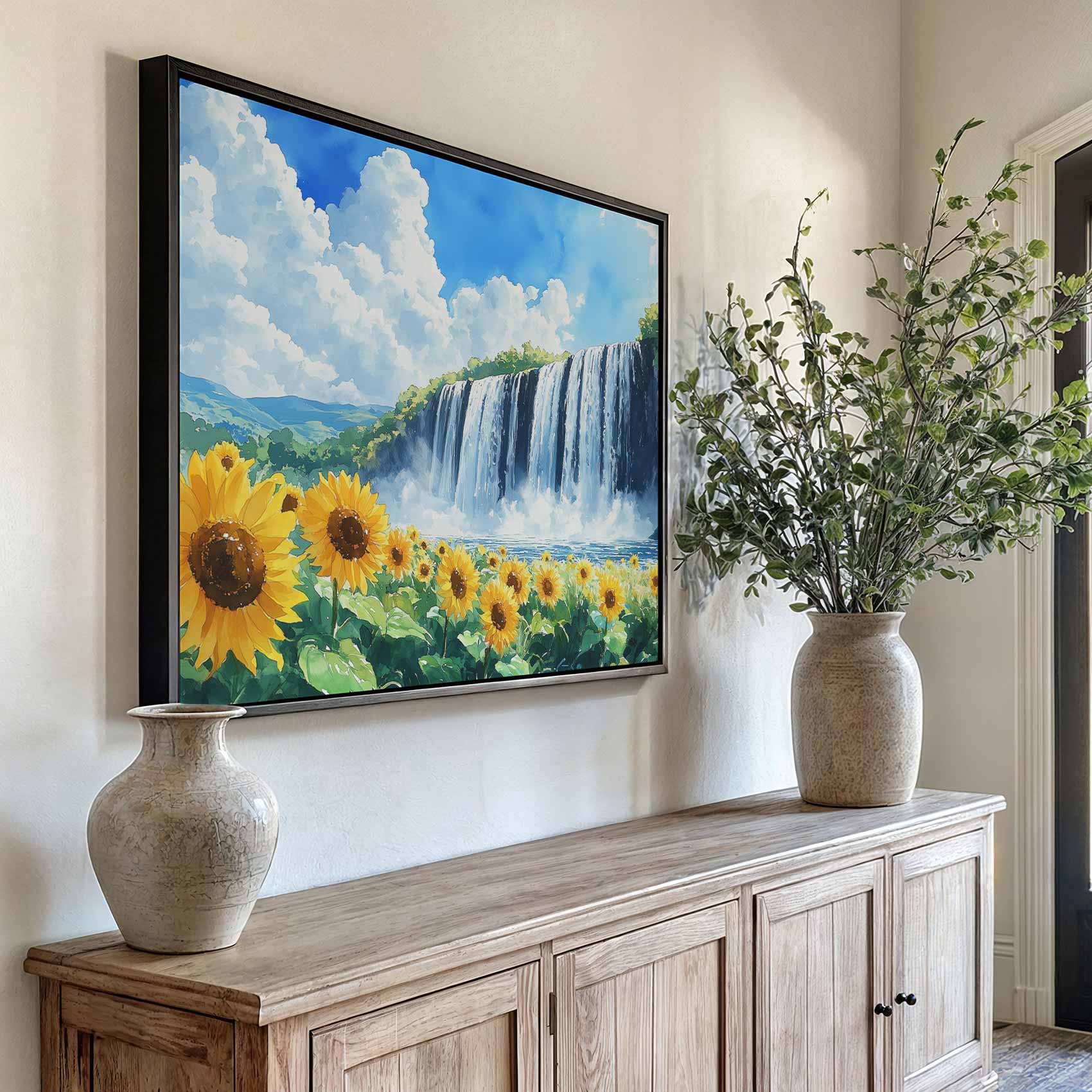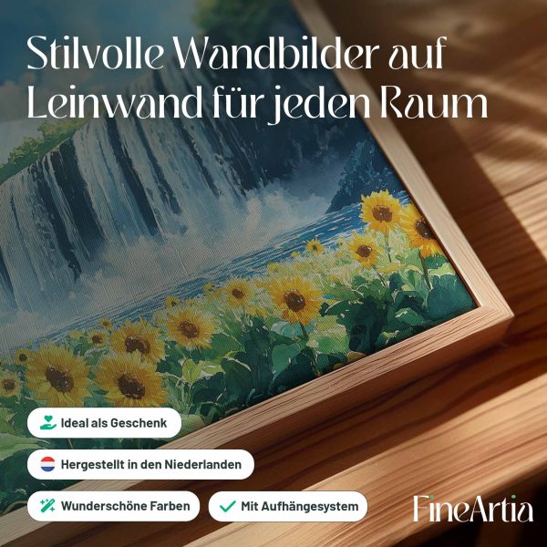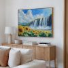 Zonnig waterval waterverfschilderij