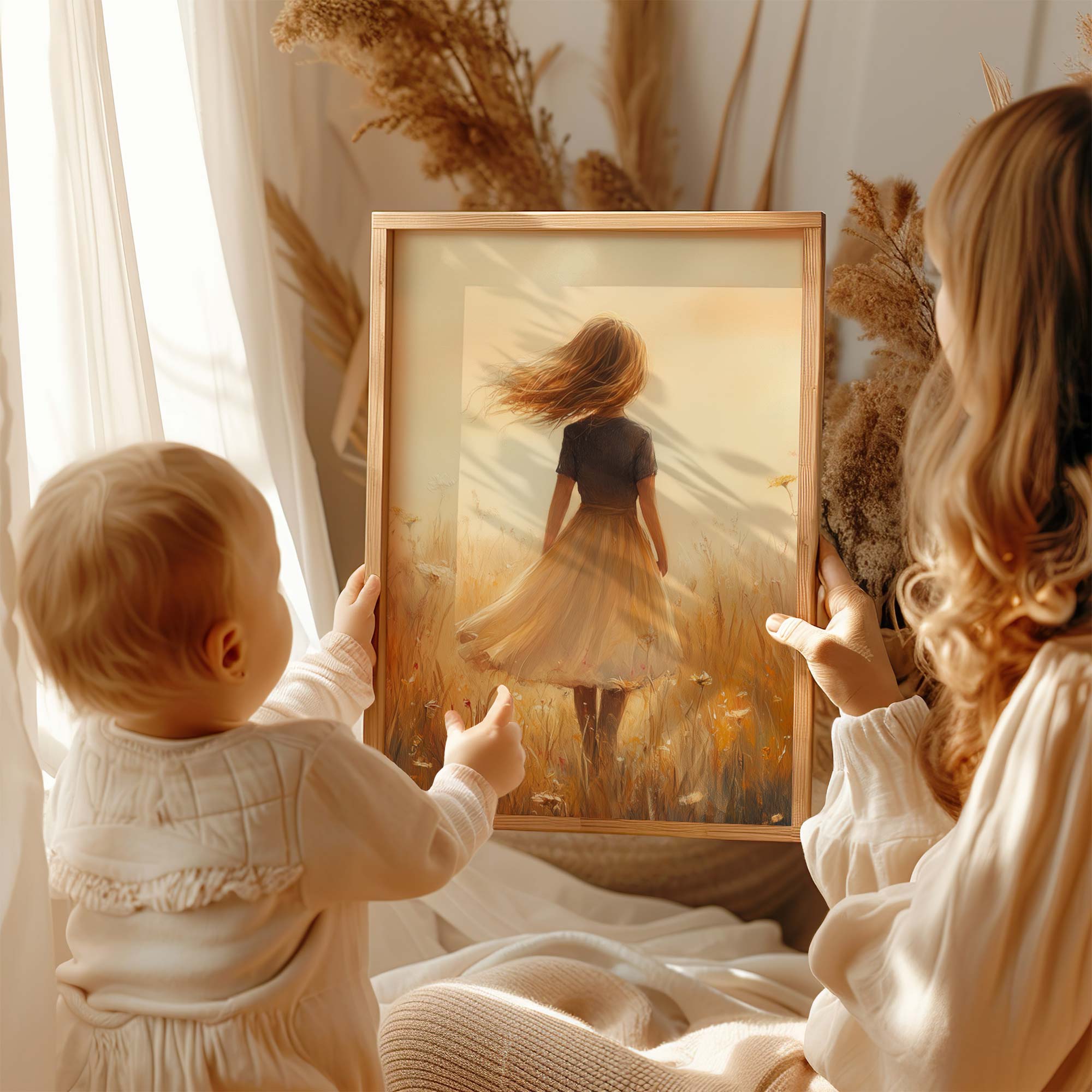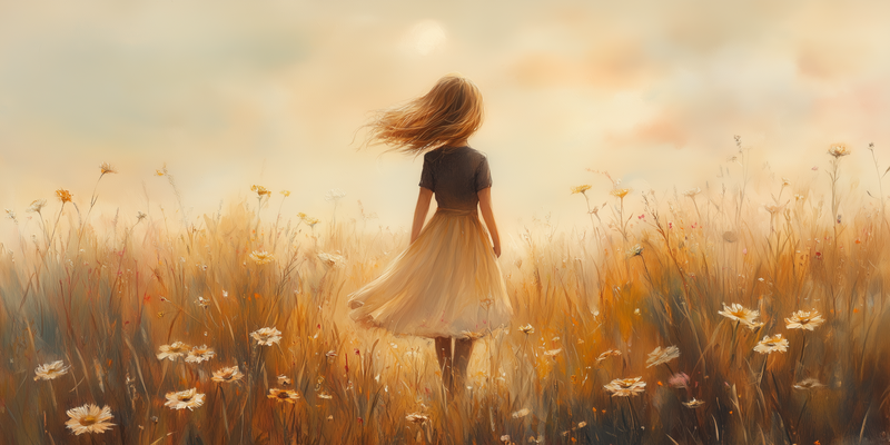 Zonnige Bloemenweide met Vrolijke Dame