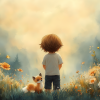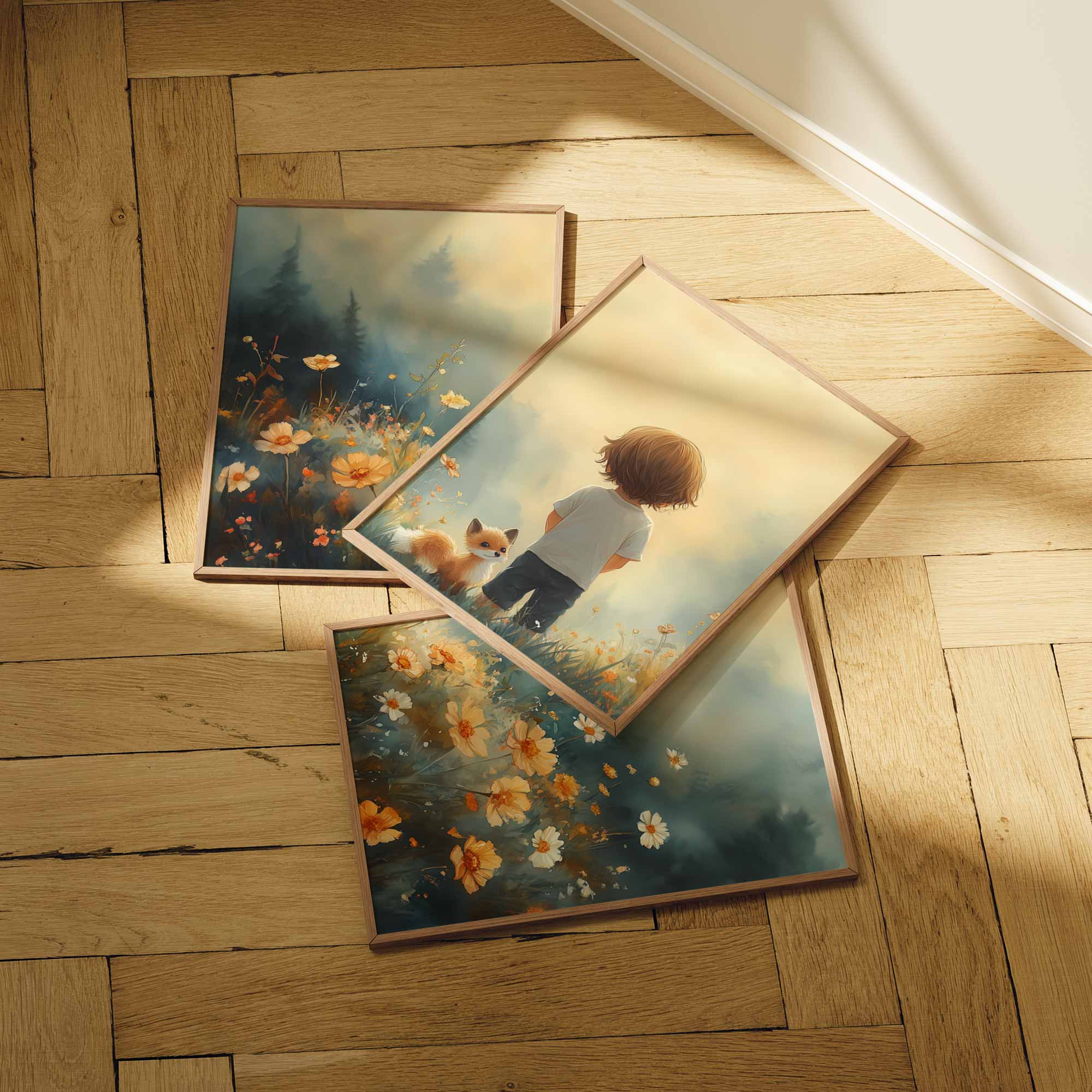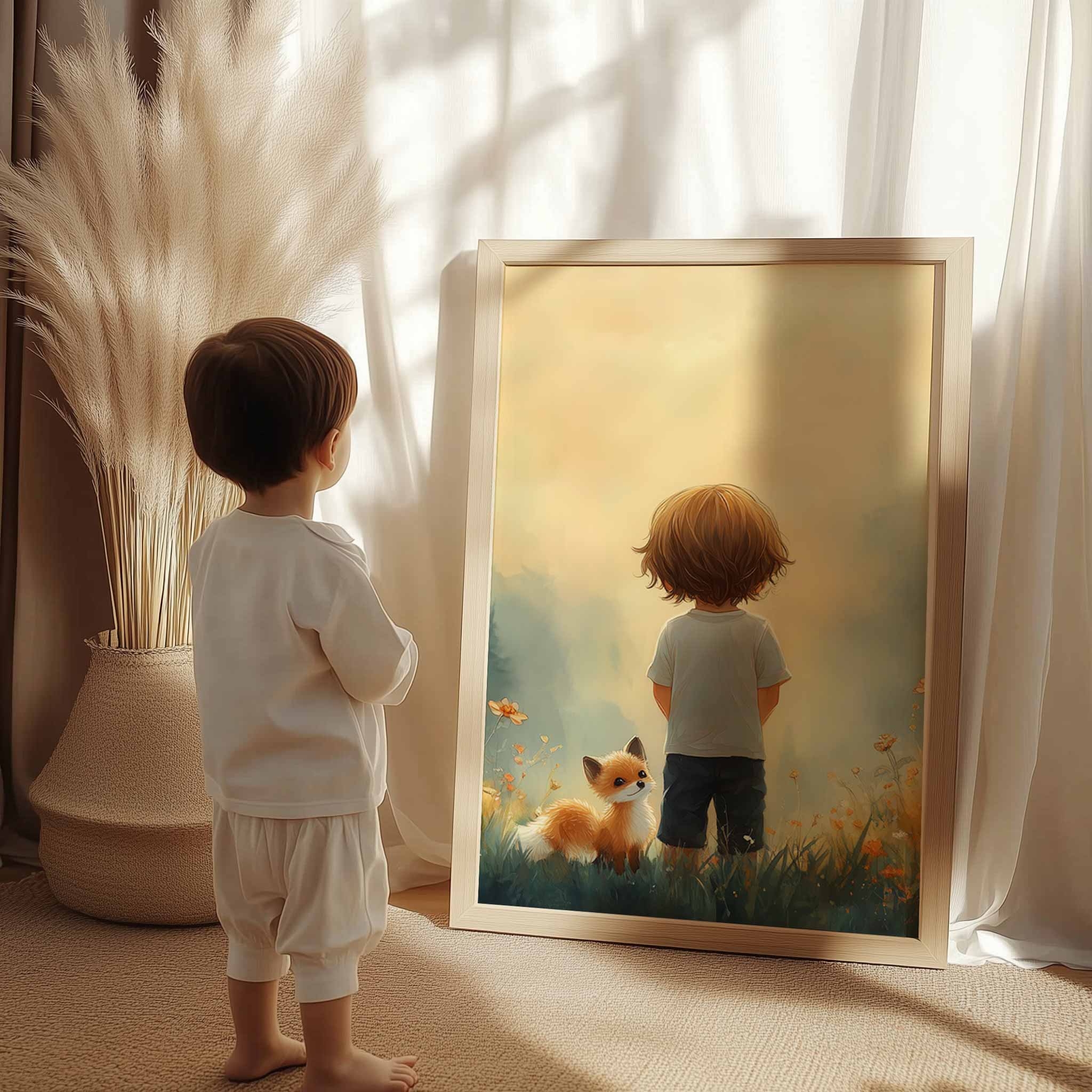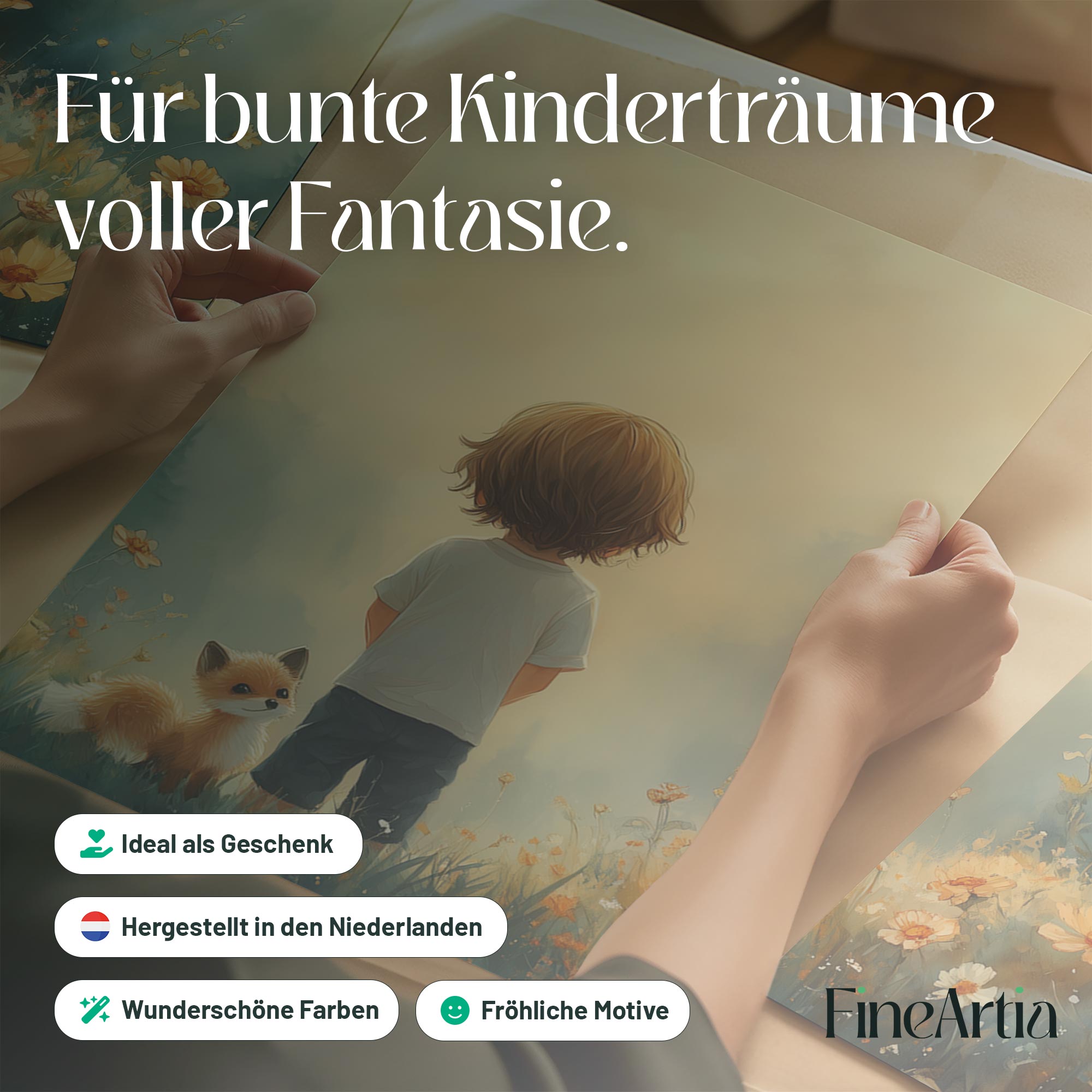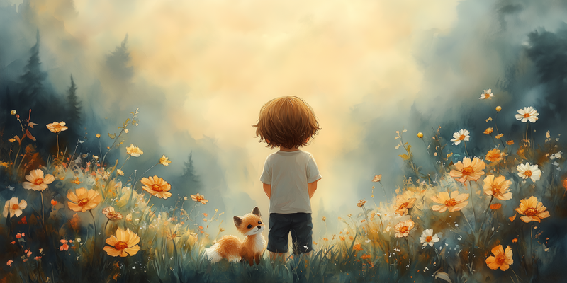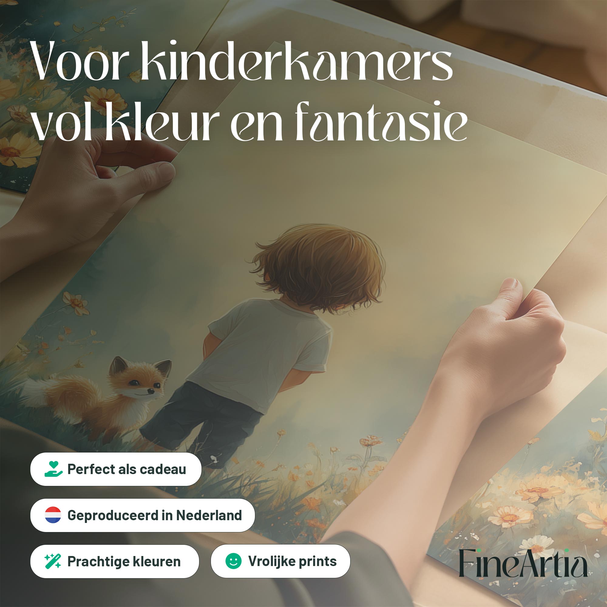 Zonnige Dromen: Jongen en Vos in Bloemenveld