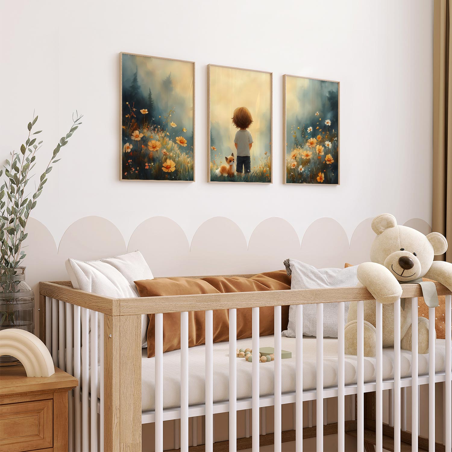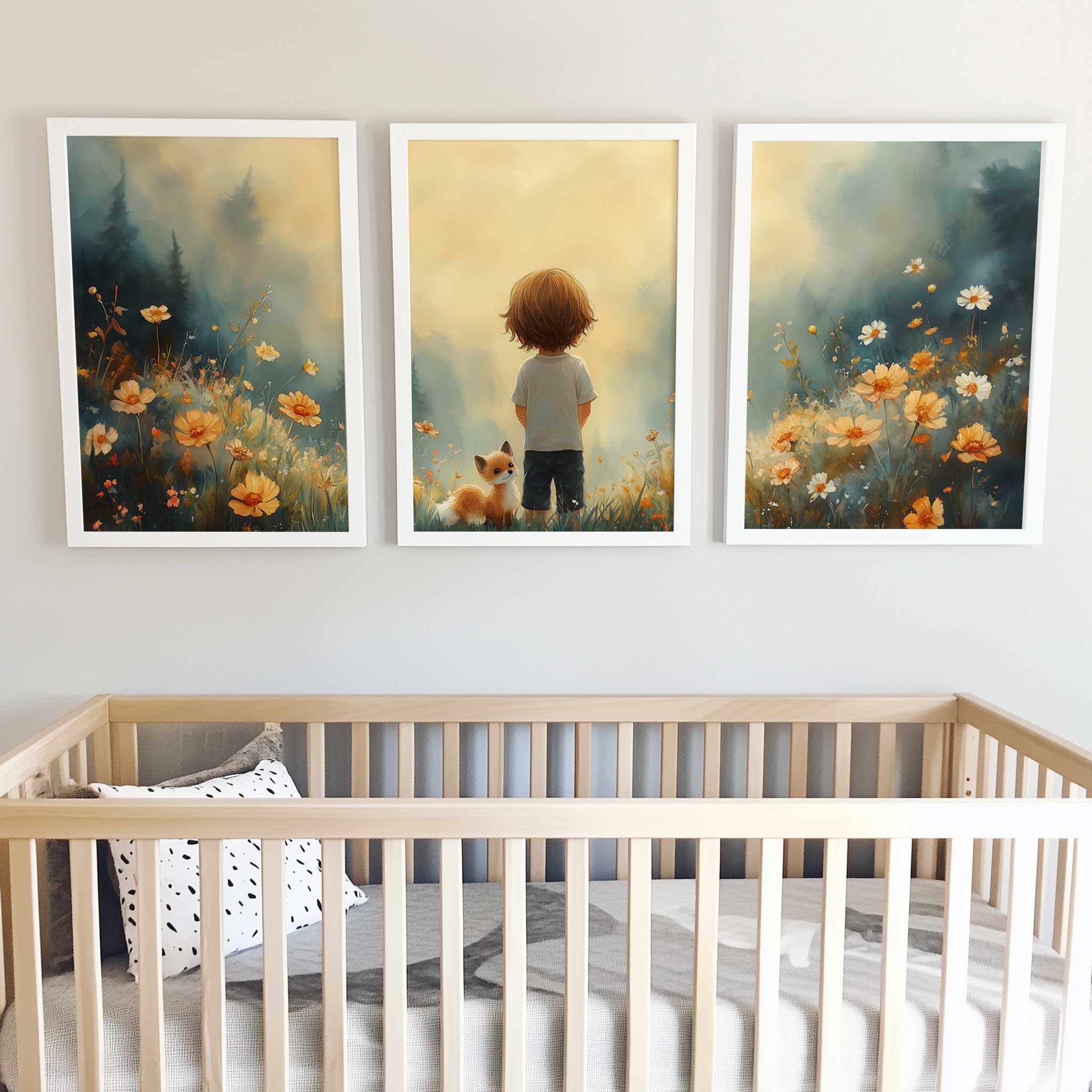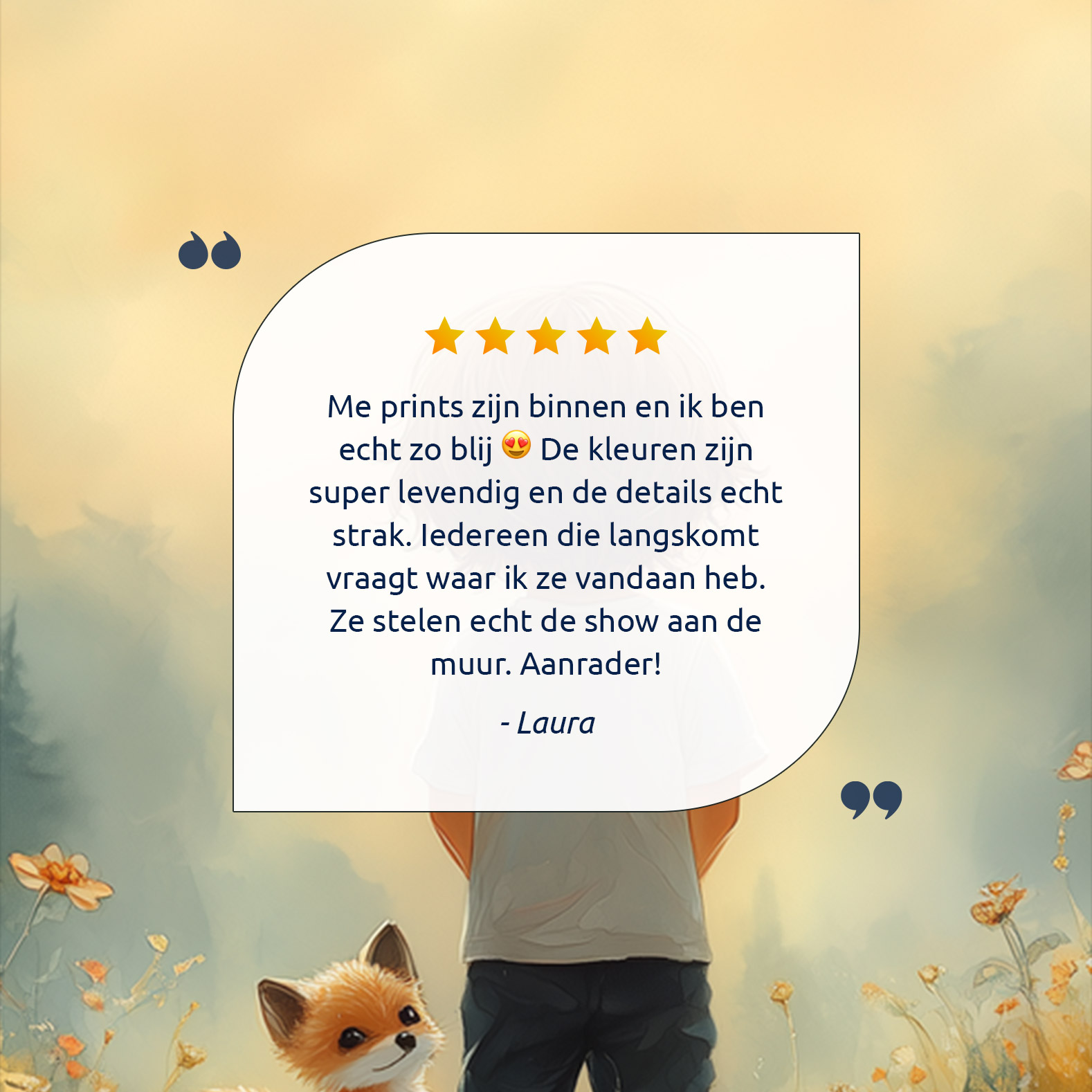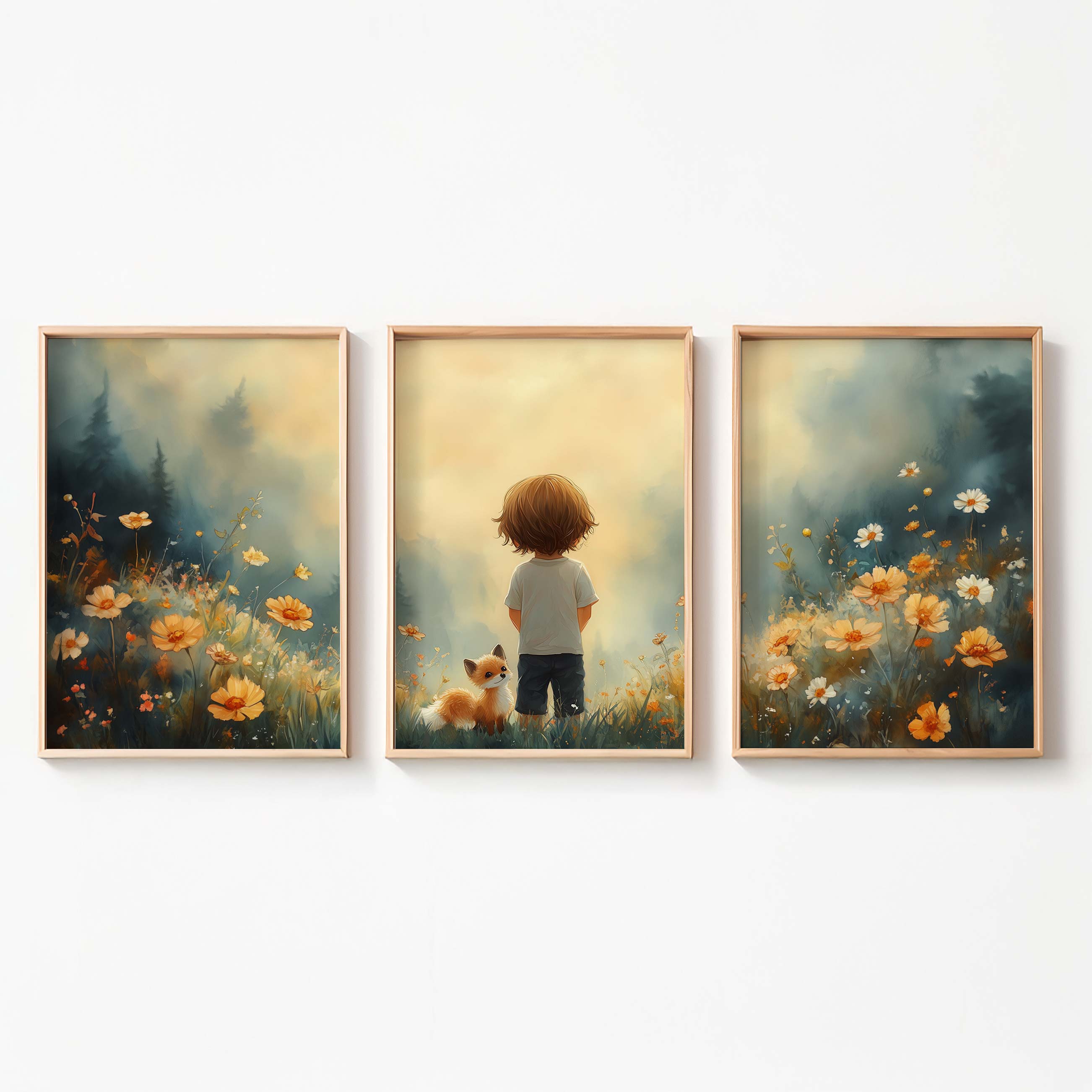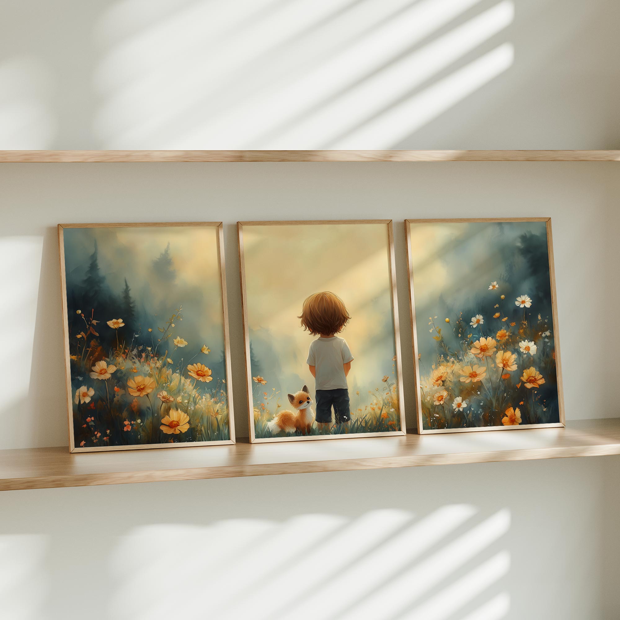 Zonnige Dromen: Jongen en Vos in Bloemenveld