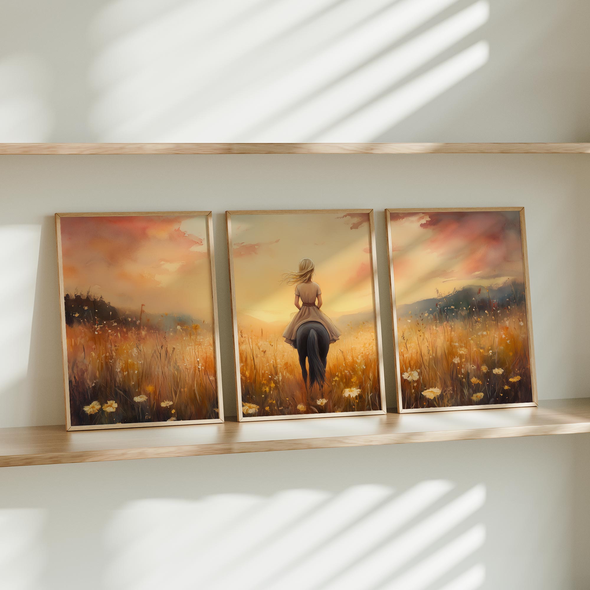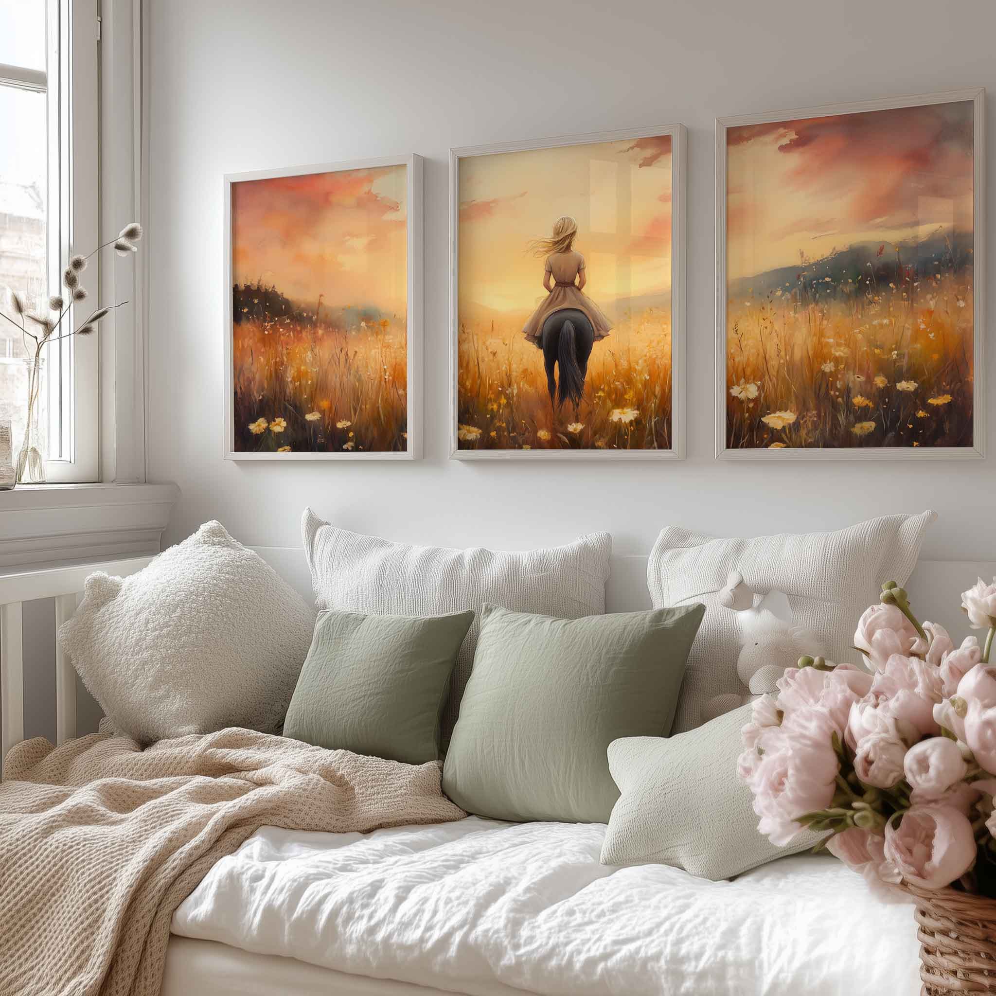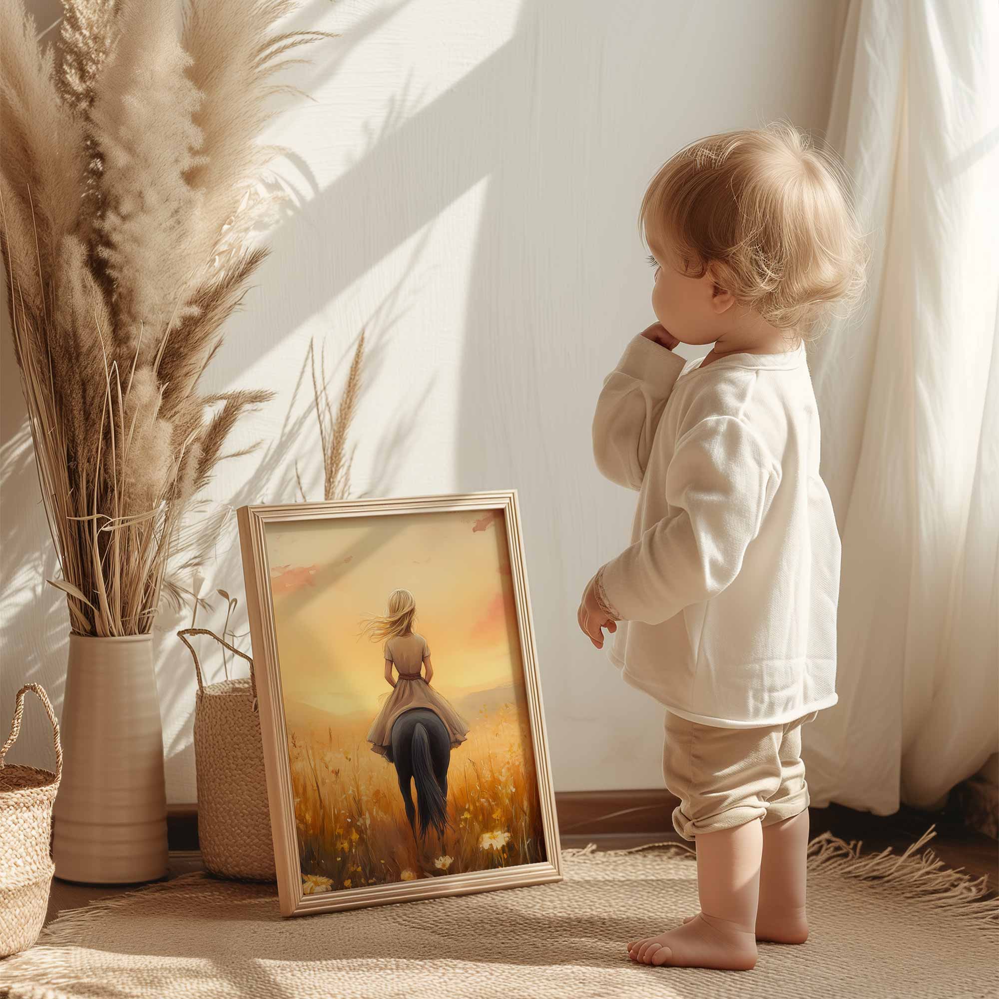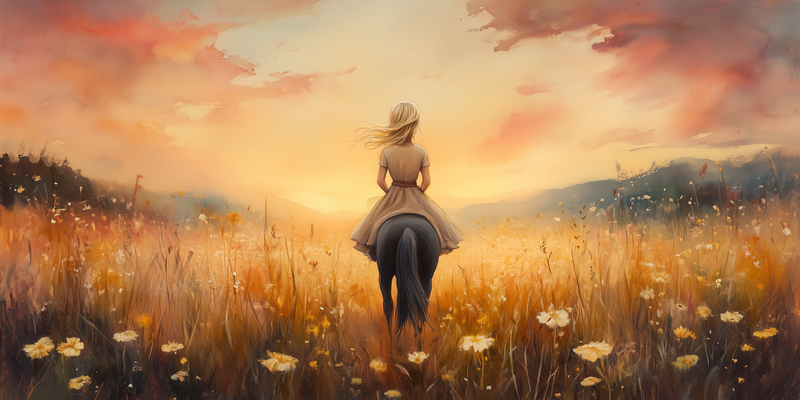 Terug naar collectie Posters Zonnige Droomrit door een Bloemenveld