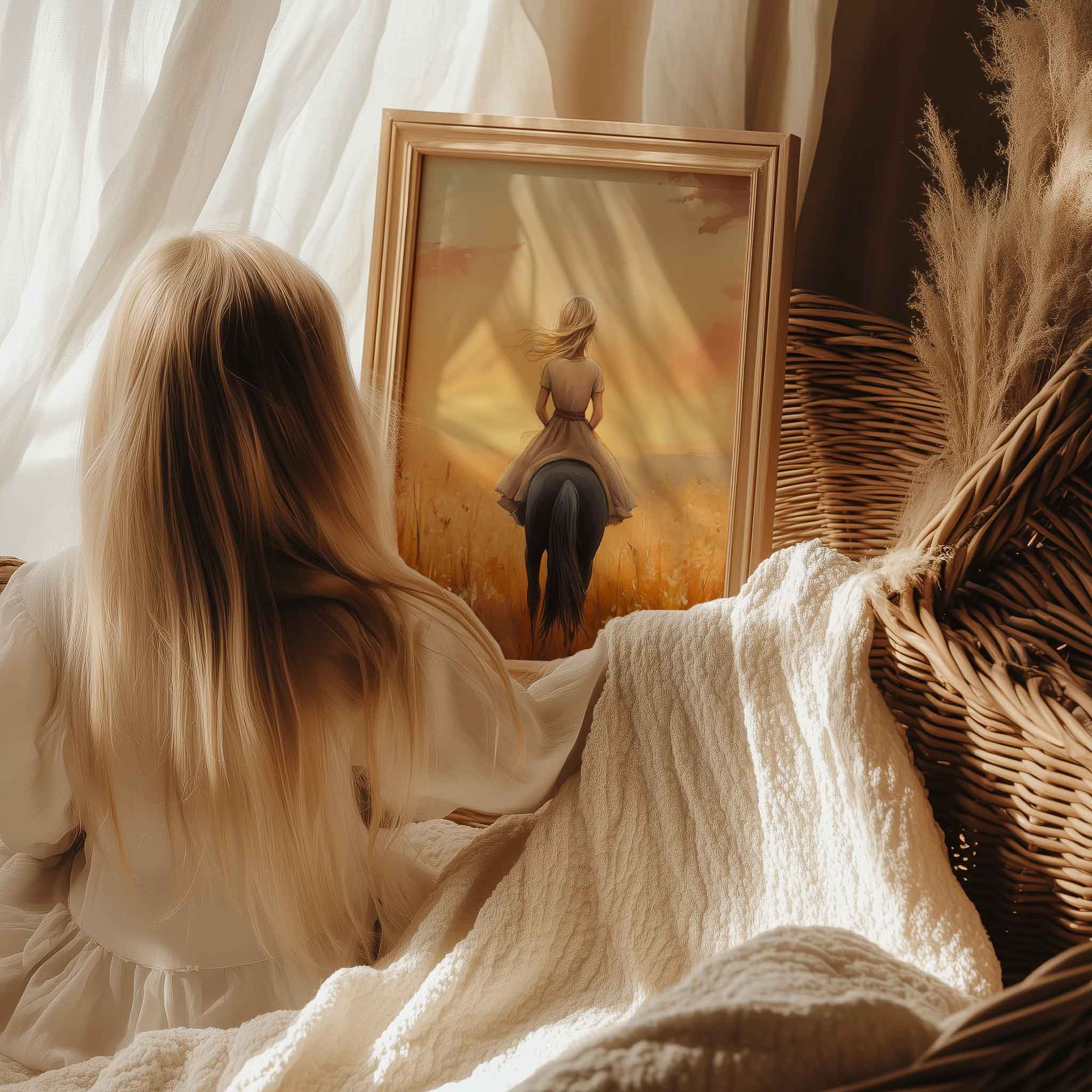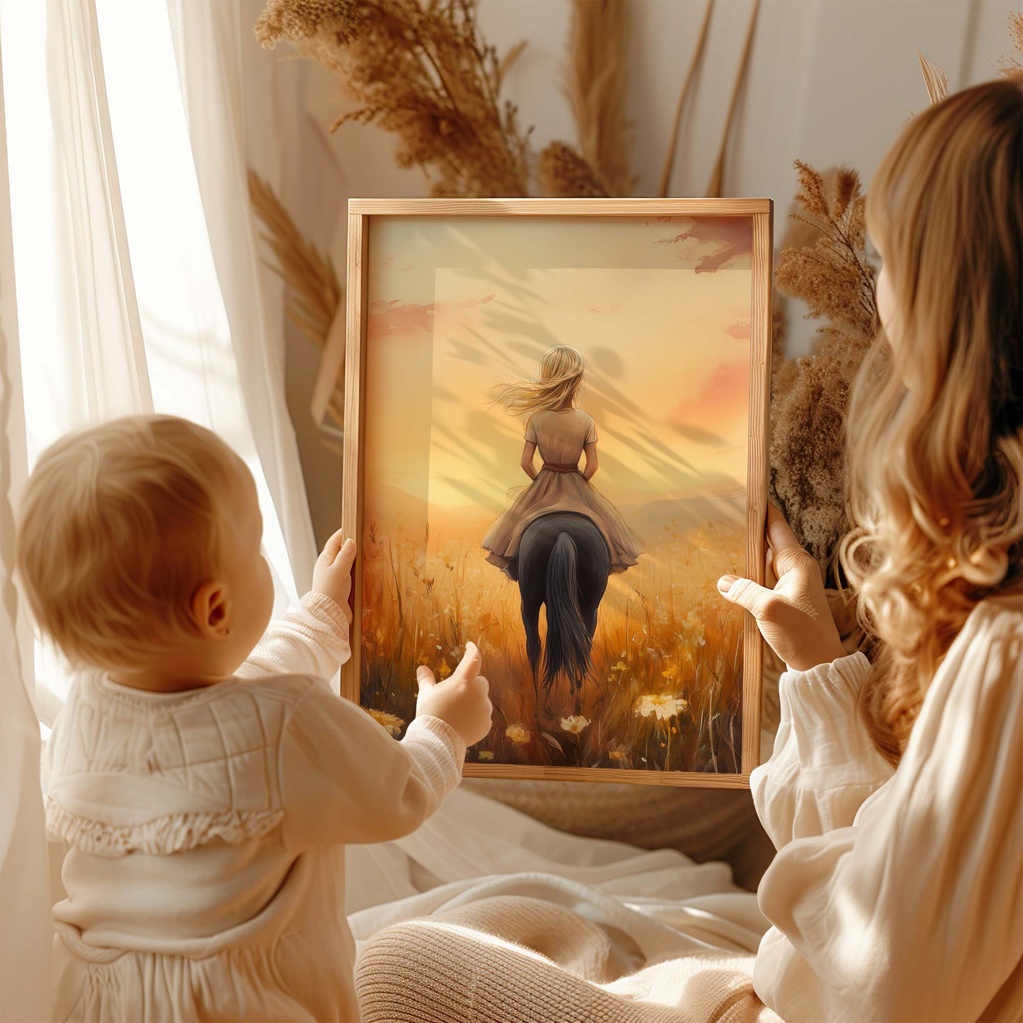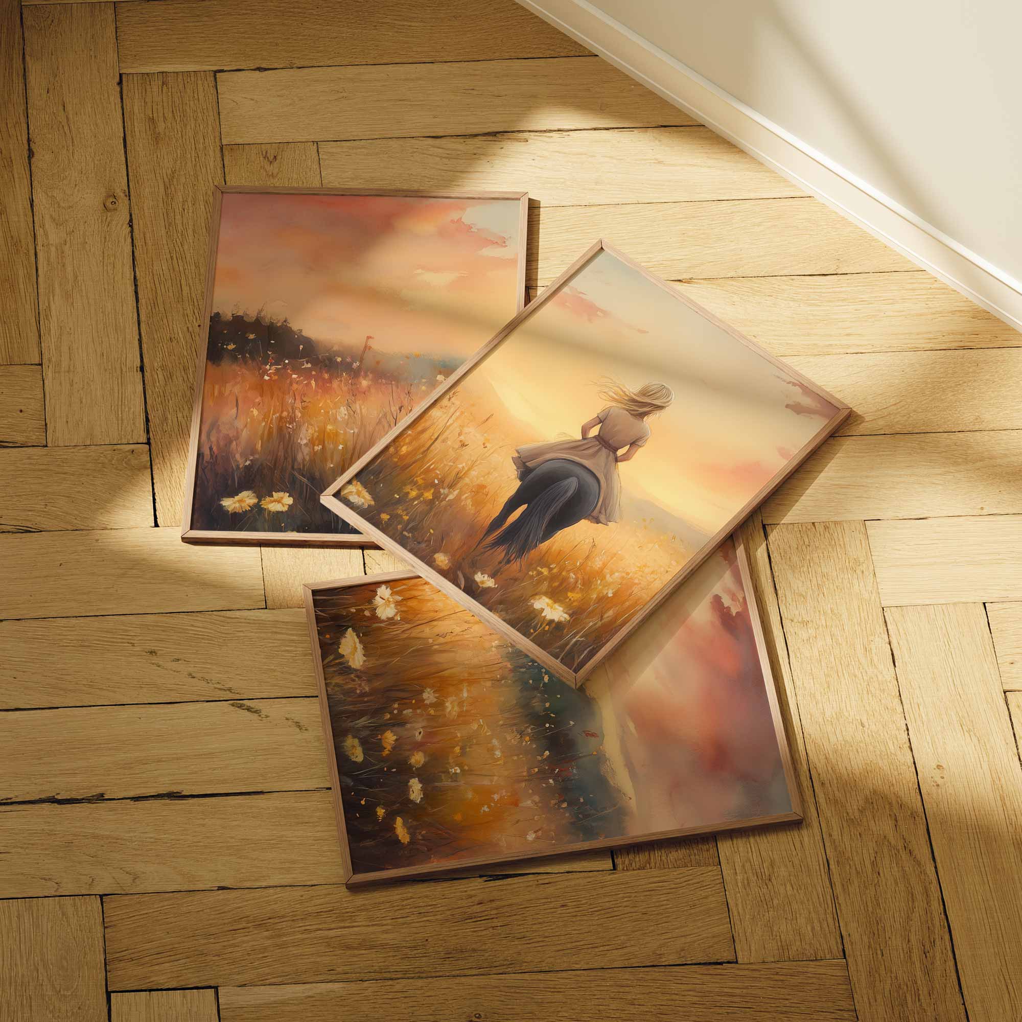 Terug naar collectie Posters Zonnige Droomrit door een Bloemenveld