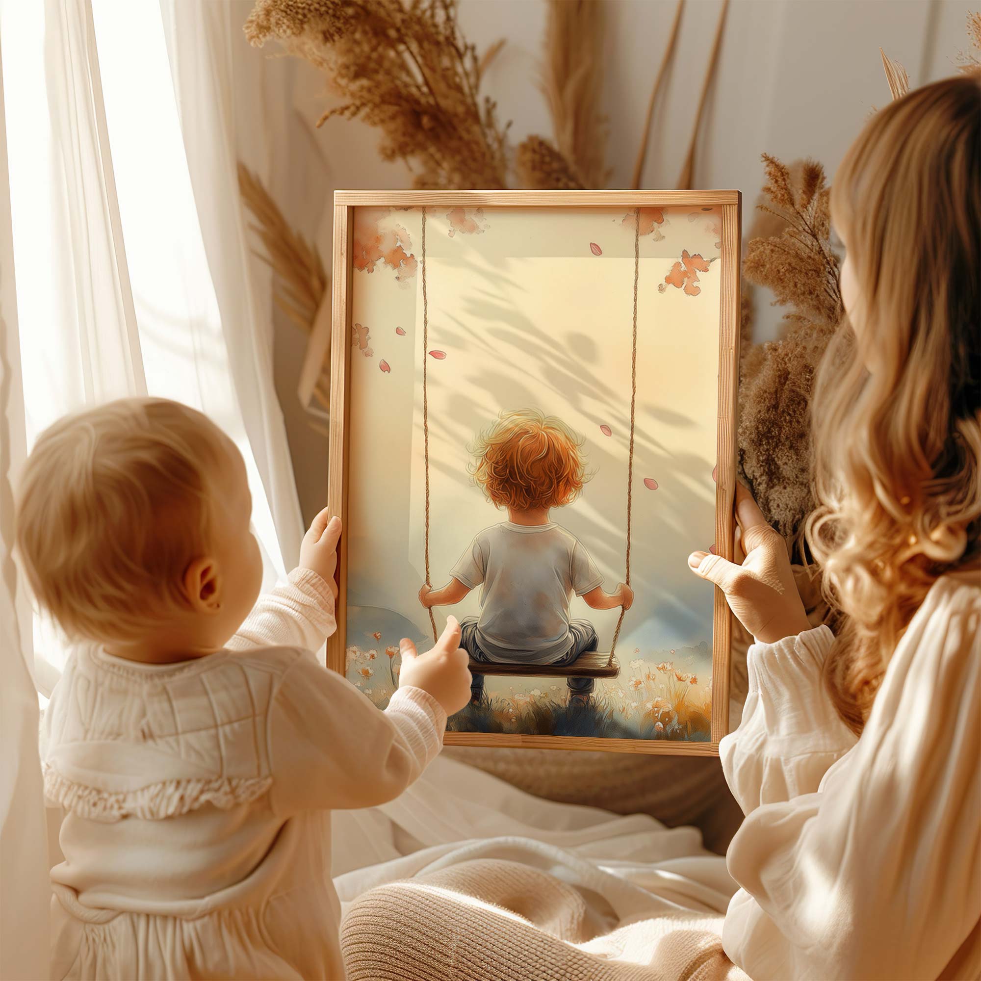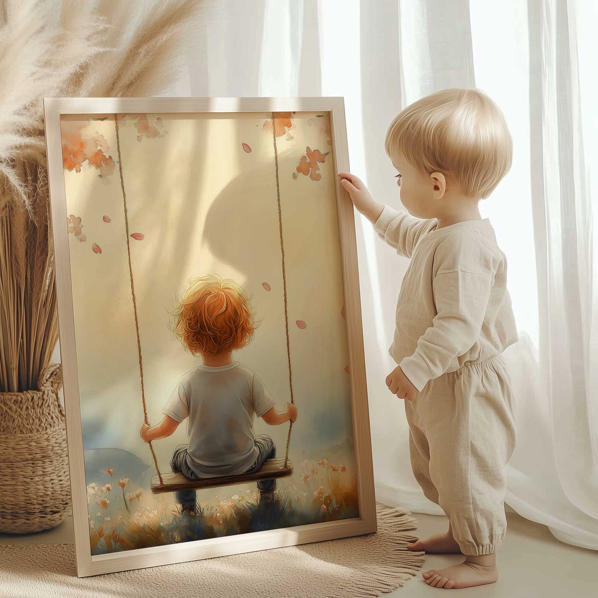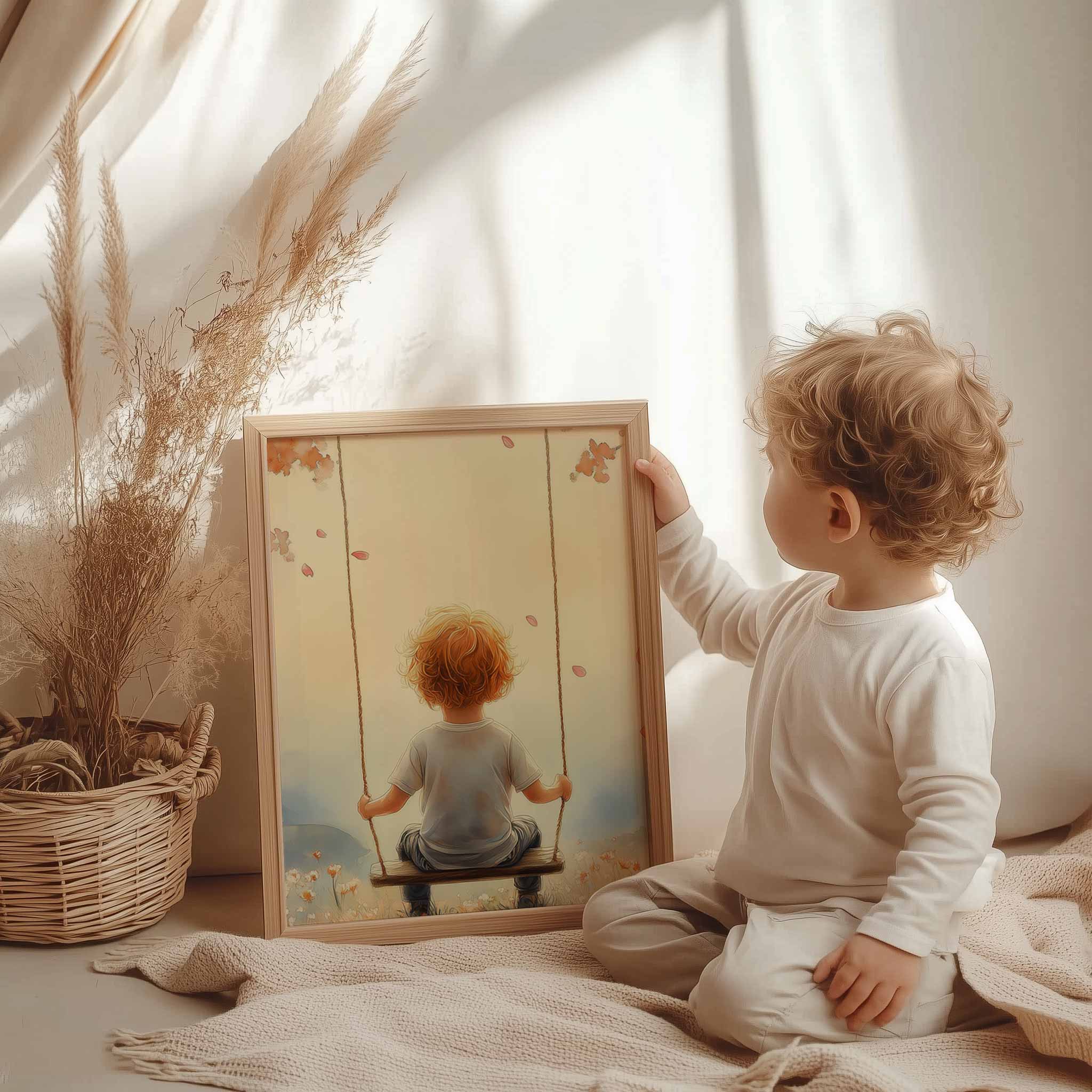 Terug naar collectie Posters Zonnige Schommel in Bloemenveld