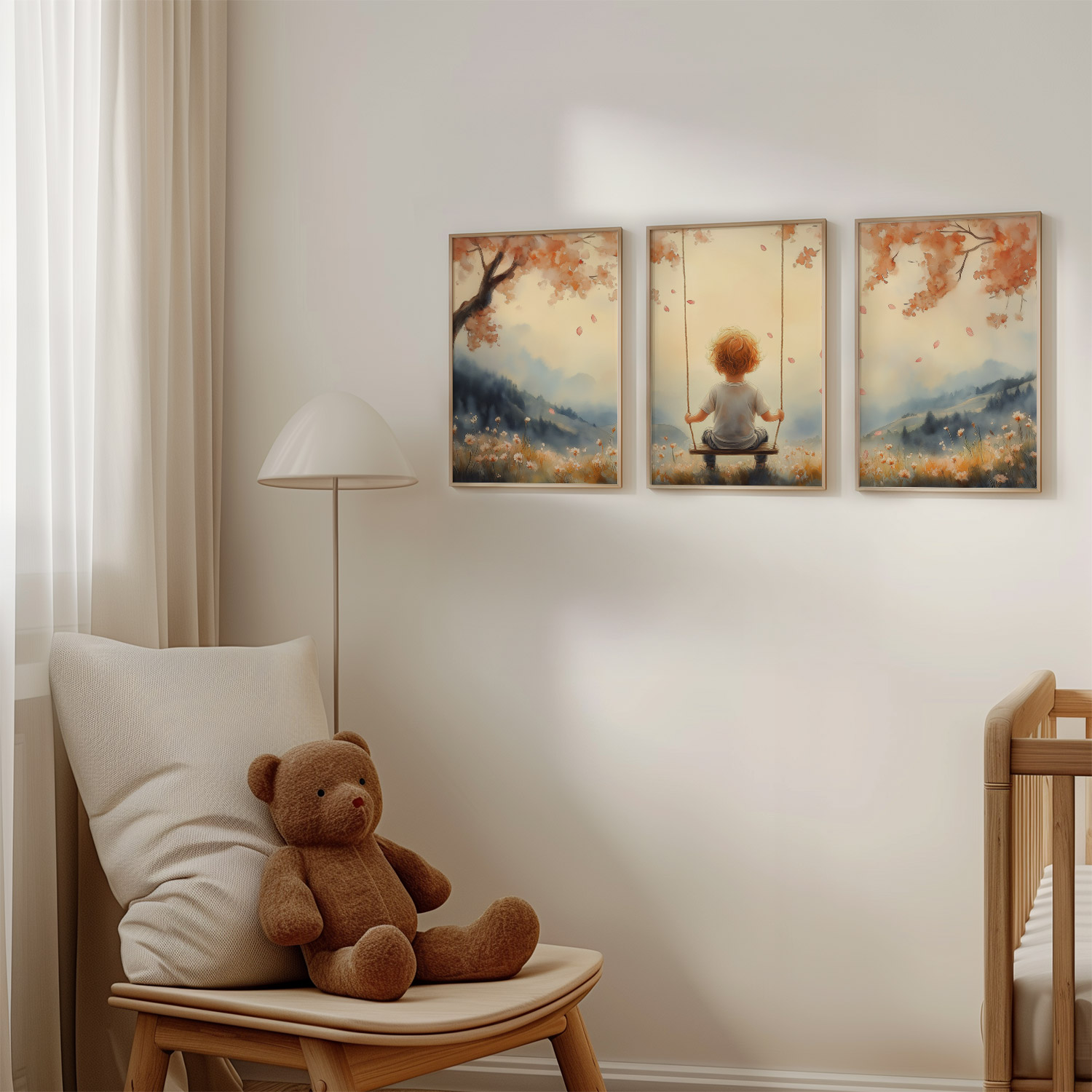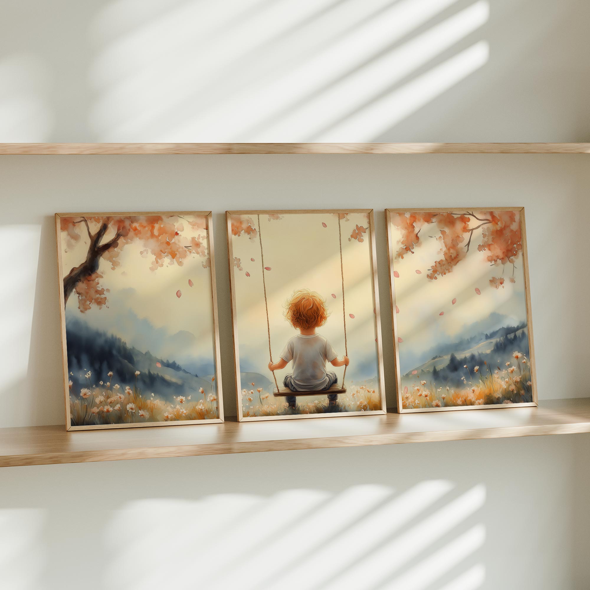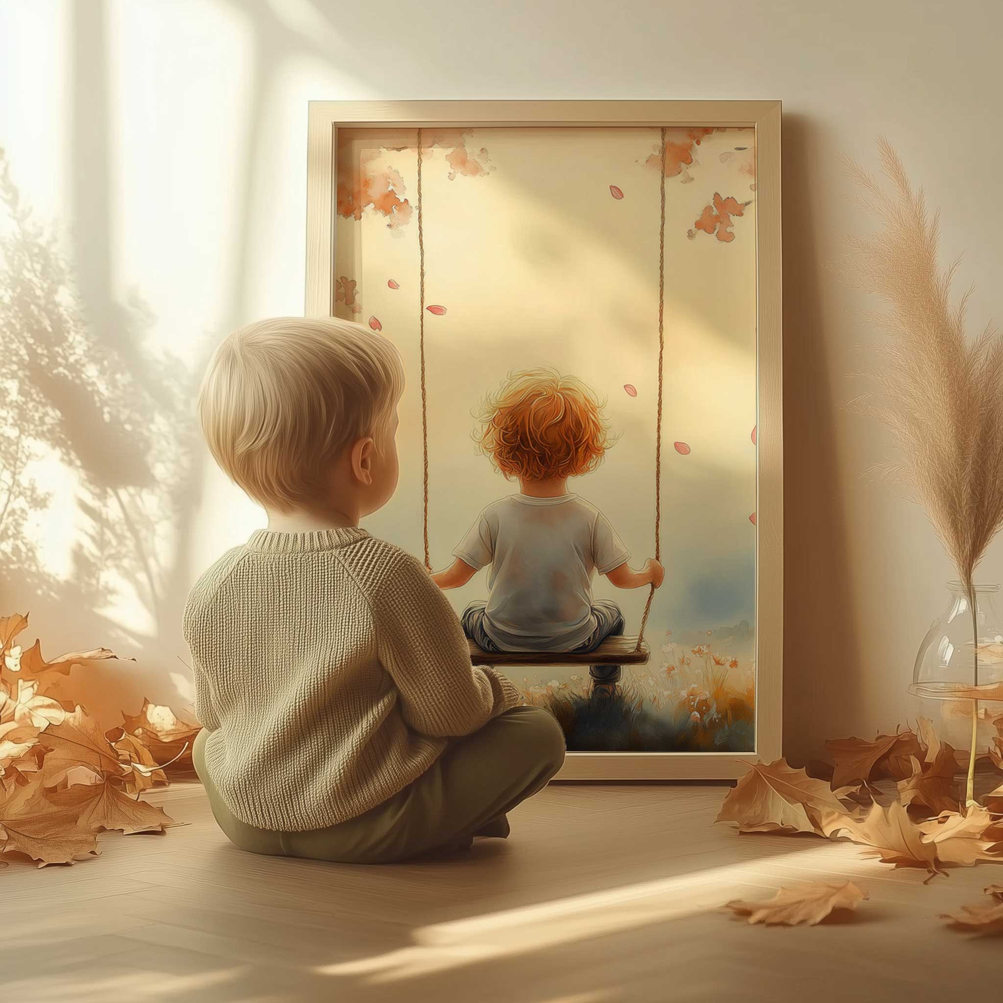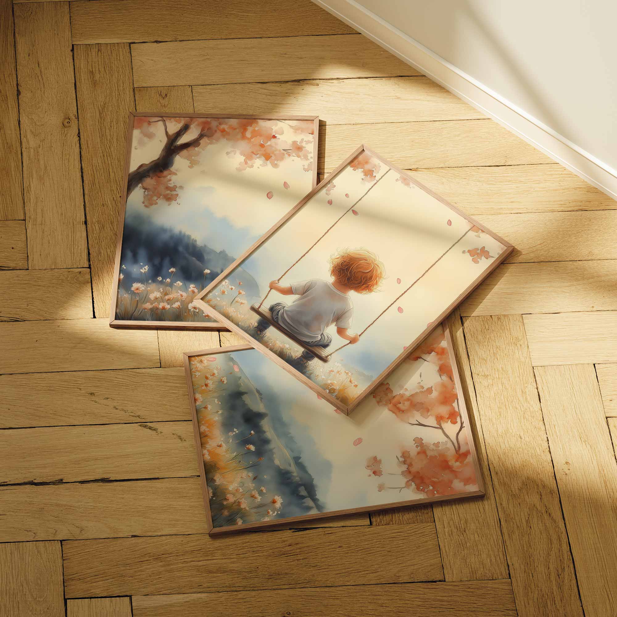 Terug naar collectie Posters Zonnige Schommel in Bloemenveld