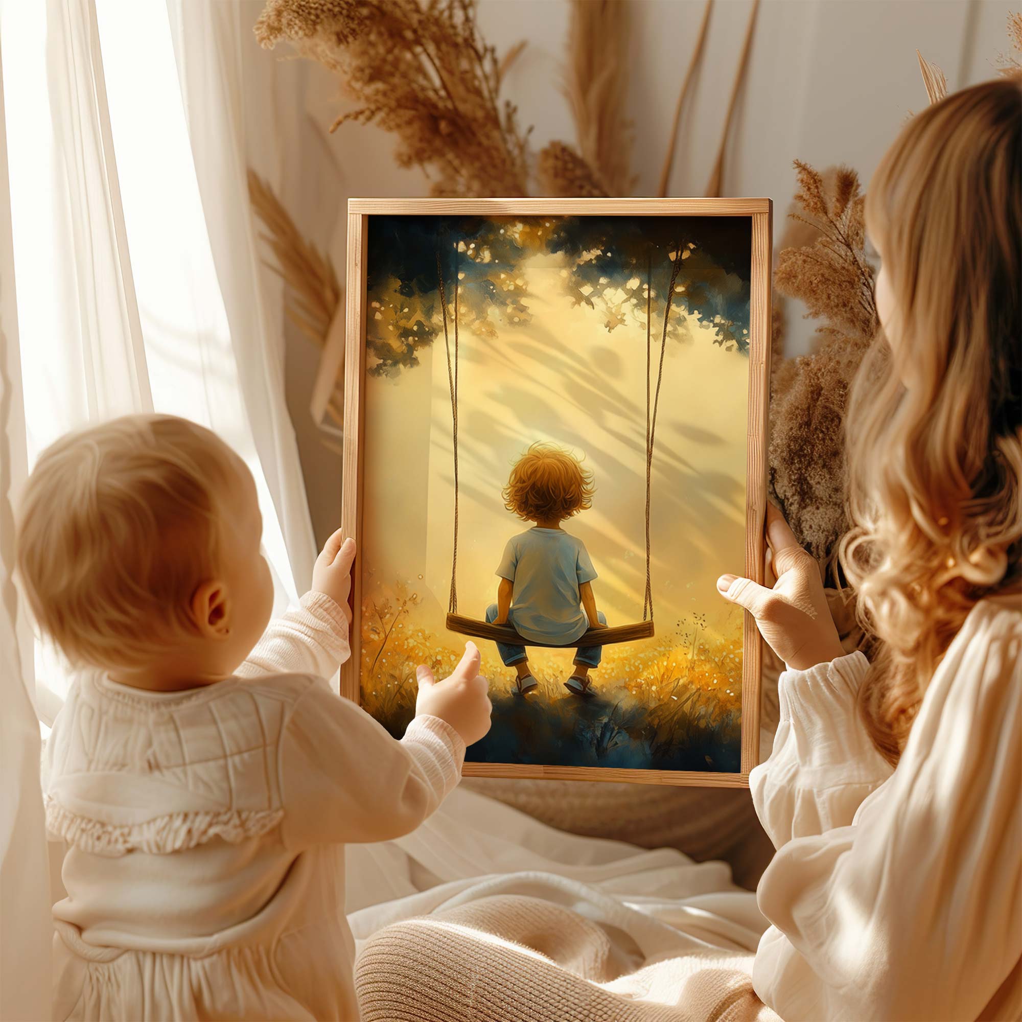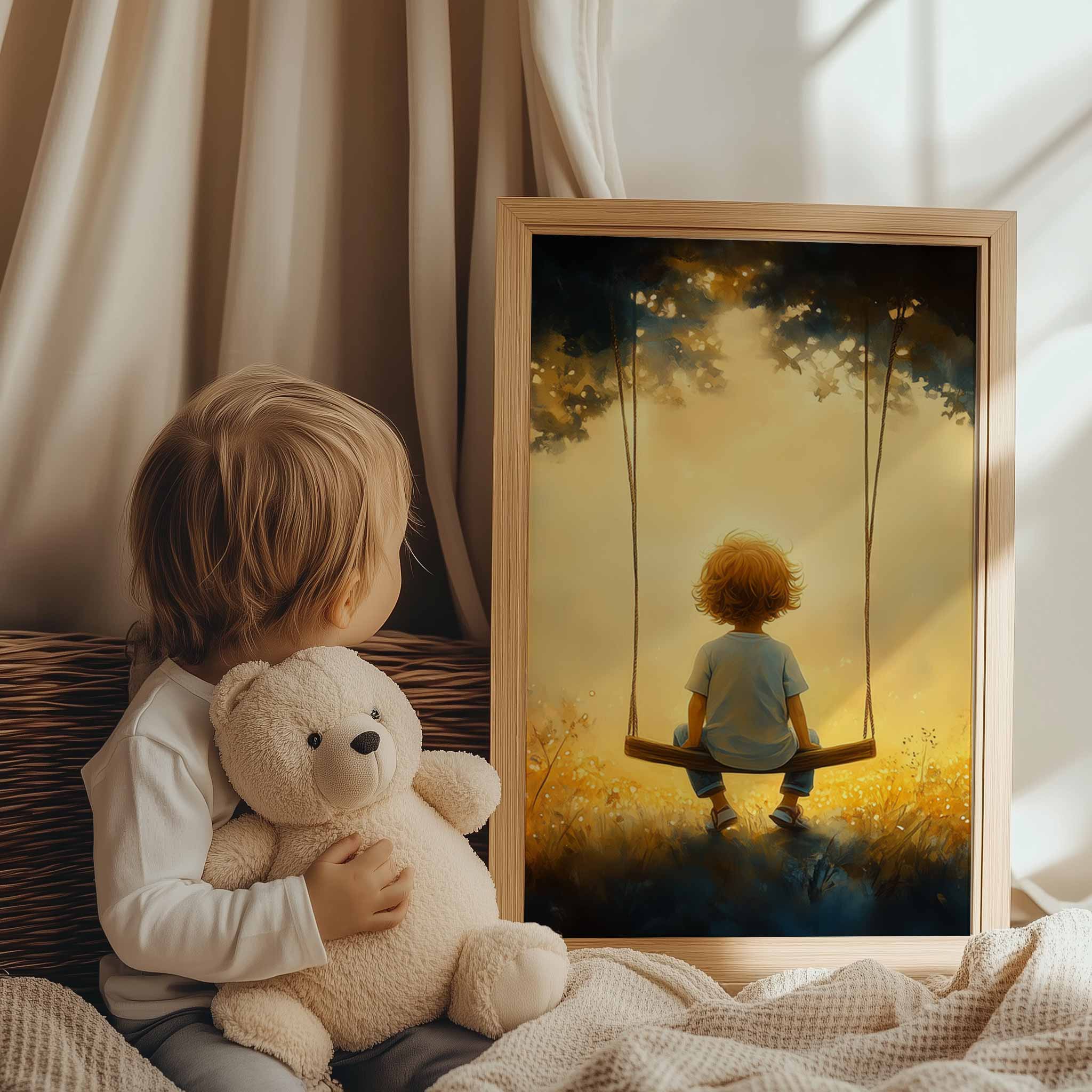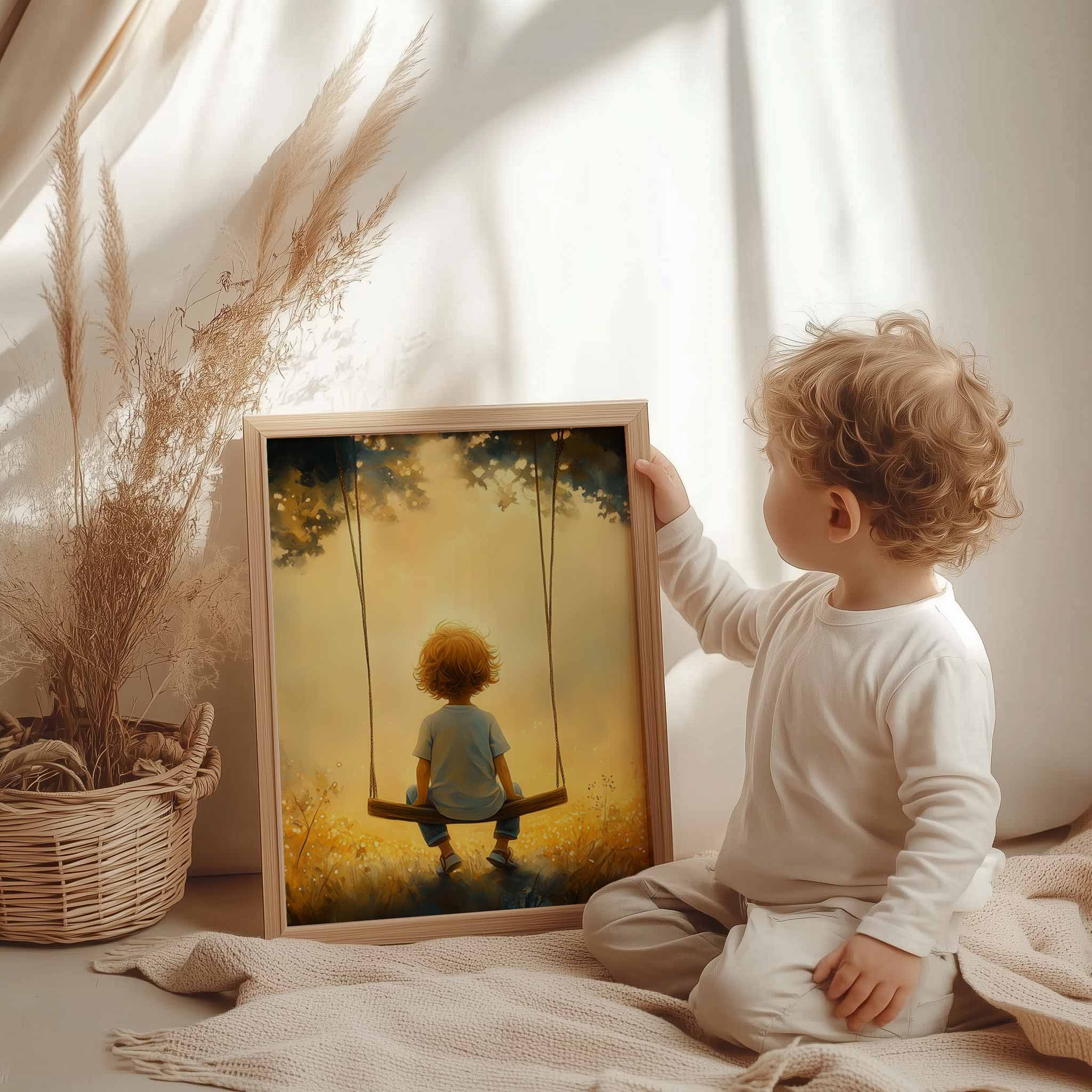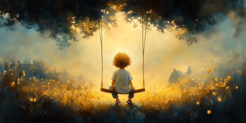 Zonnige Schommel in een Bloemenveld