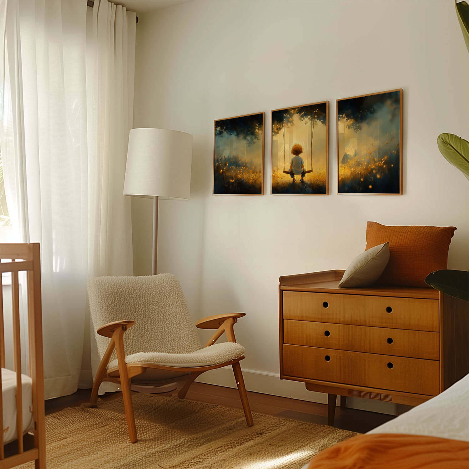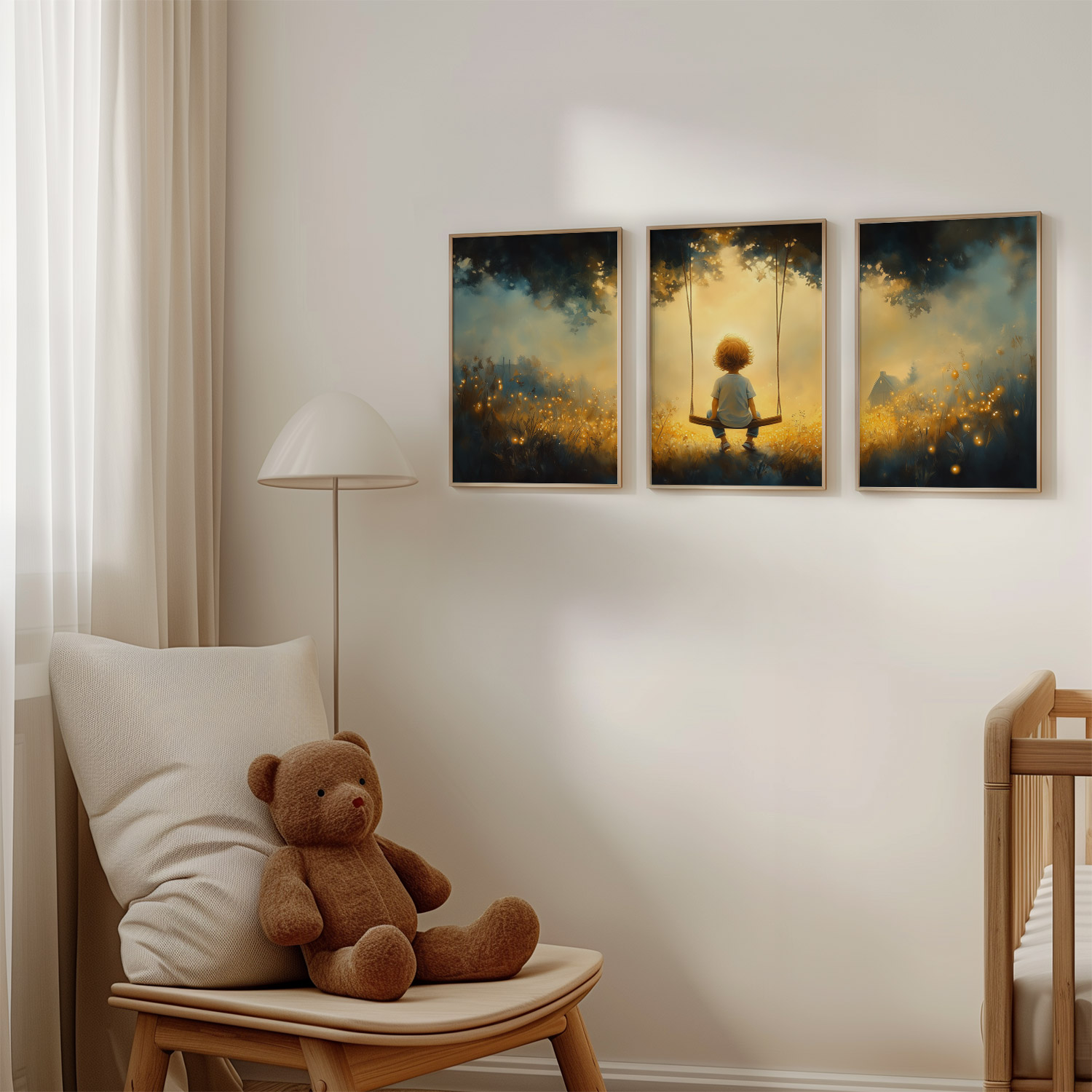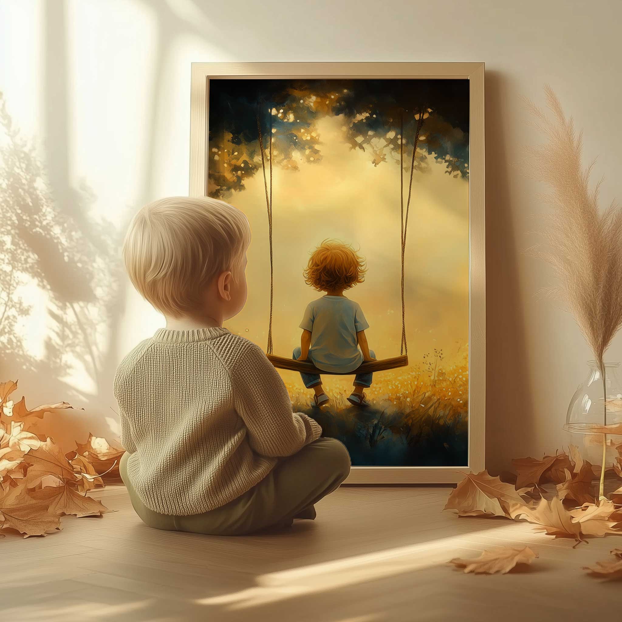 Zonnige Schommel in een Bloemenveld