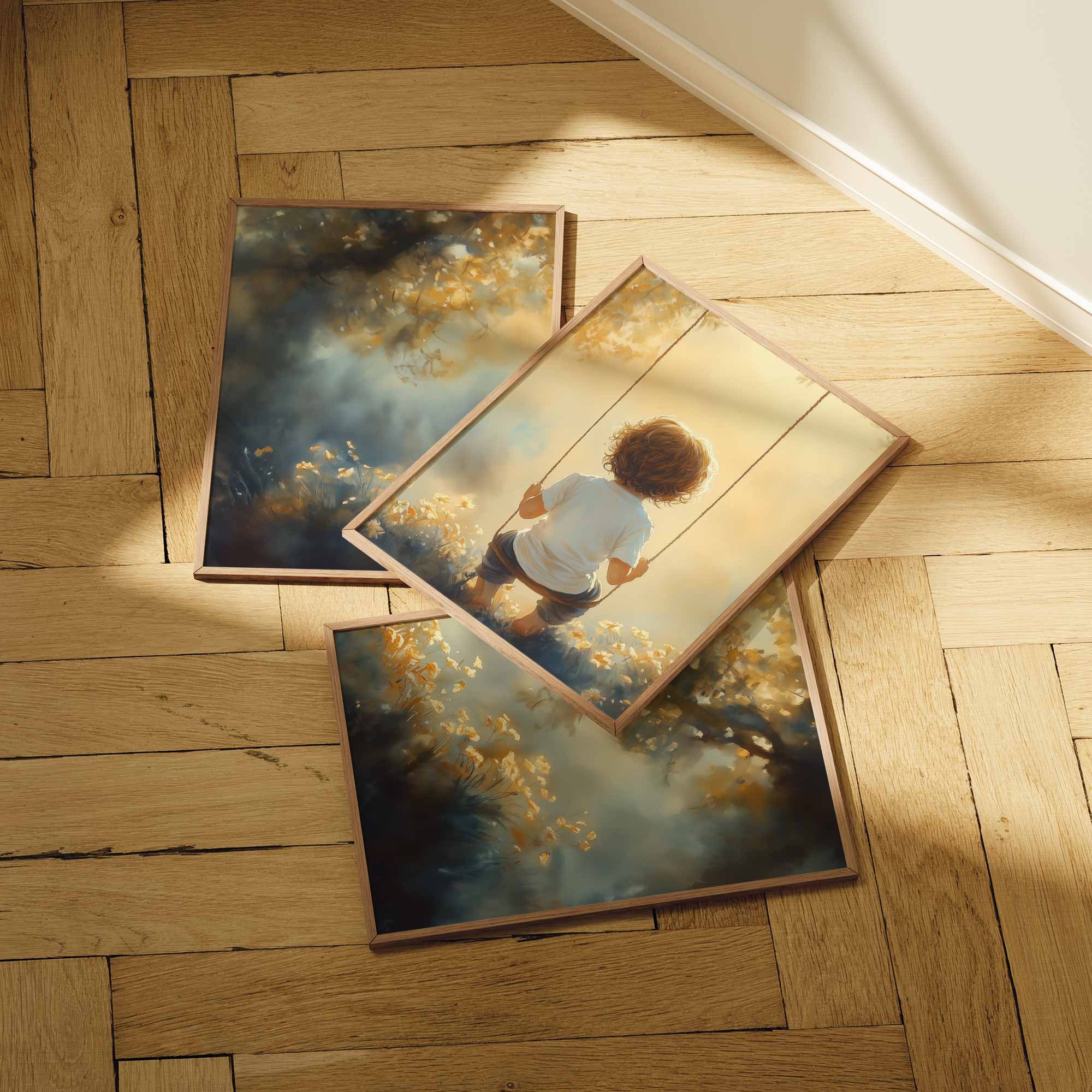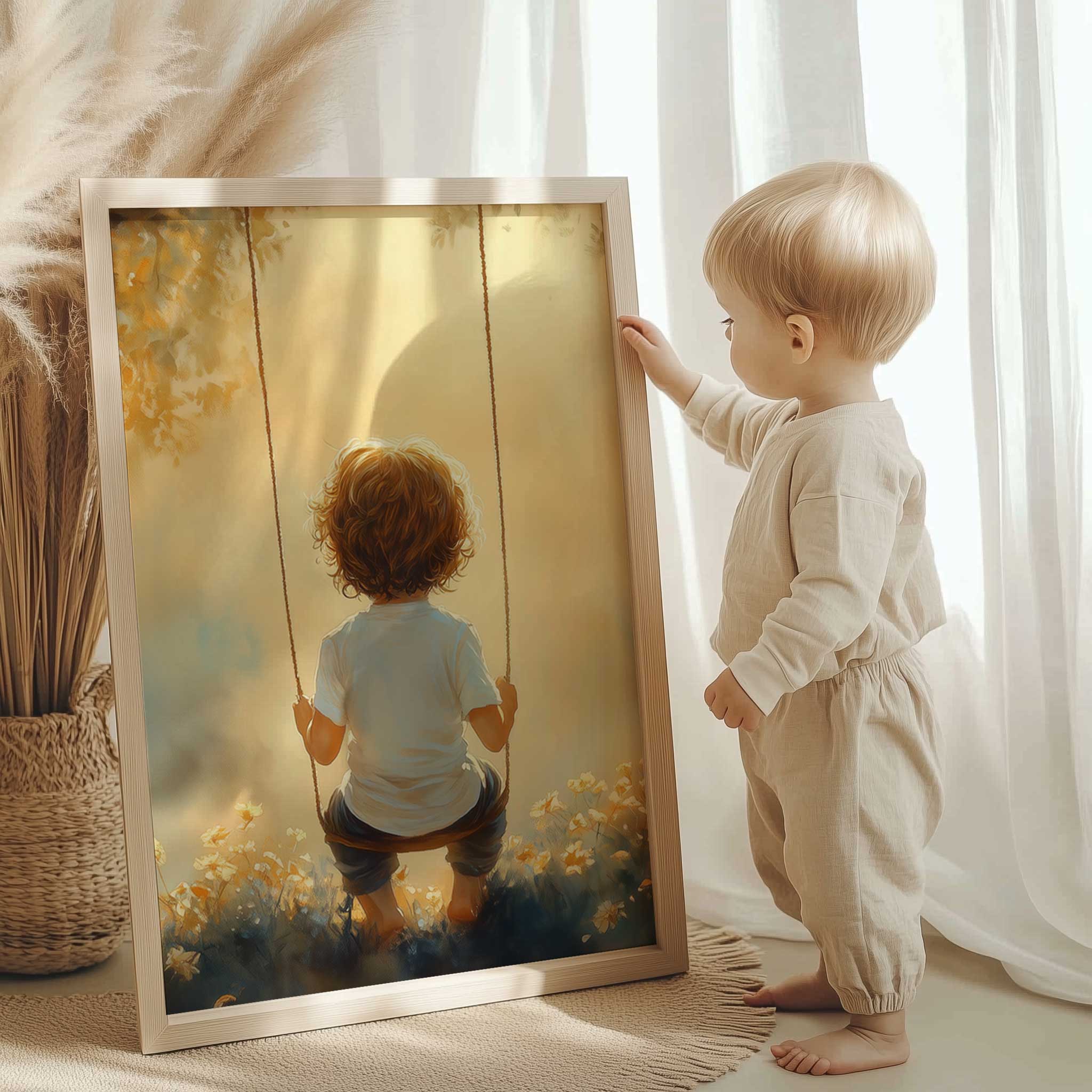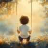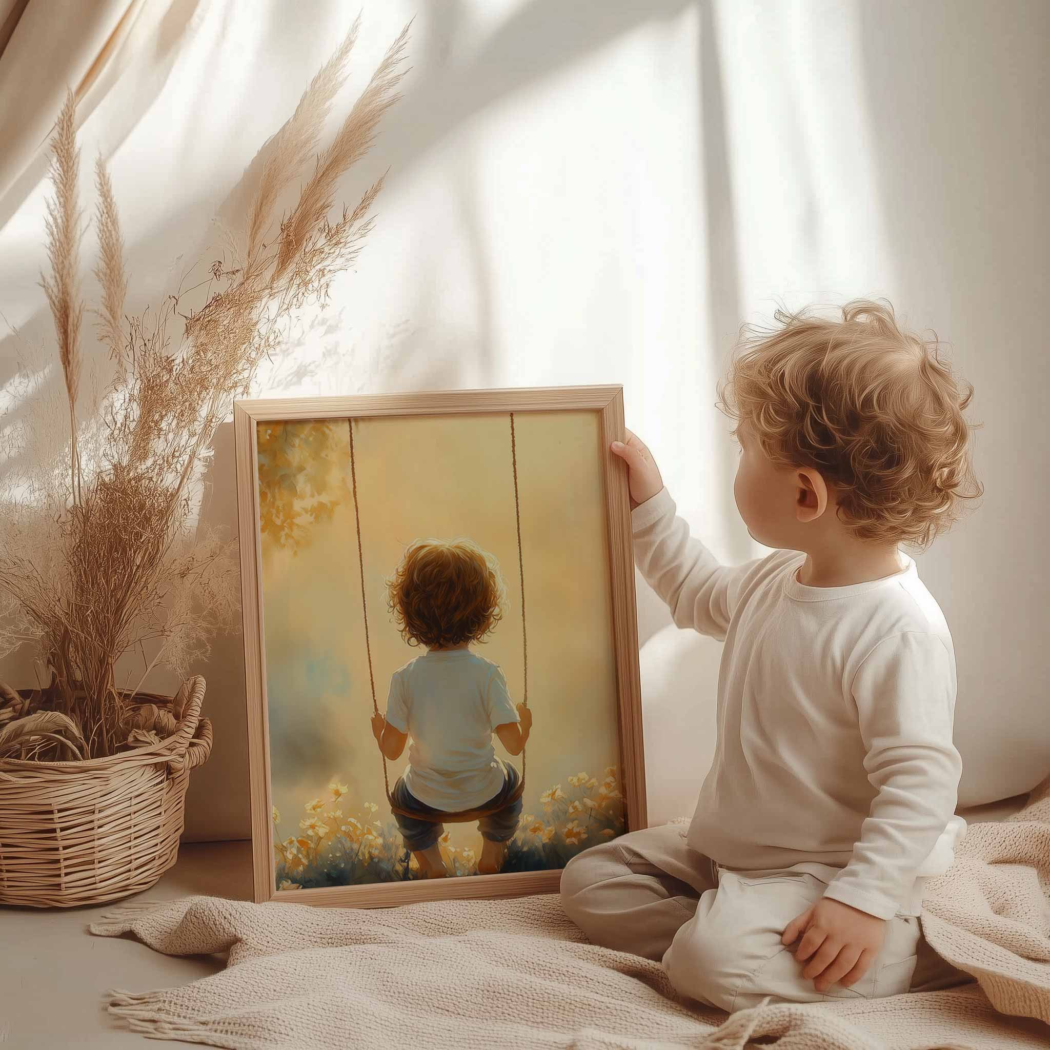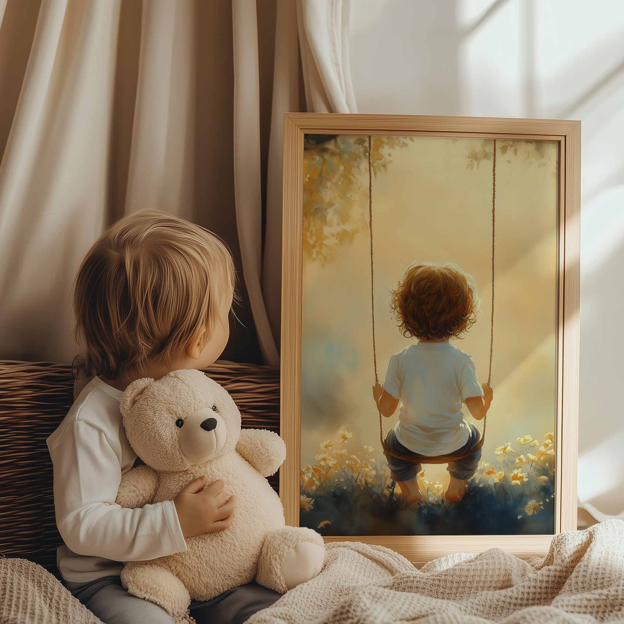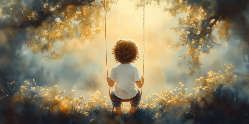 Zonnige schommel in een bloemenveld