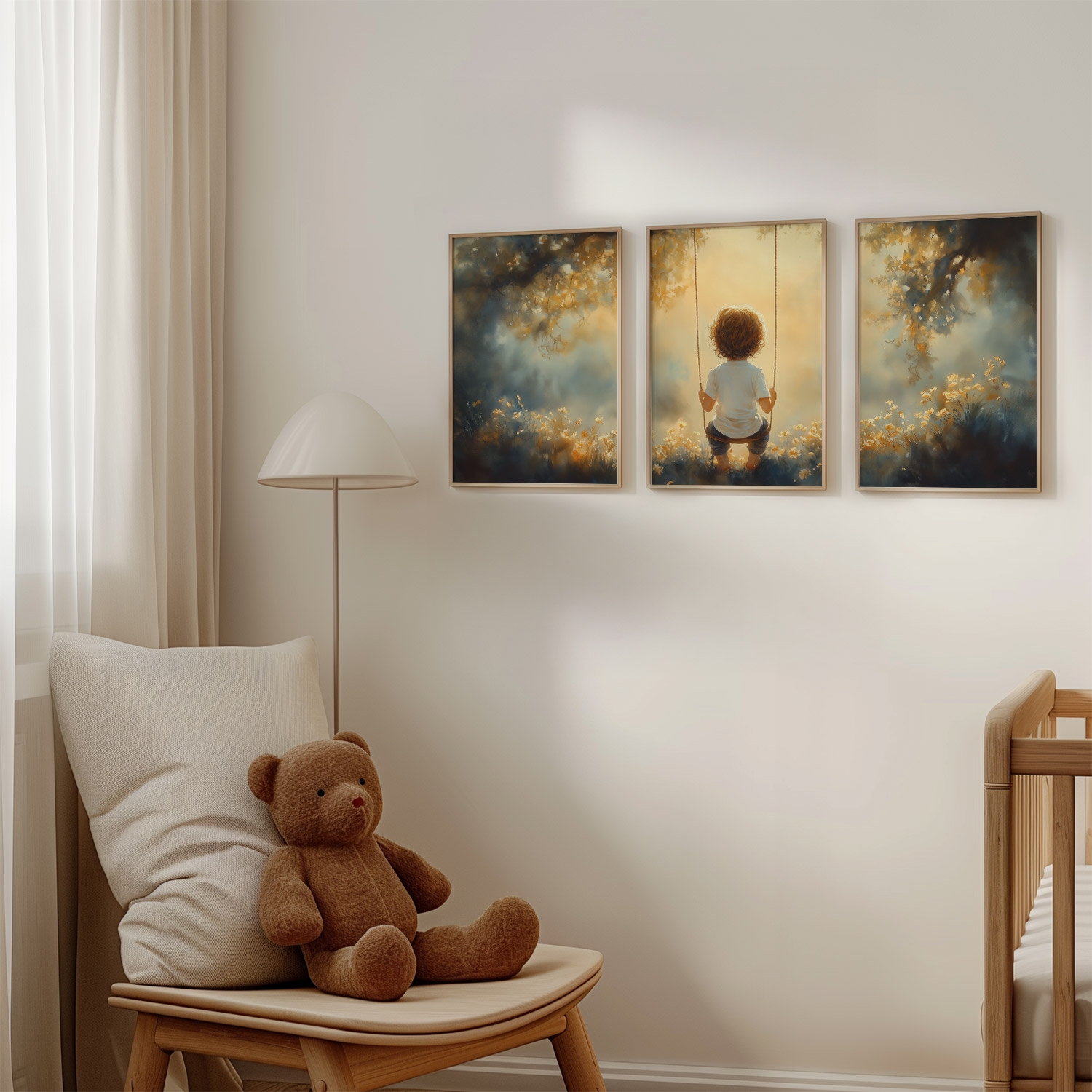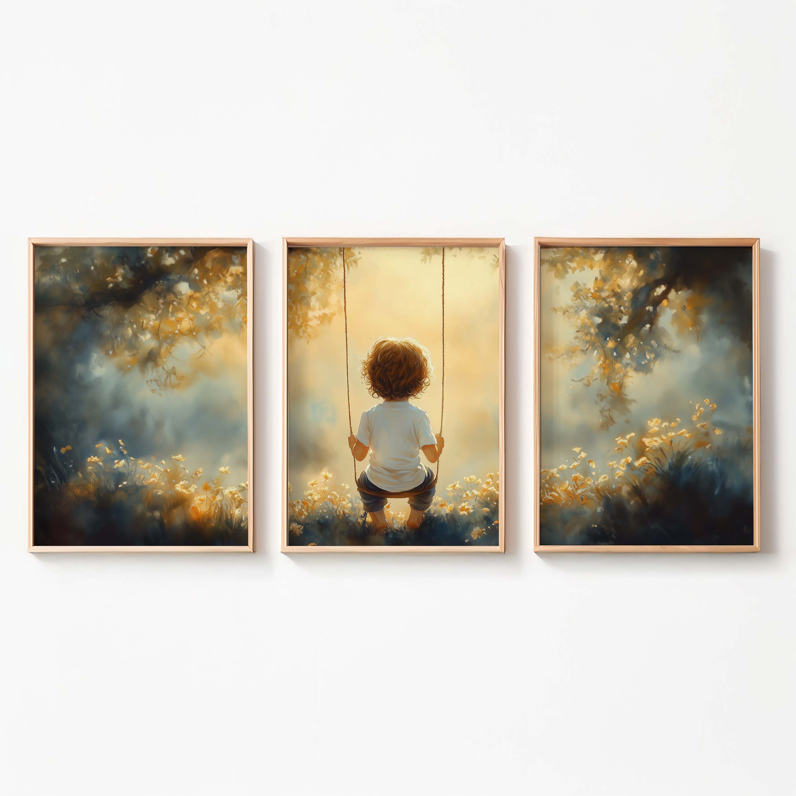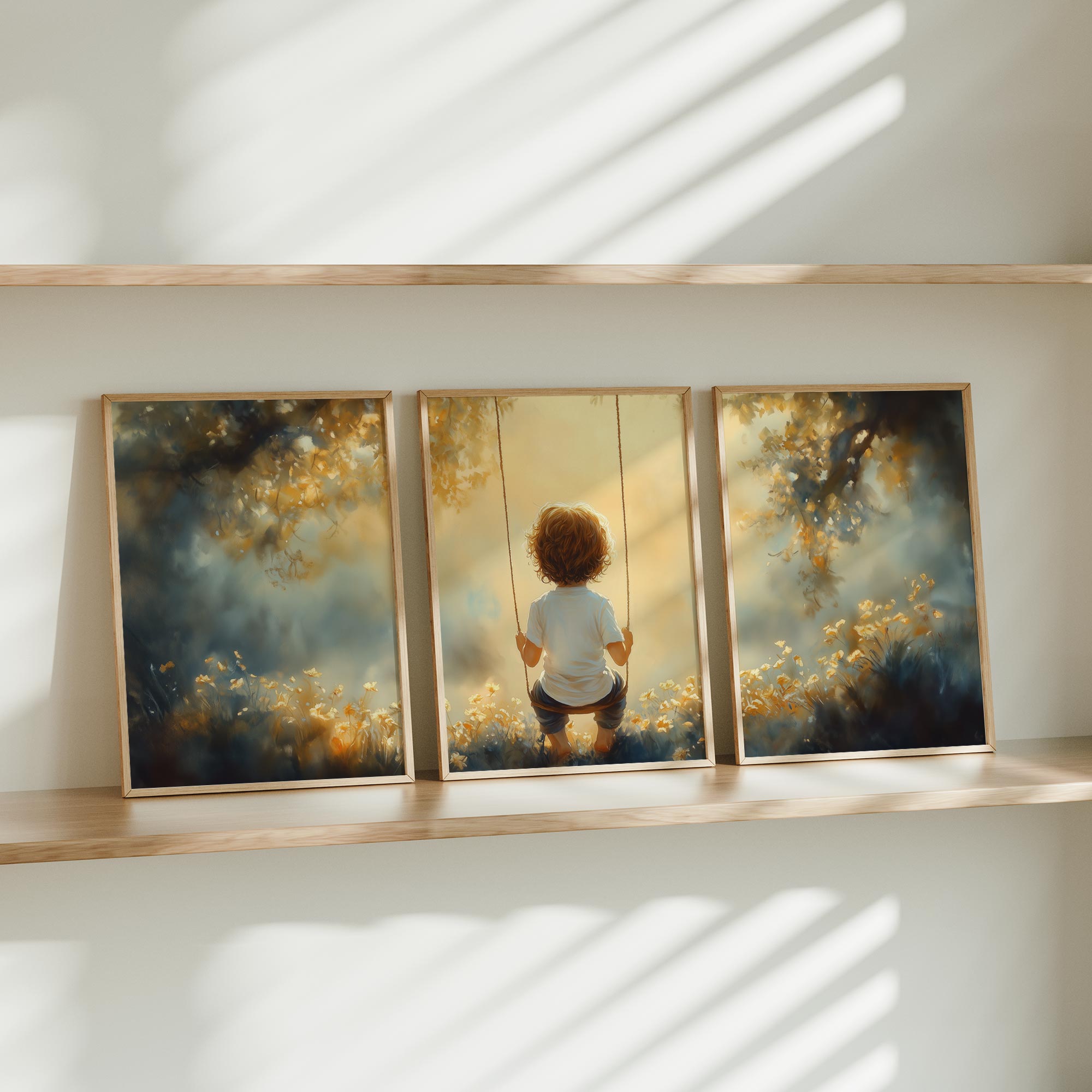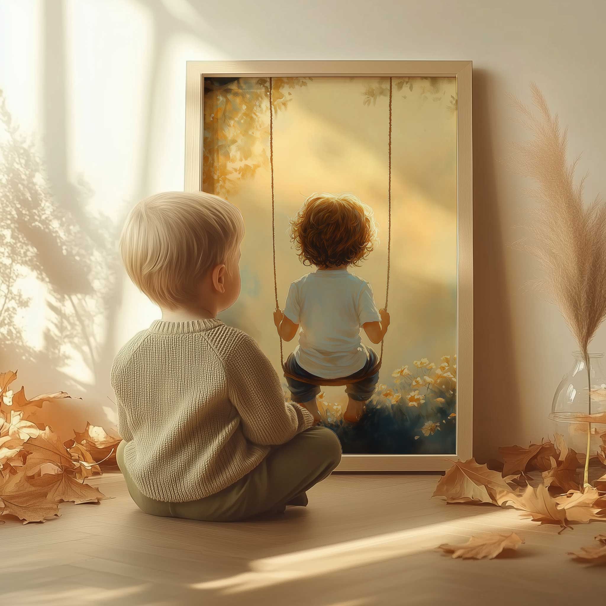 Zonnige schommel in een bloemenveld