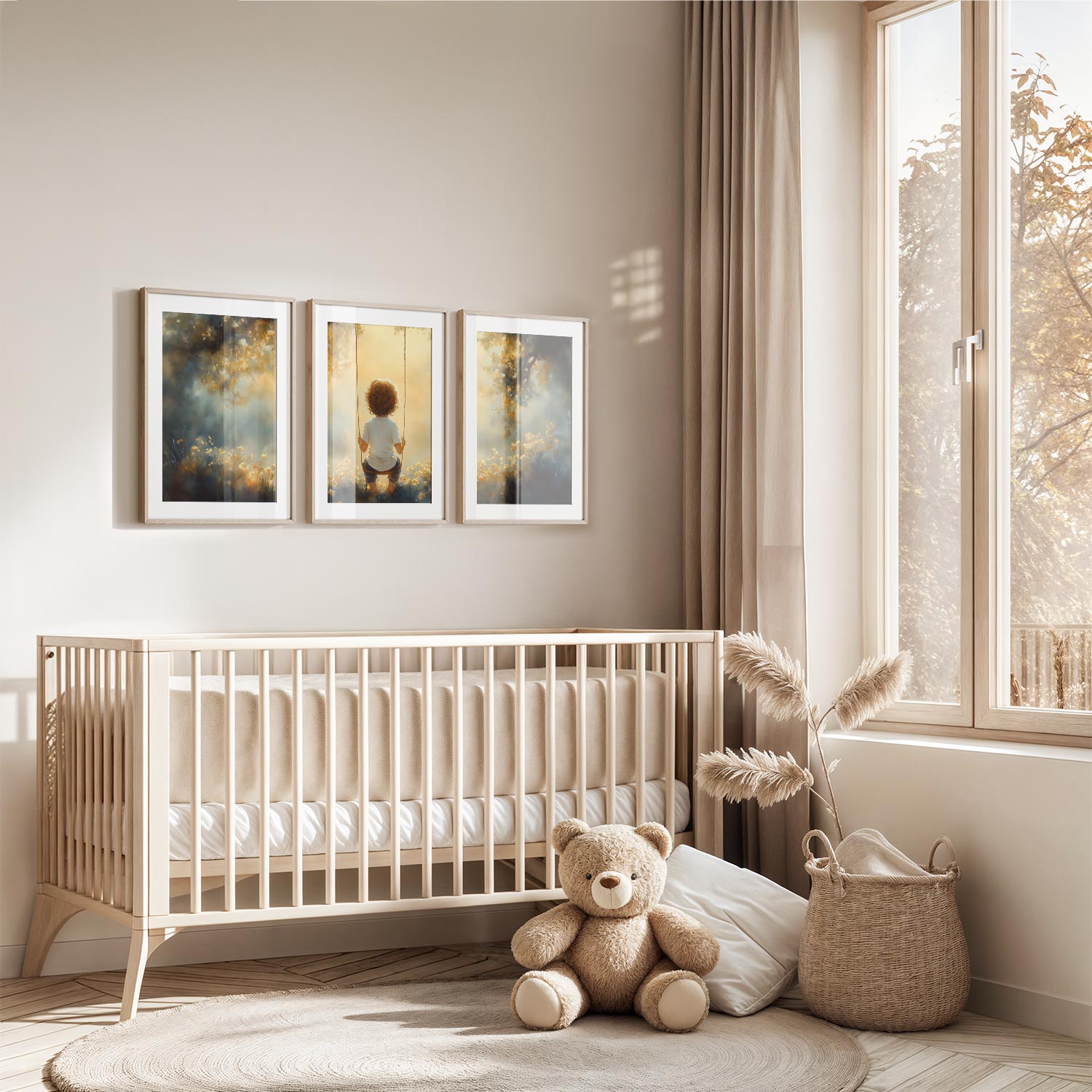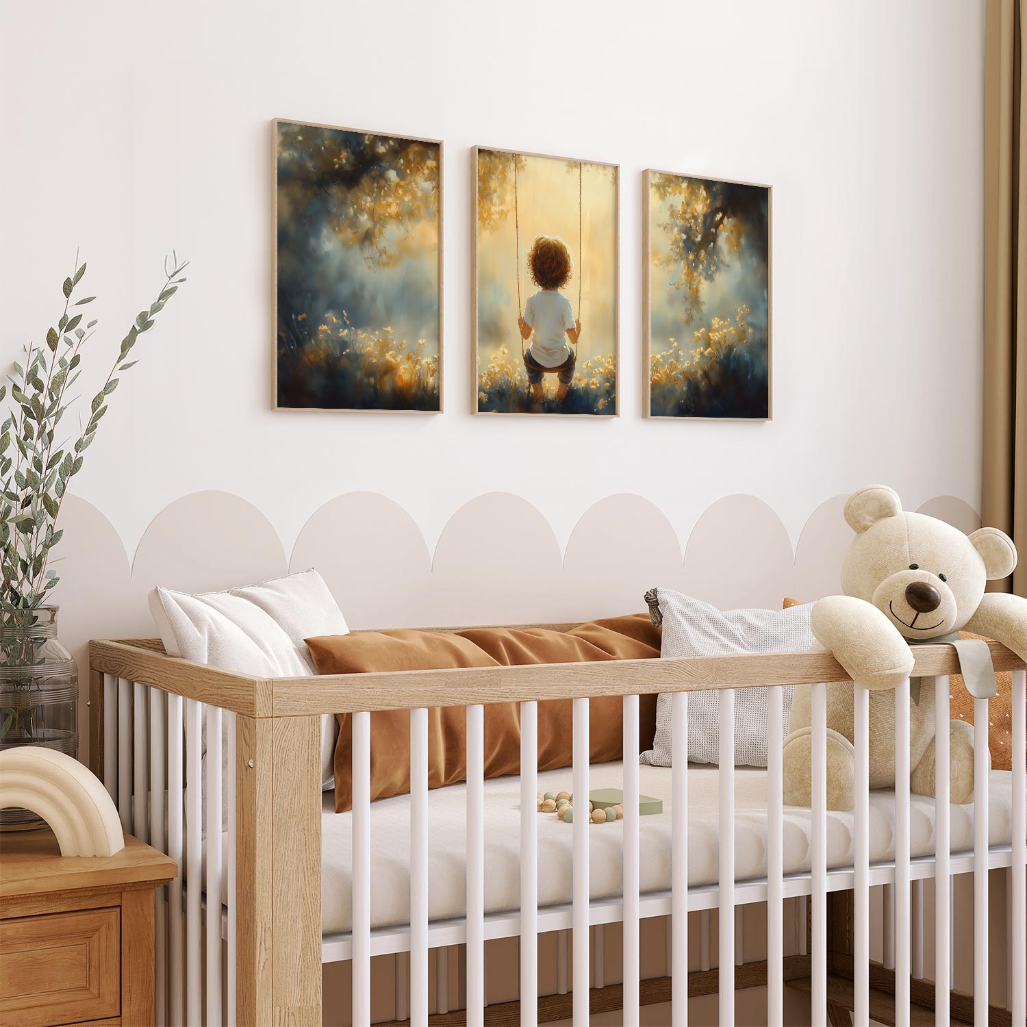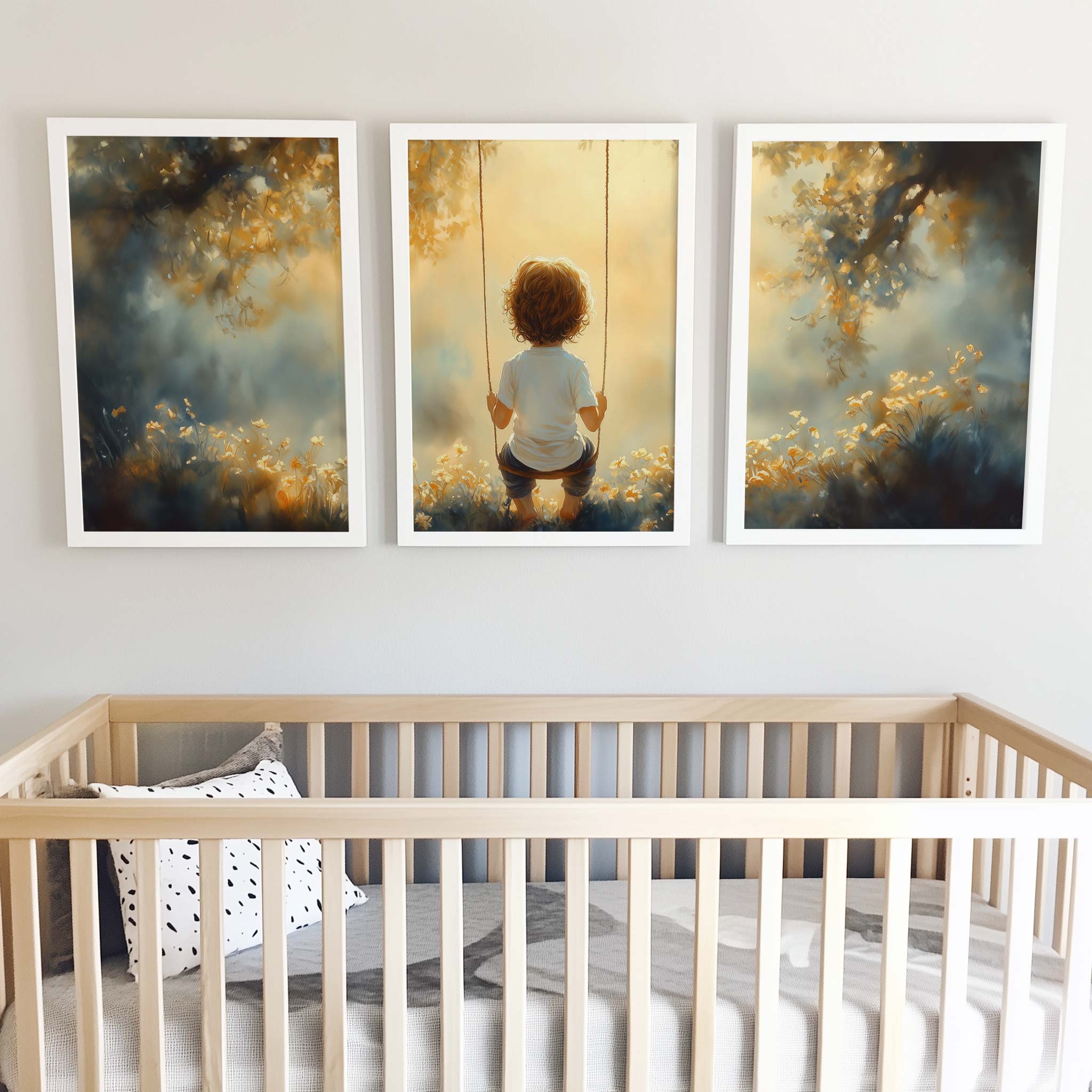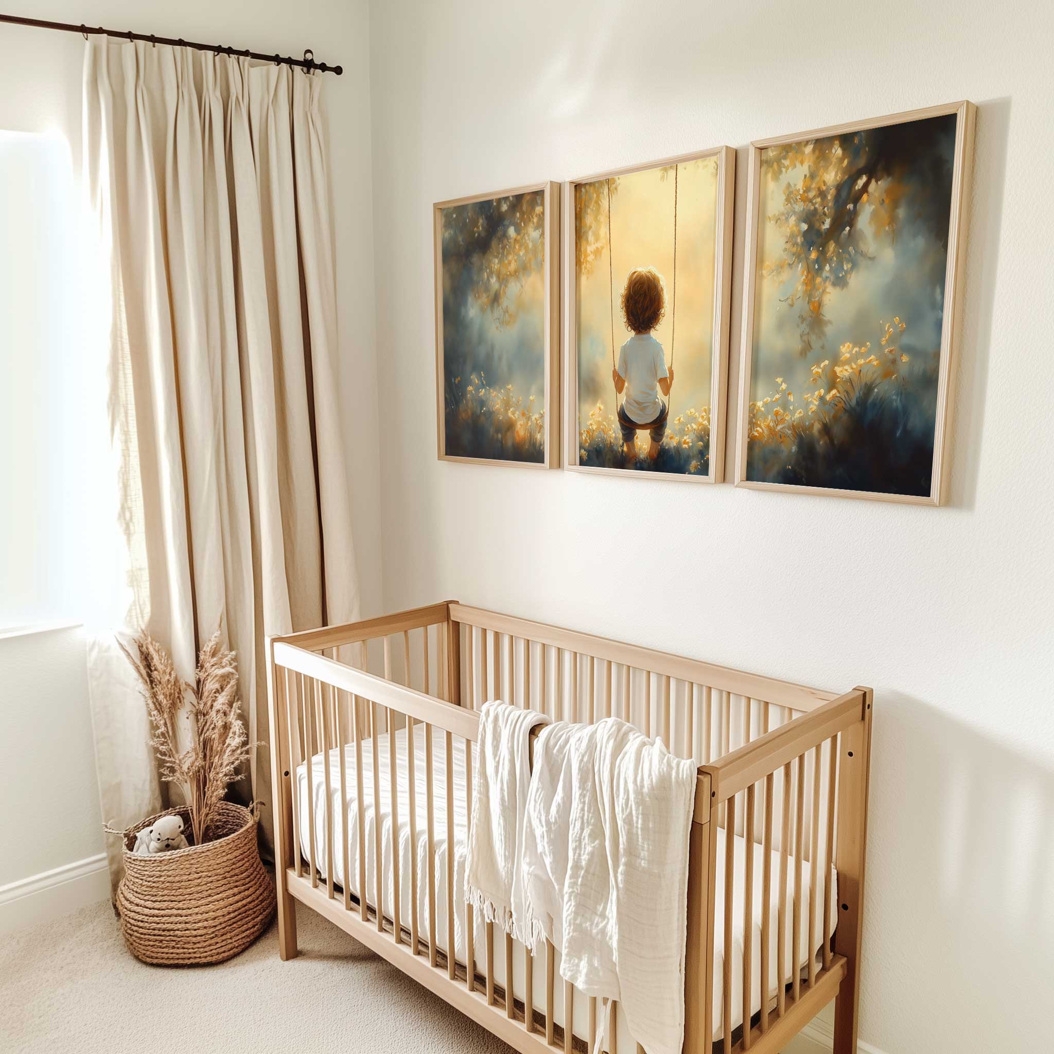 Zonnige schommel in een bloemenveld
