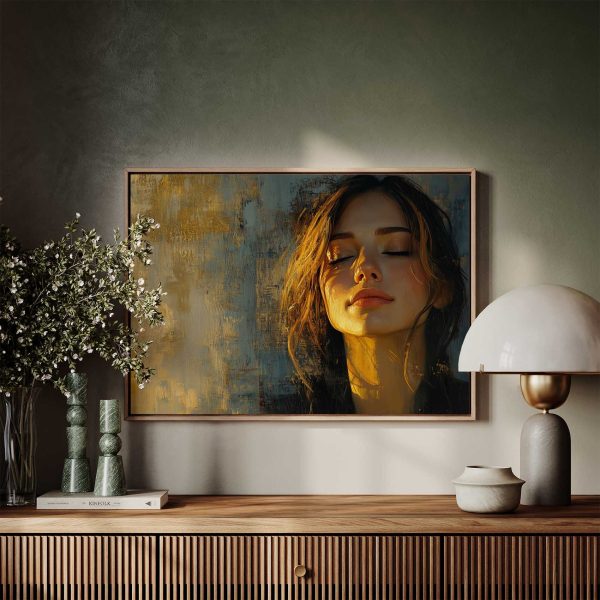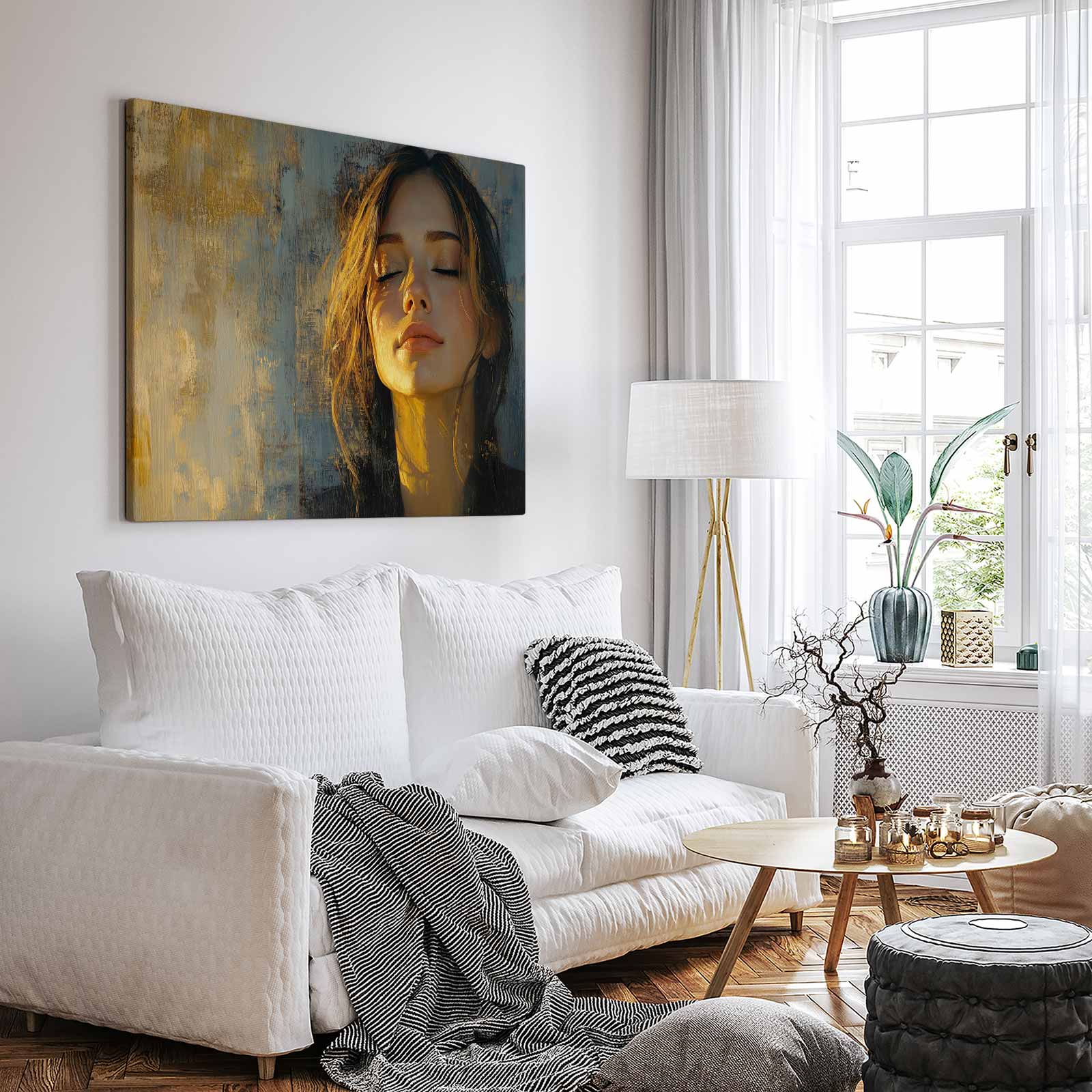 Terug naar collectie Canvas Zonnige vrouw in rust