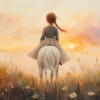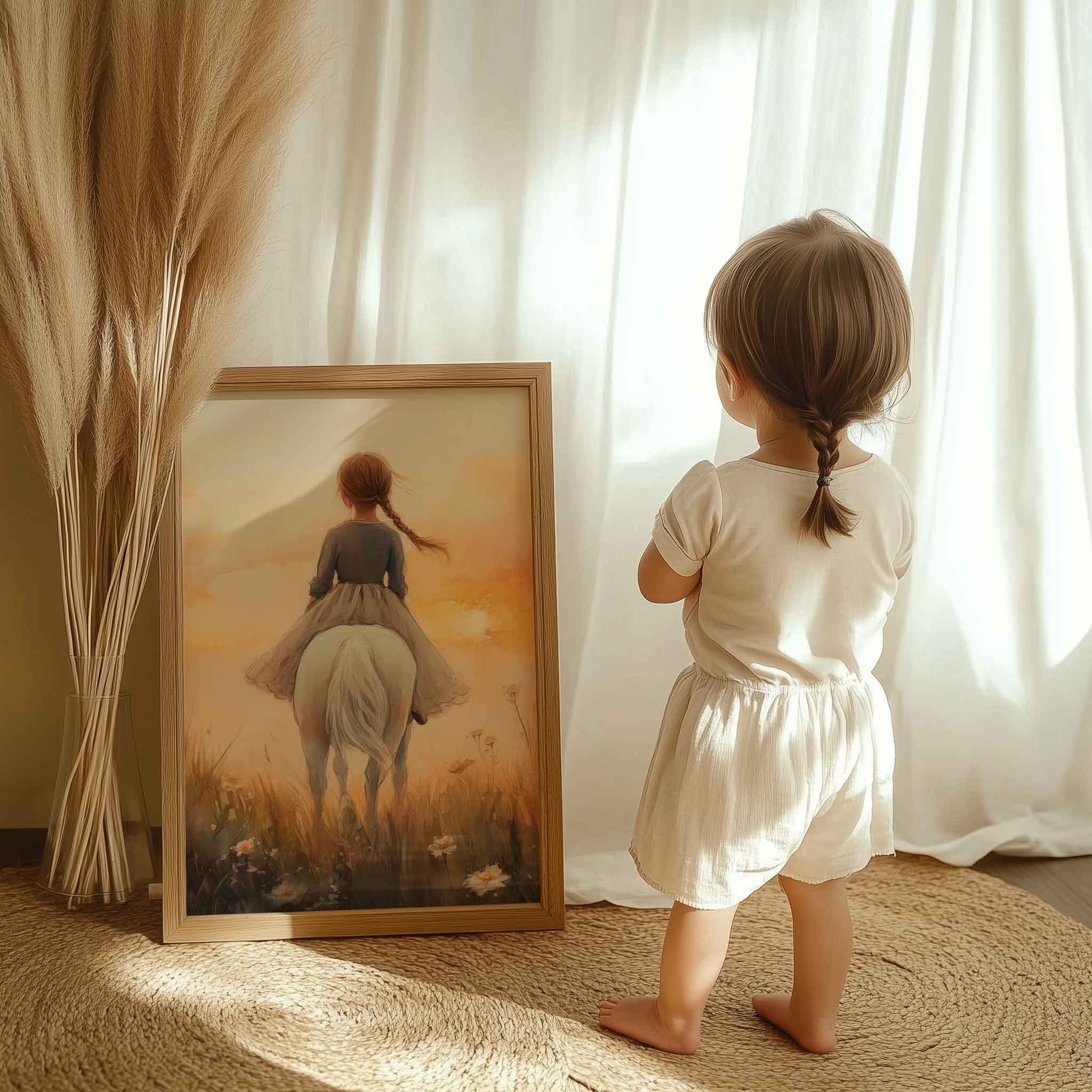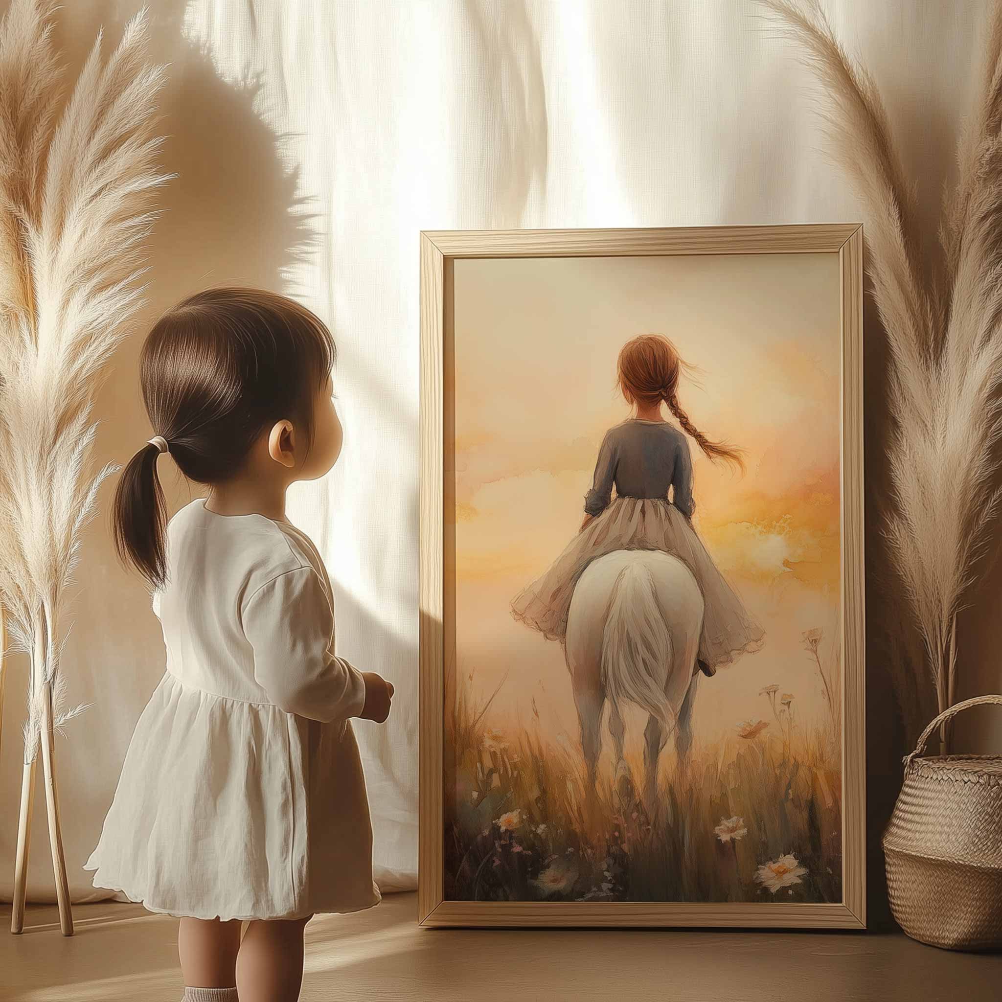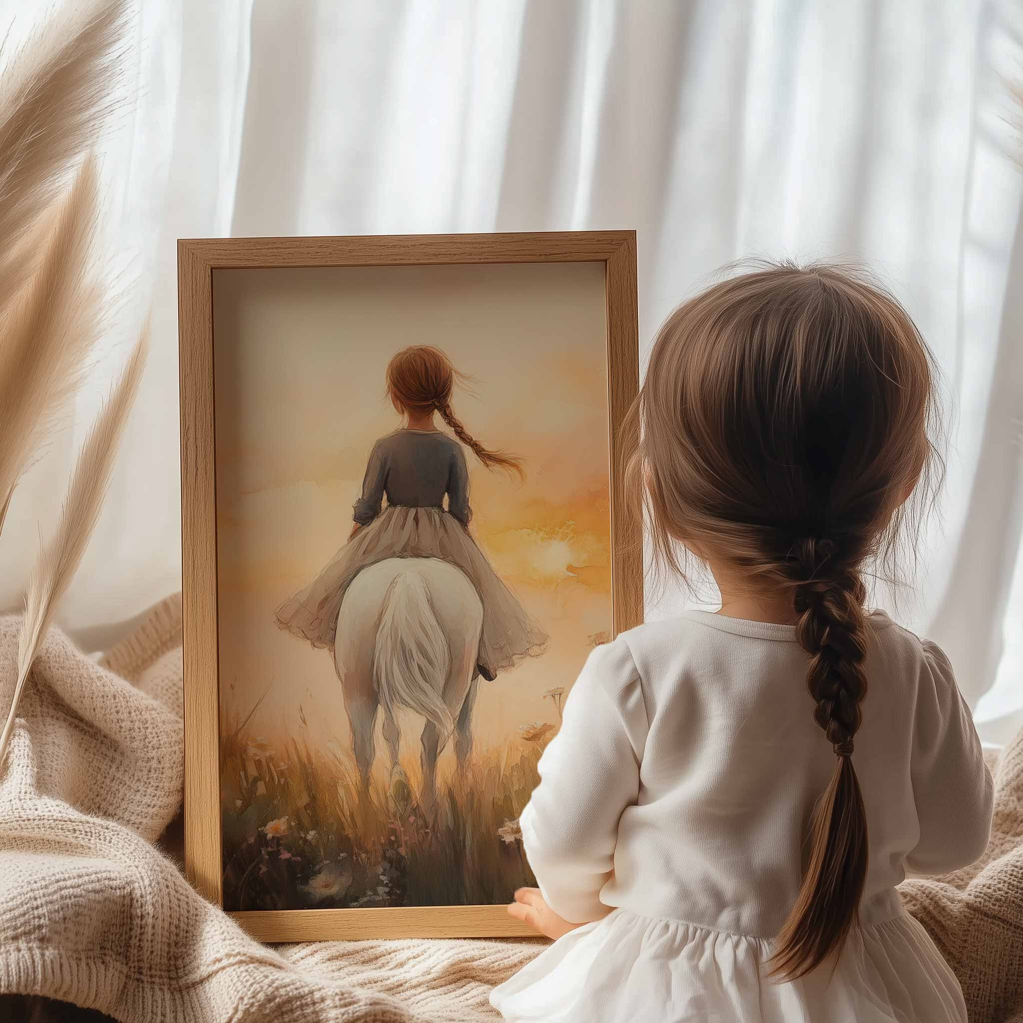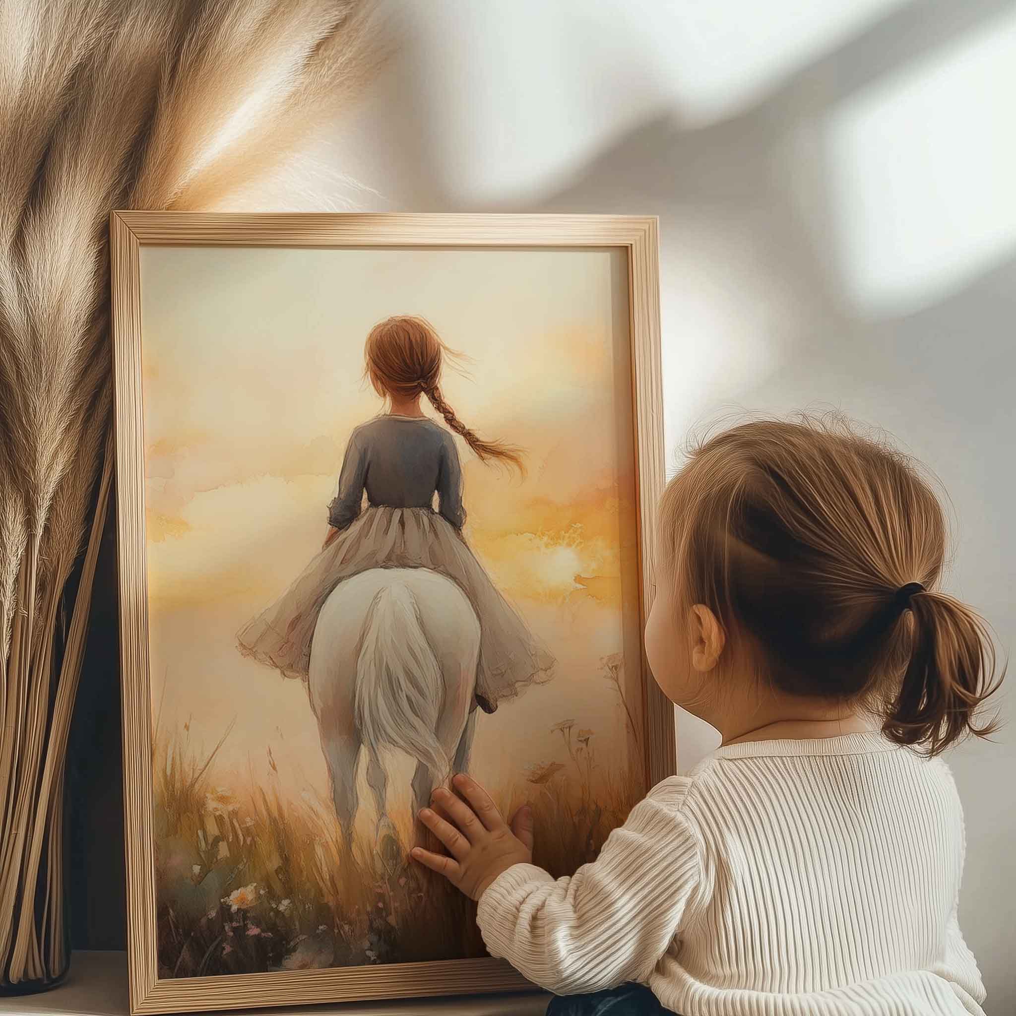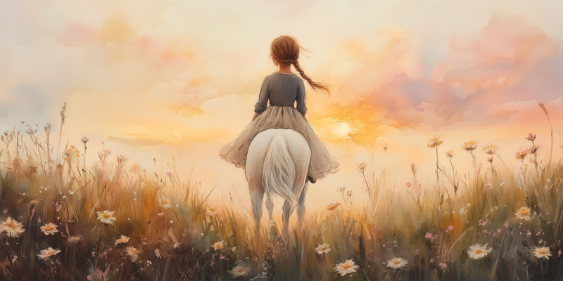 Zonnige Zomerrit met Meisje en Witte Paard