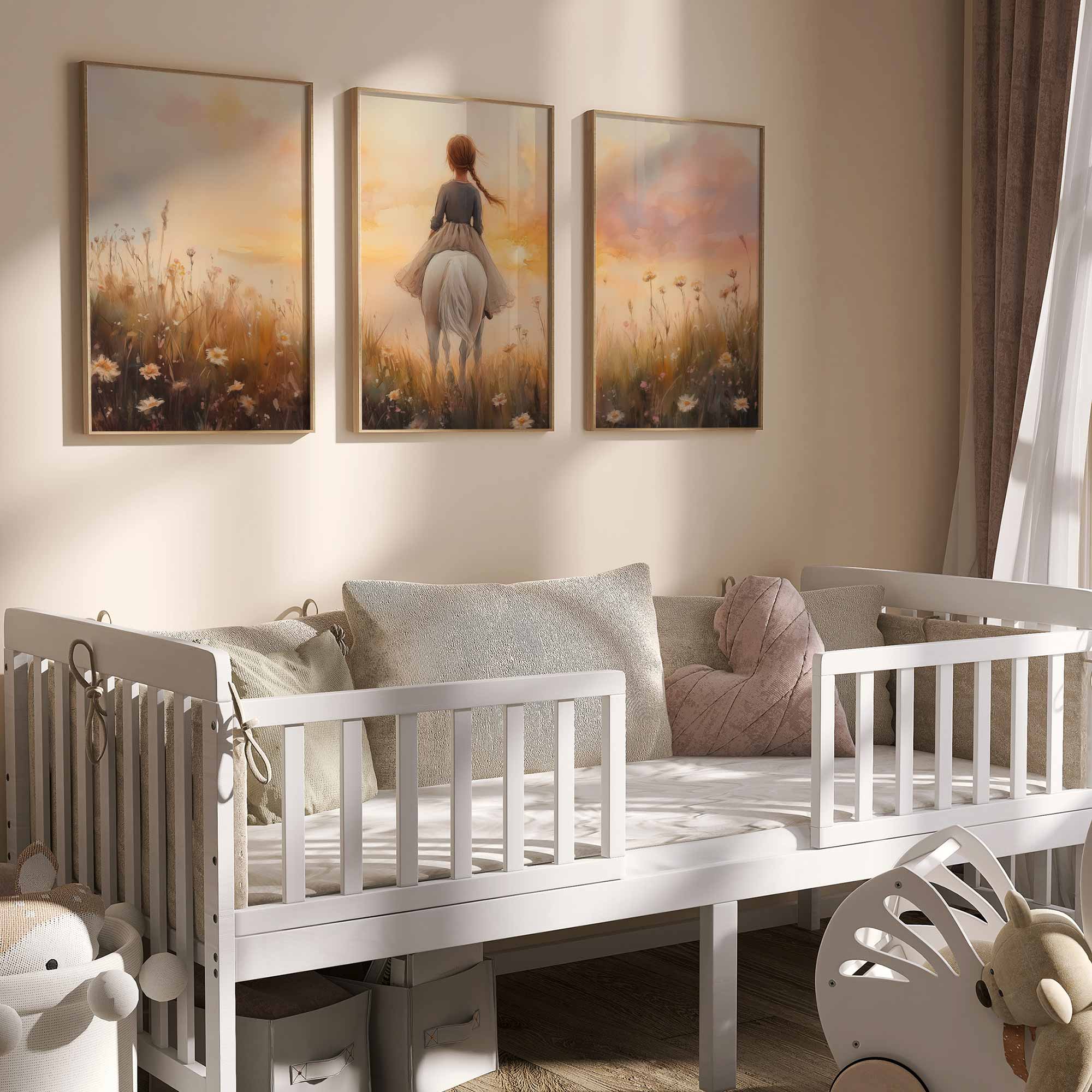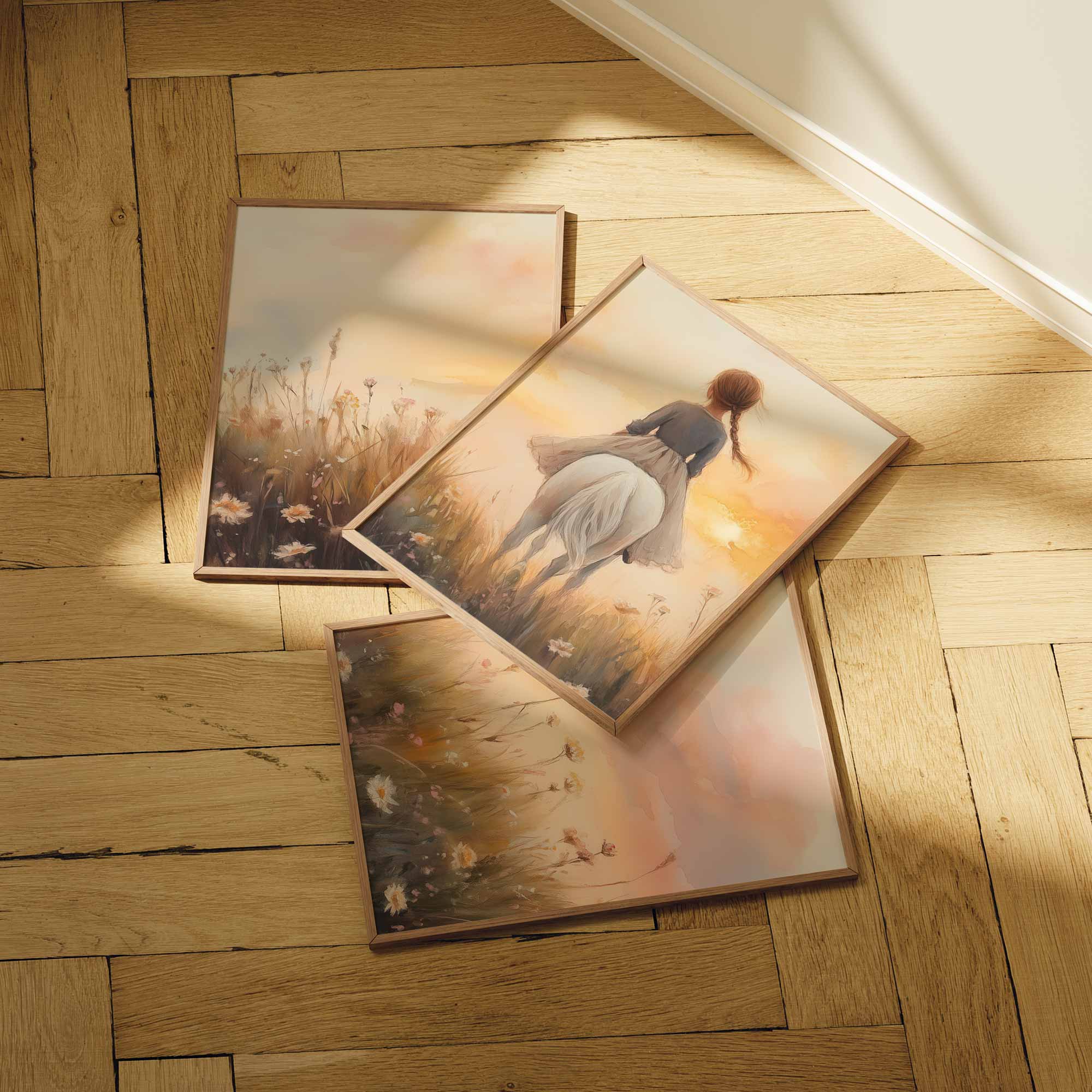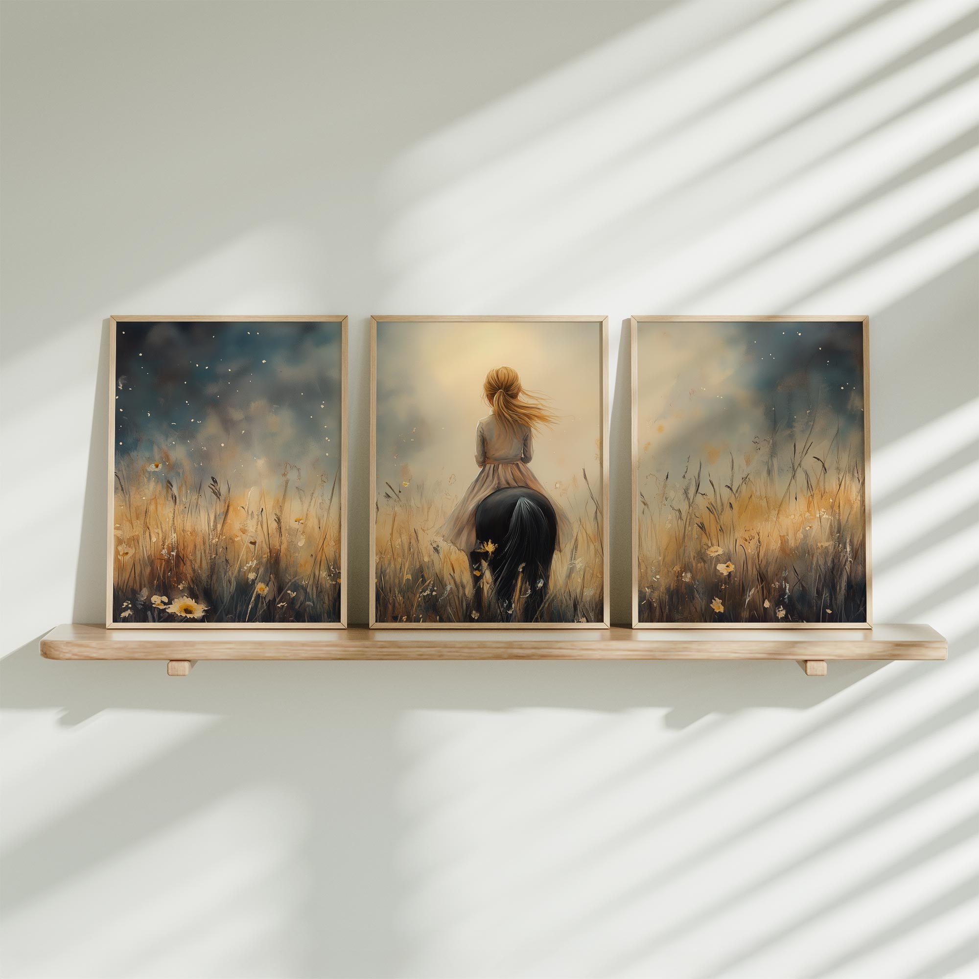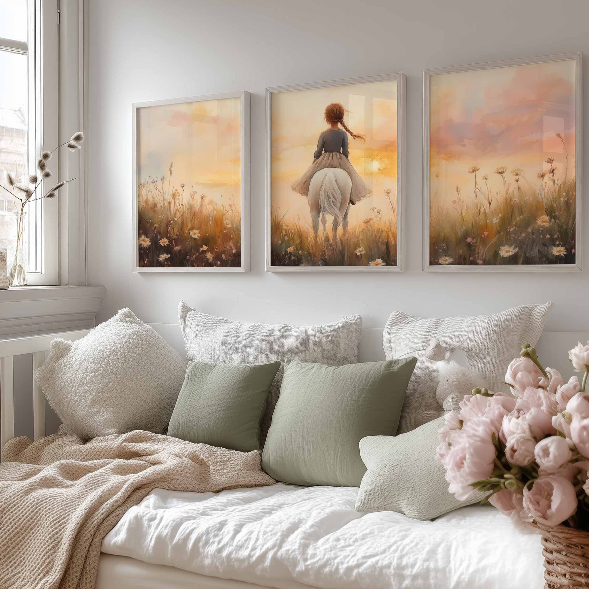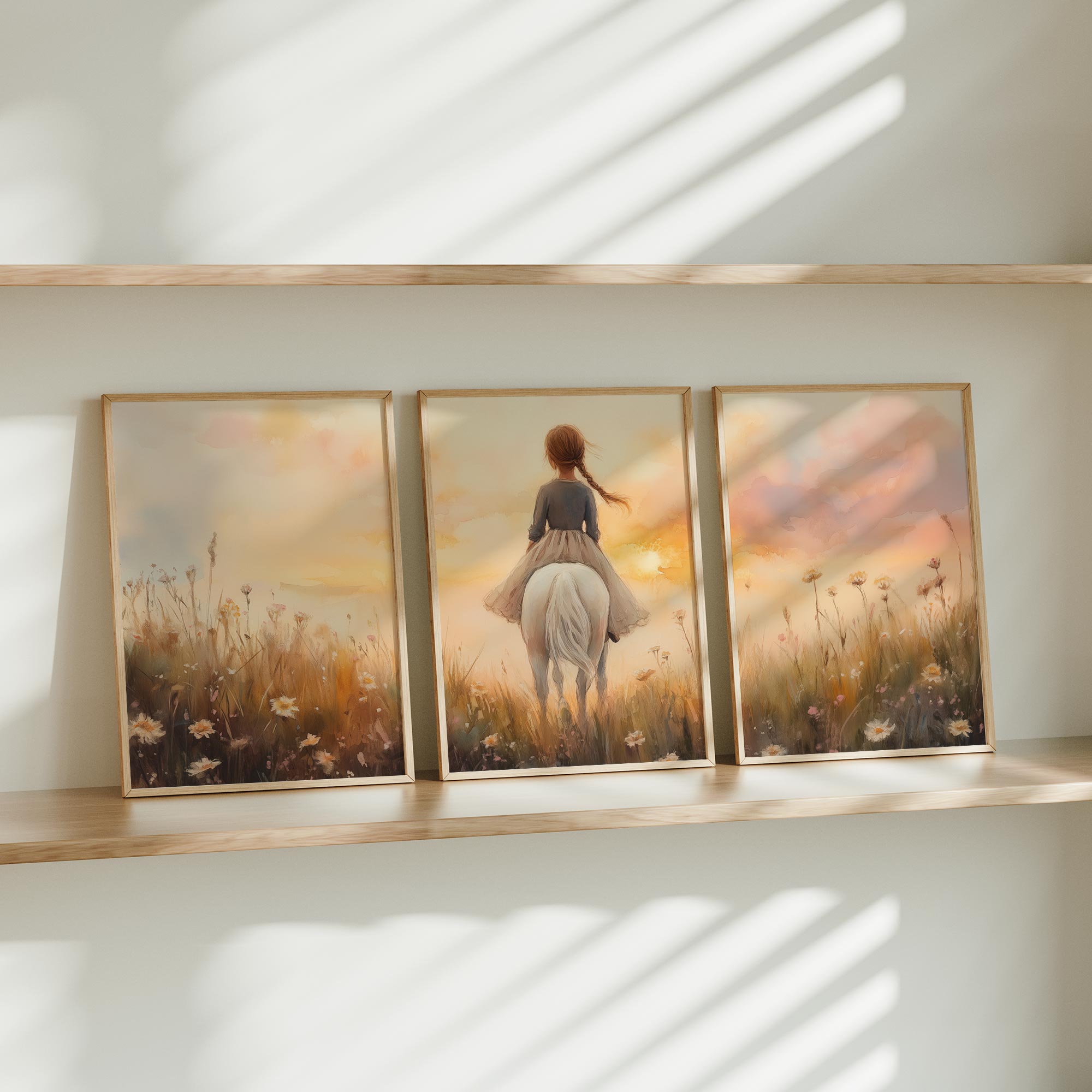 Zonnige Zomerrit met Meisje en Witte Paard